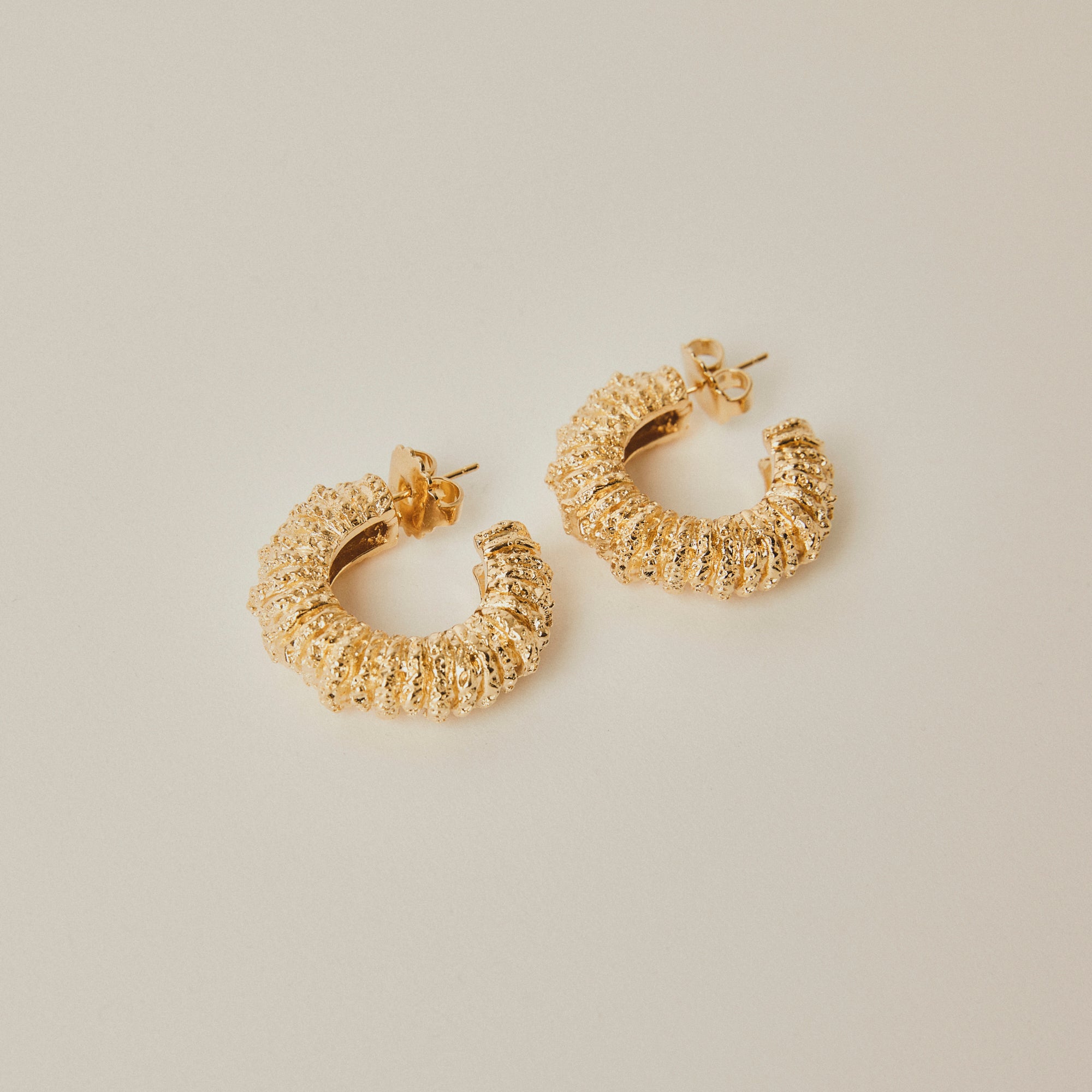 Elevate your style with these handmade texture midi hoops, crafted in 18k gold plated pewter metal. Whether it's a day at the office or a night on the town, these hoops effortlessly transition from day to night, adding a touch of understated luxury to any ensemble.