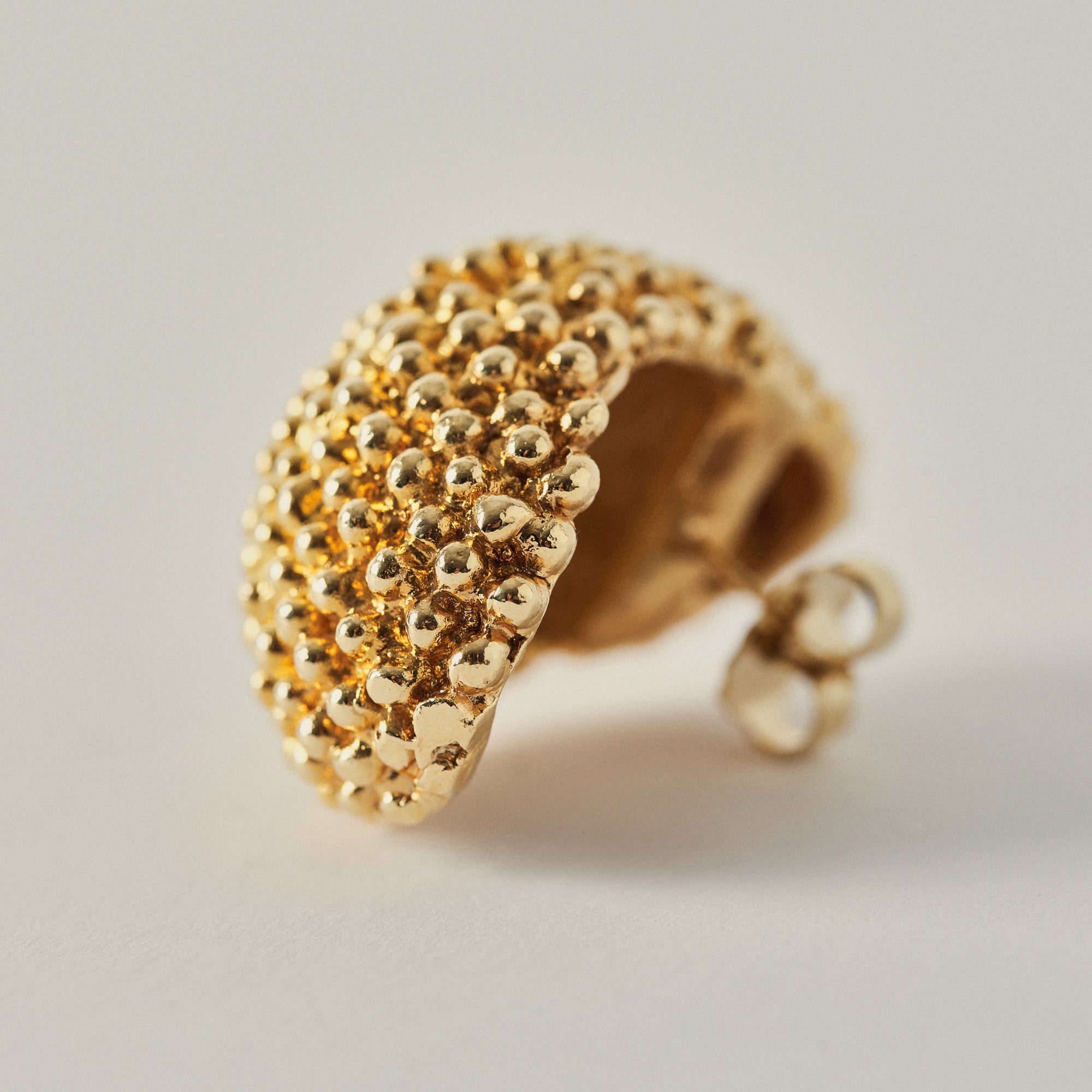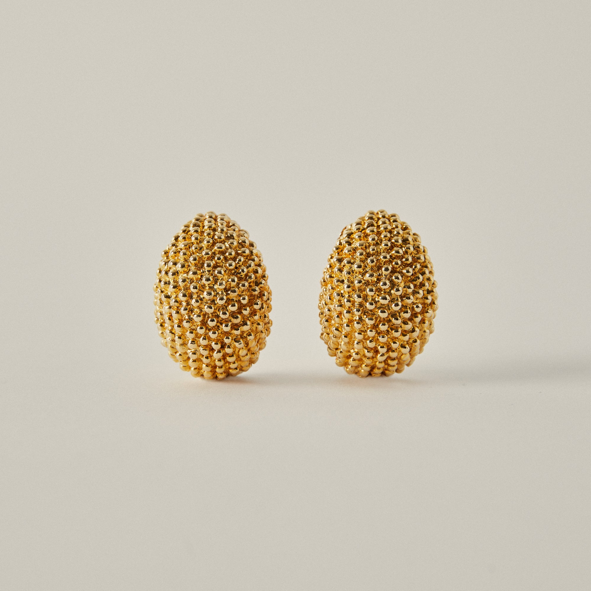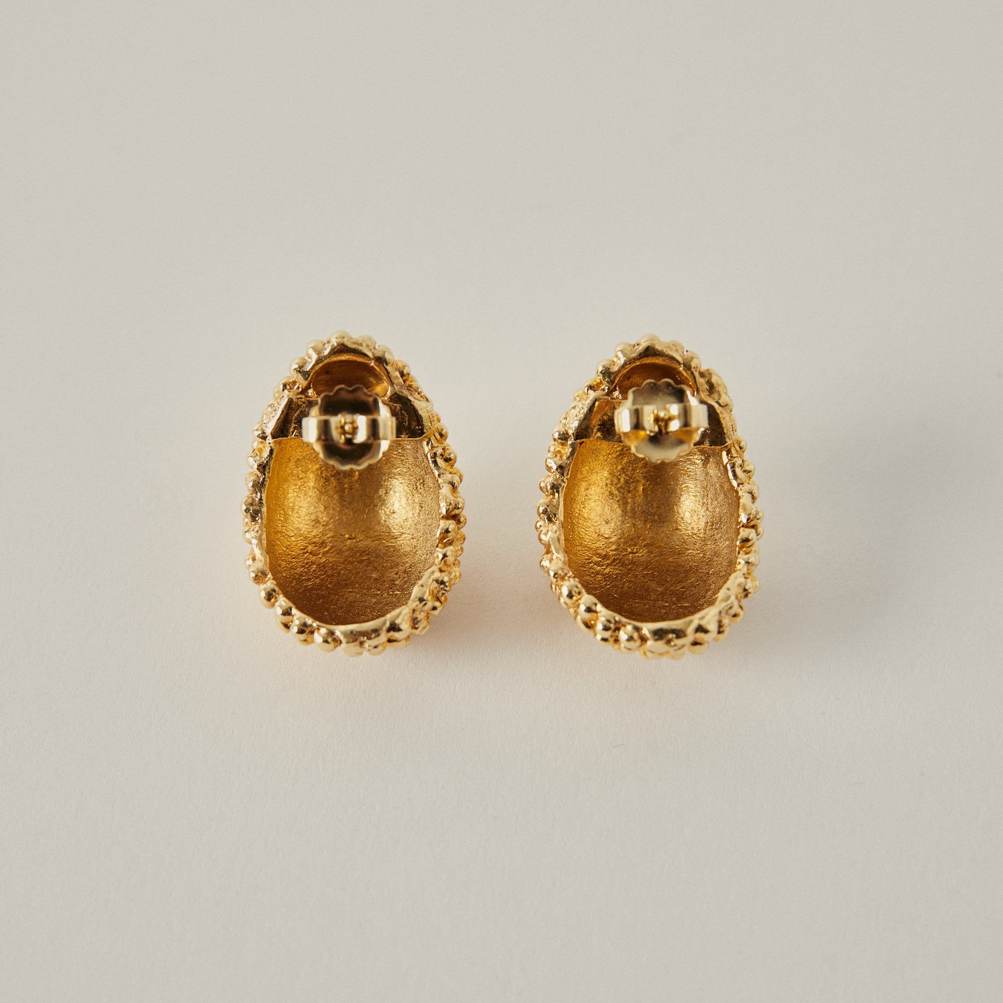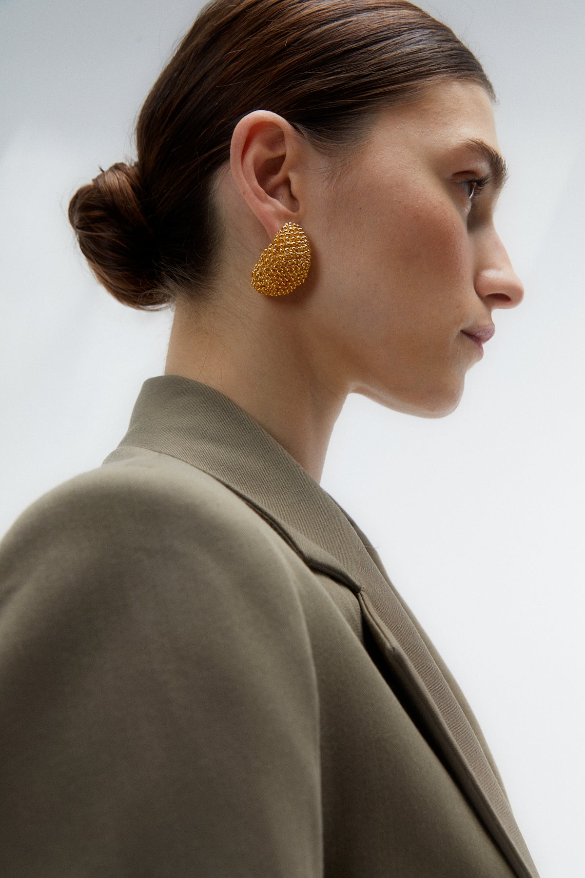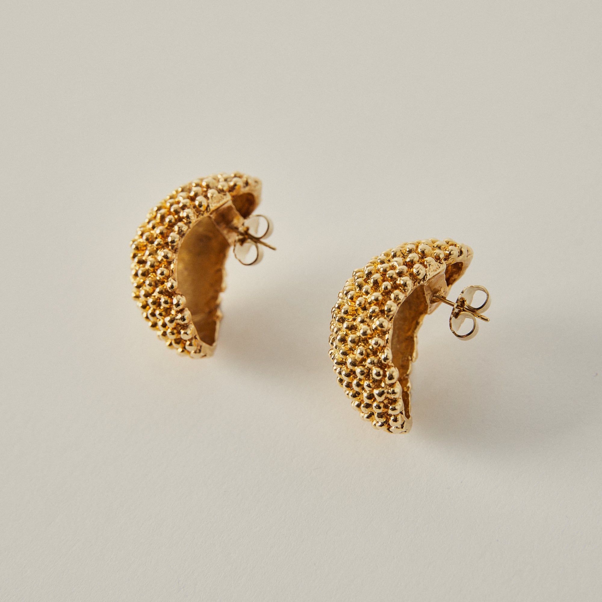 Enhance your style with the Dafne earrings, a handcrafted design featuring textured pewter metal plated in 18kt gold. Their organic texture and elegant shape make them a timeless accessory, perfect for any occasion. Designed to add character and distinction to your look with a subtle touch of luxury.