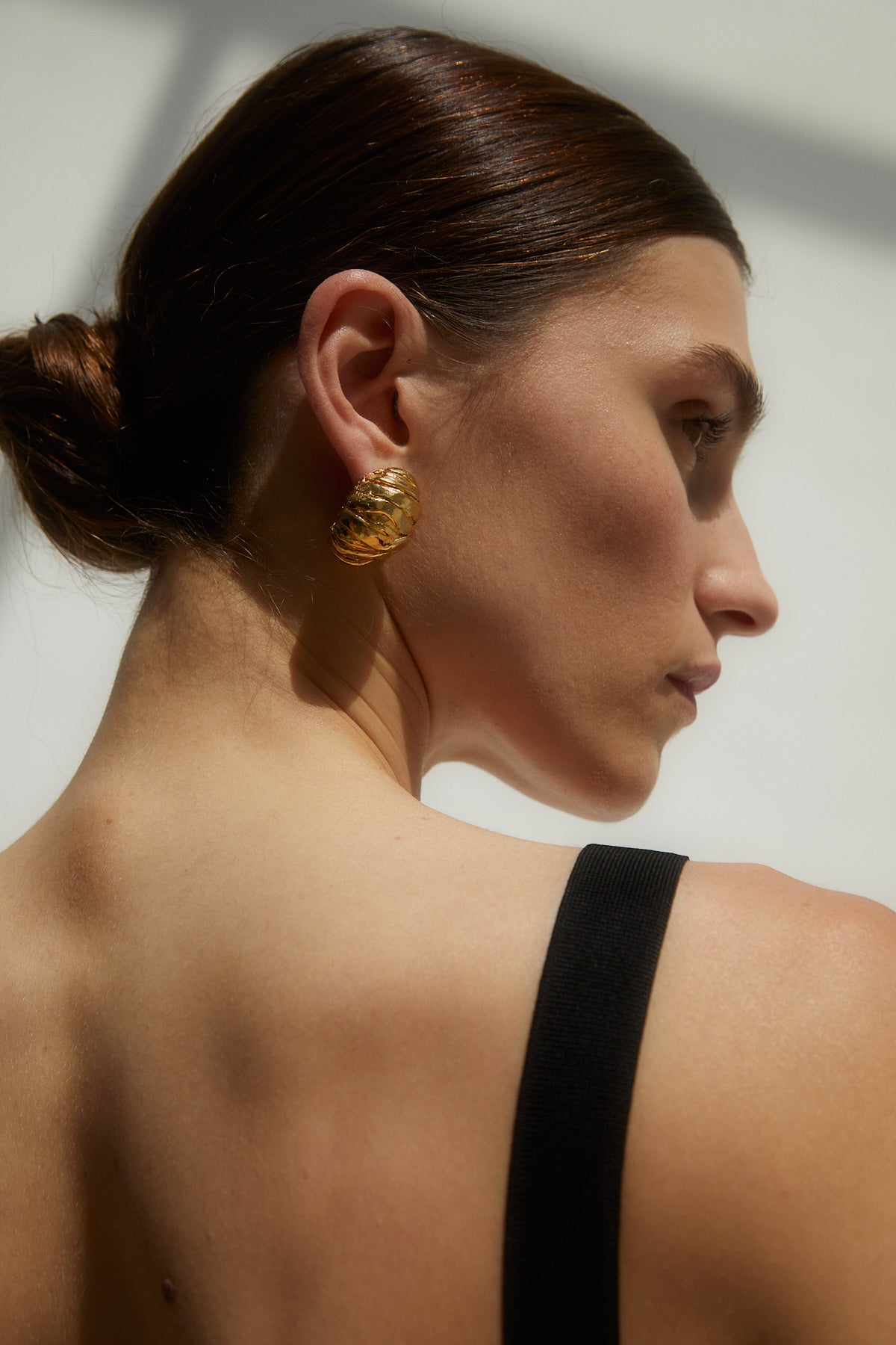 Upgrade your style with these handmade texture midi earrings, crafted in 18k gold plated pewter metal. These hoops effortlessly transition from day to night, adding a touch of understated luxury to any ensemble.