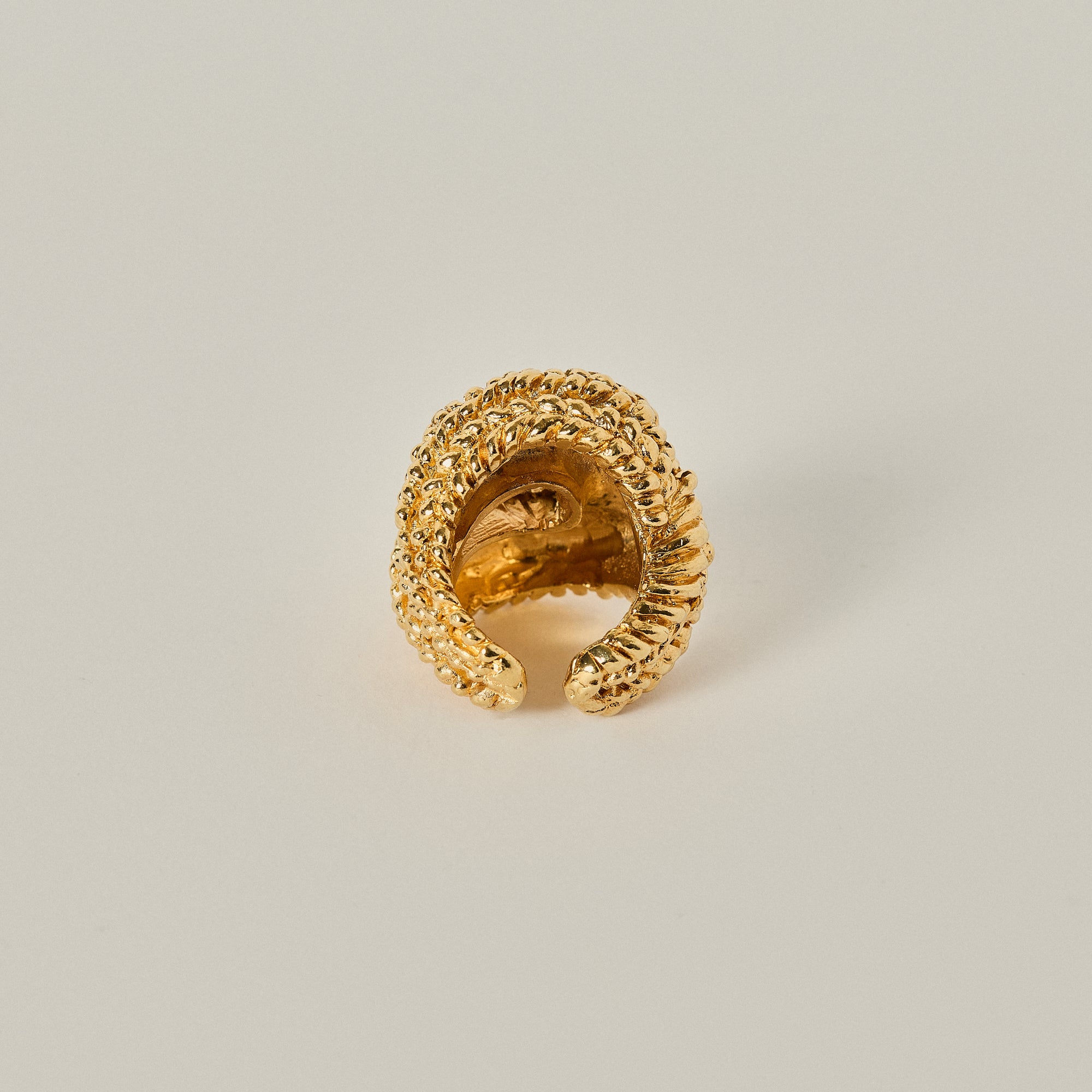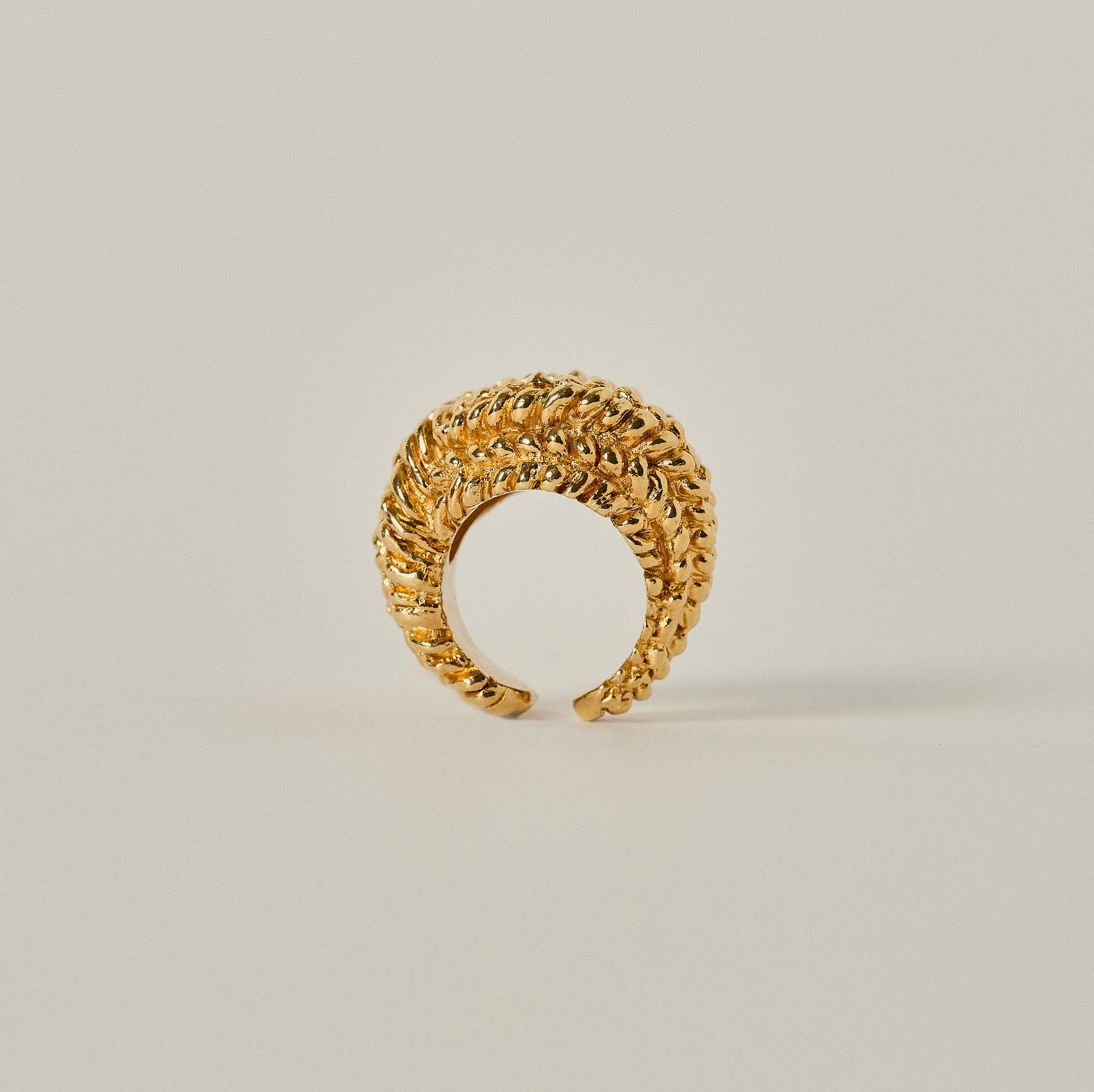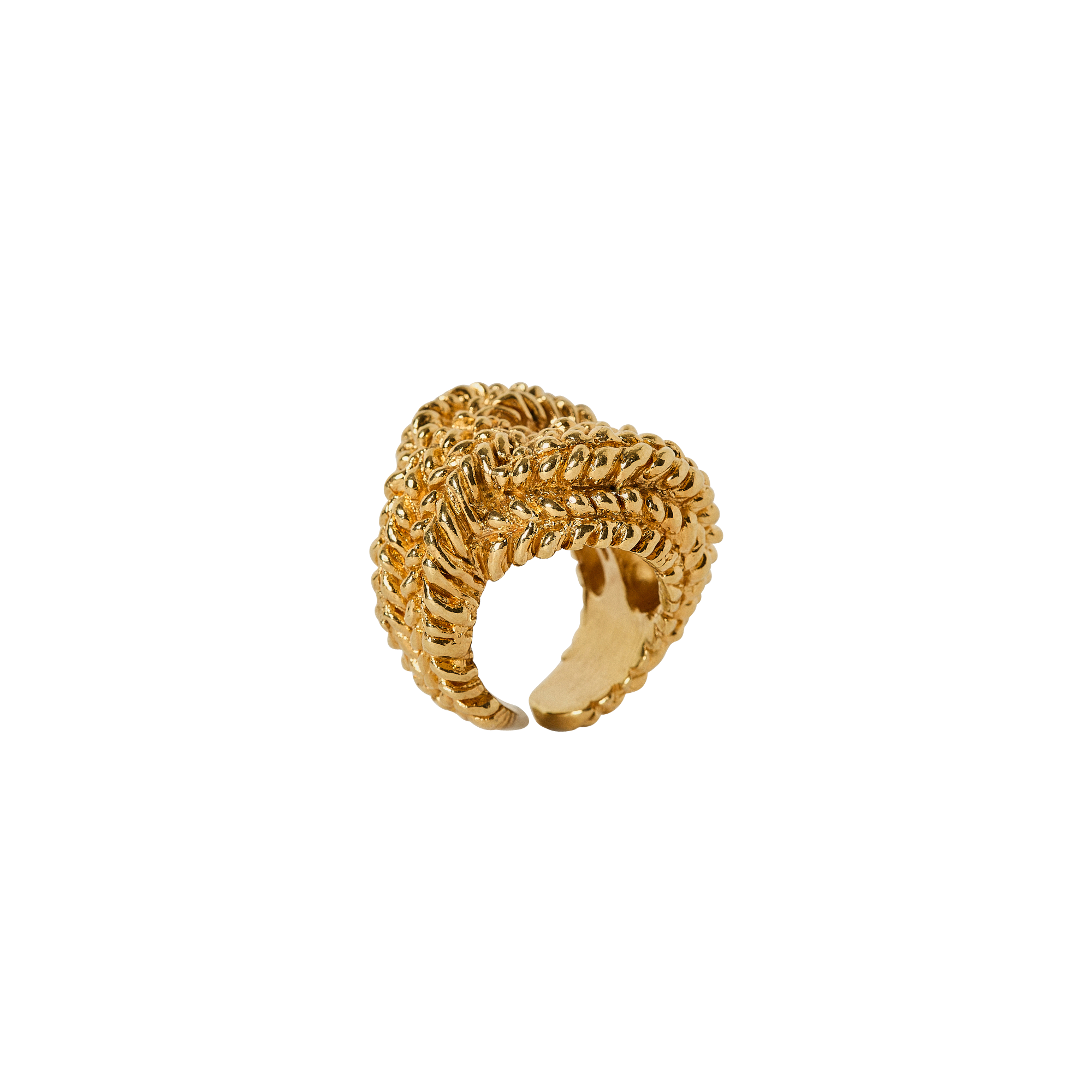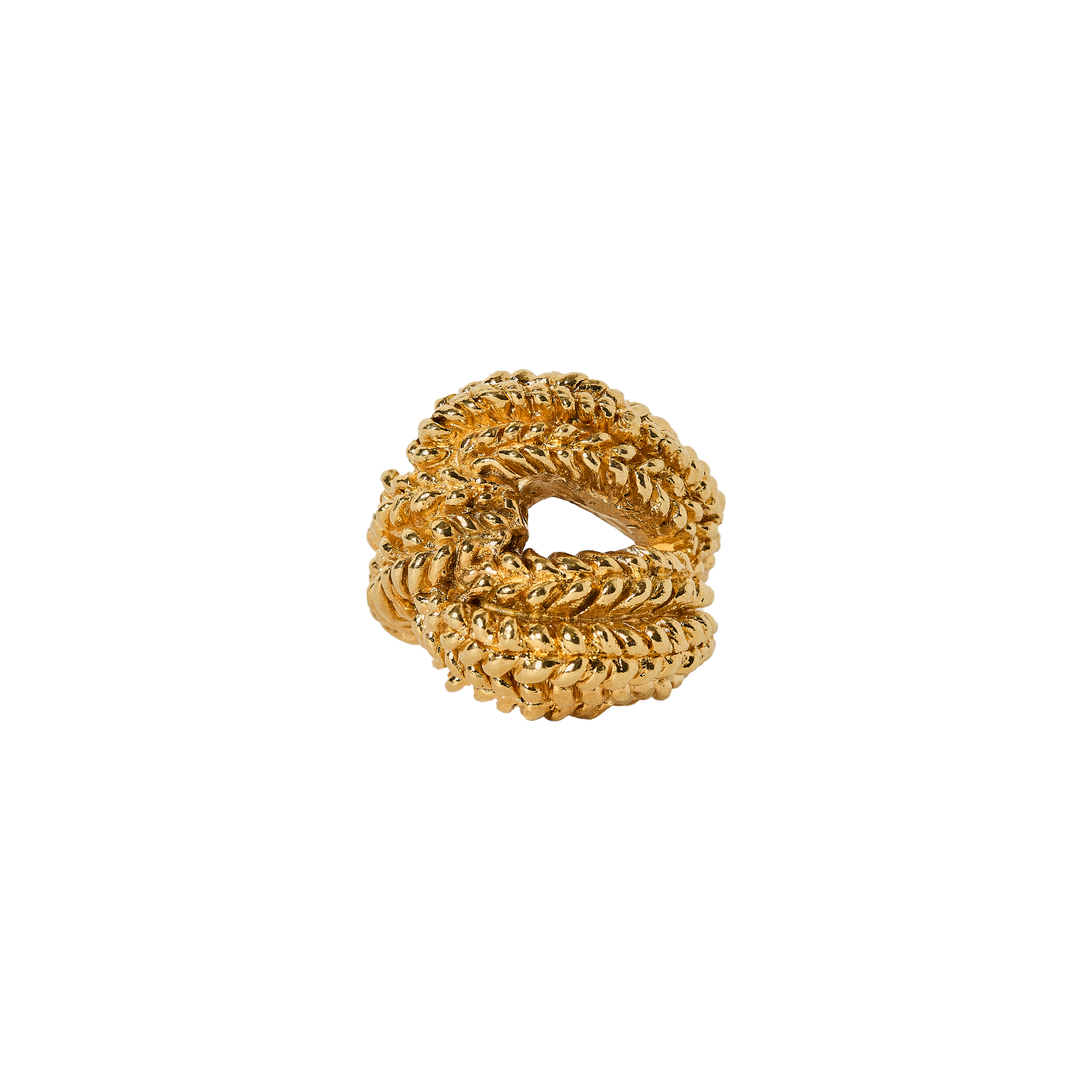 This piece offers endless styling possibilities, upgrade your ensemble with this versatile handmade 18kt gold plated textured pewter metal knot ring. Empowering you to express your unique sense of style with confidence and flair.