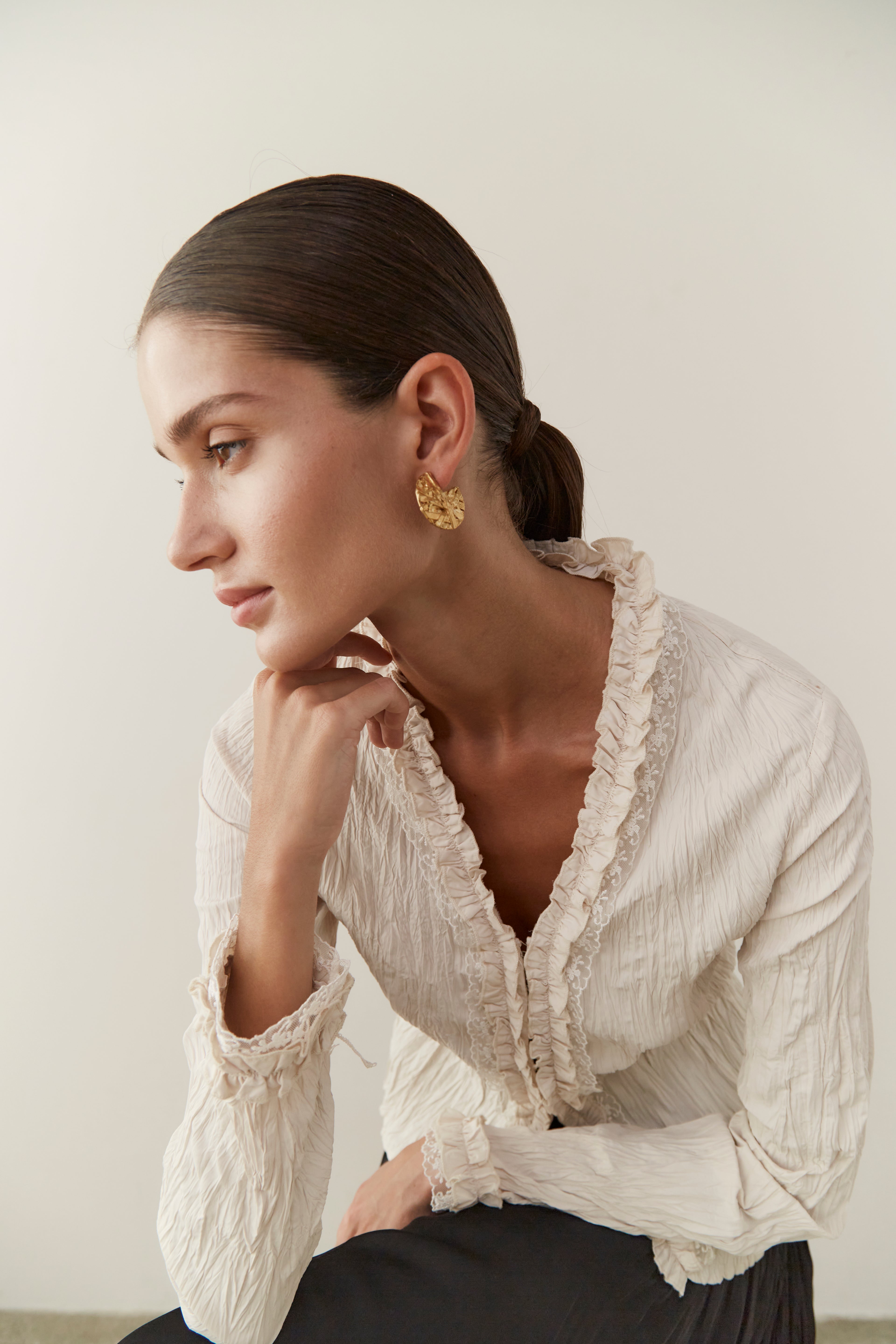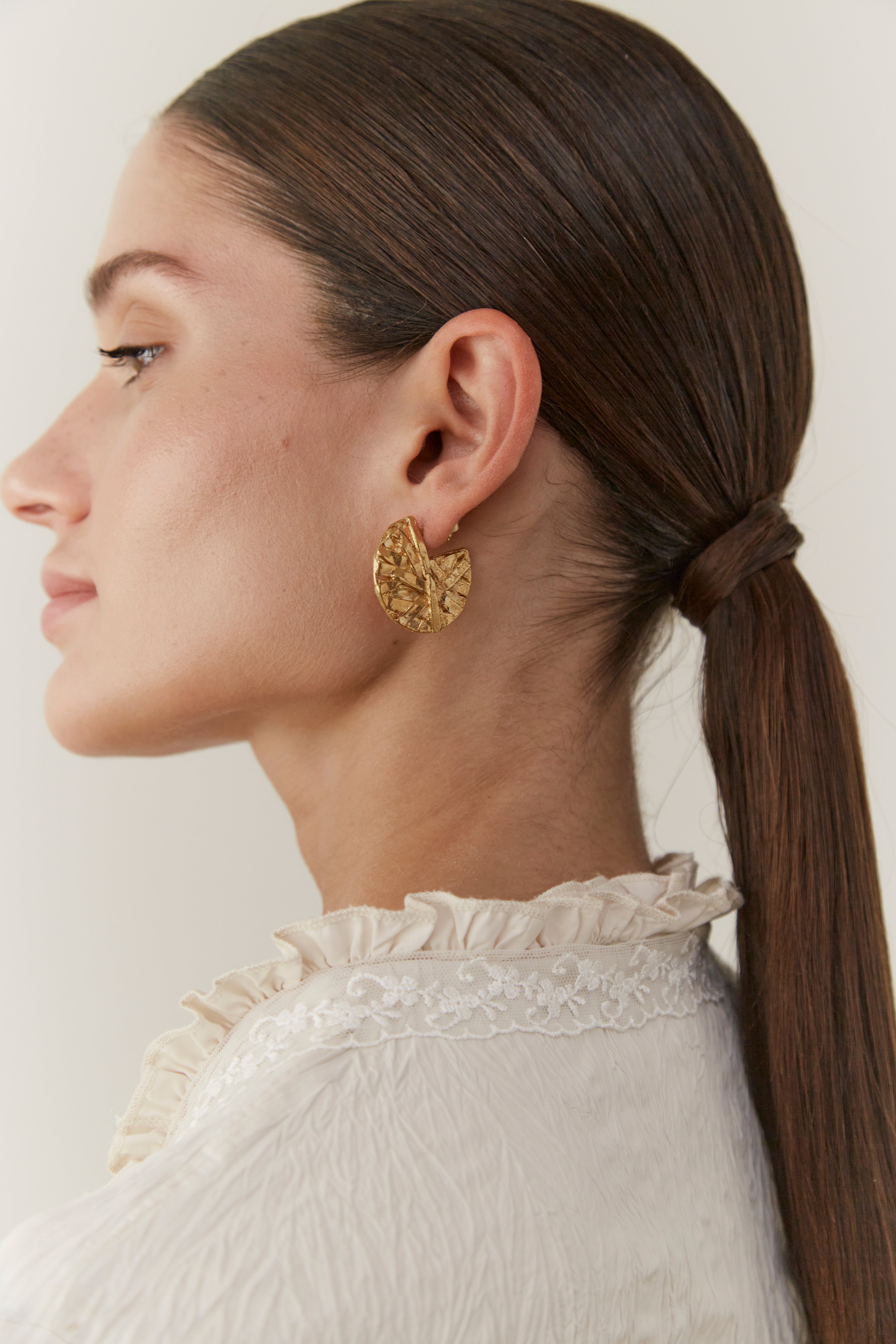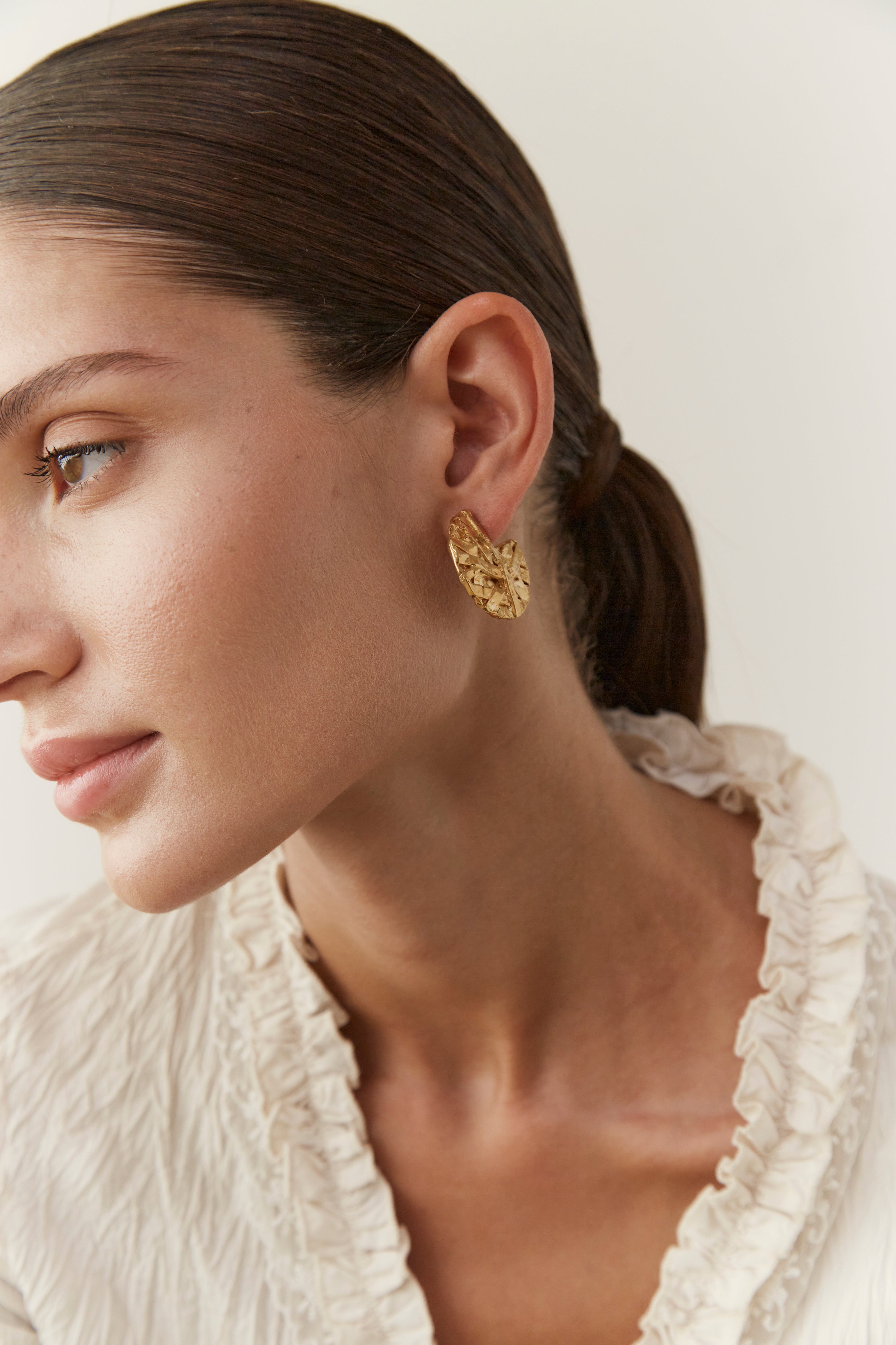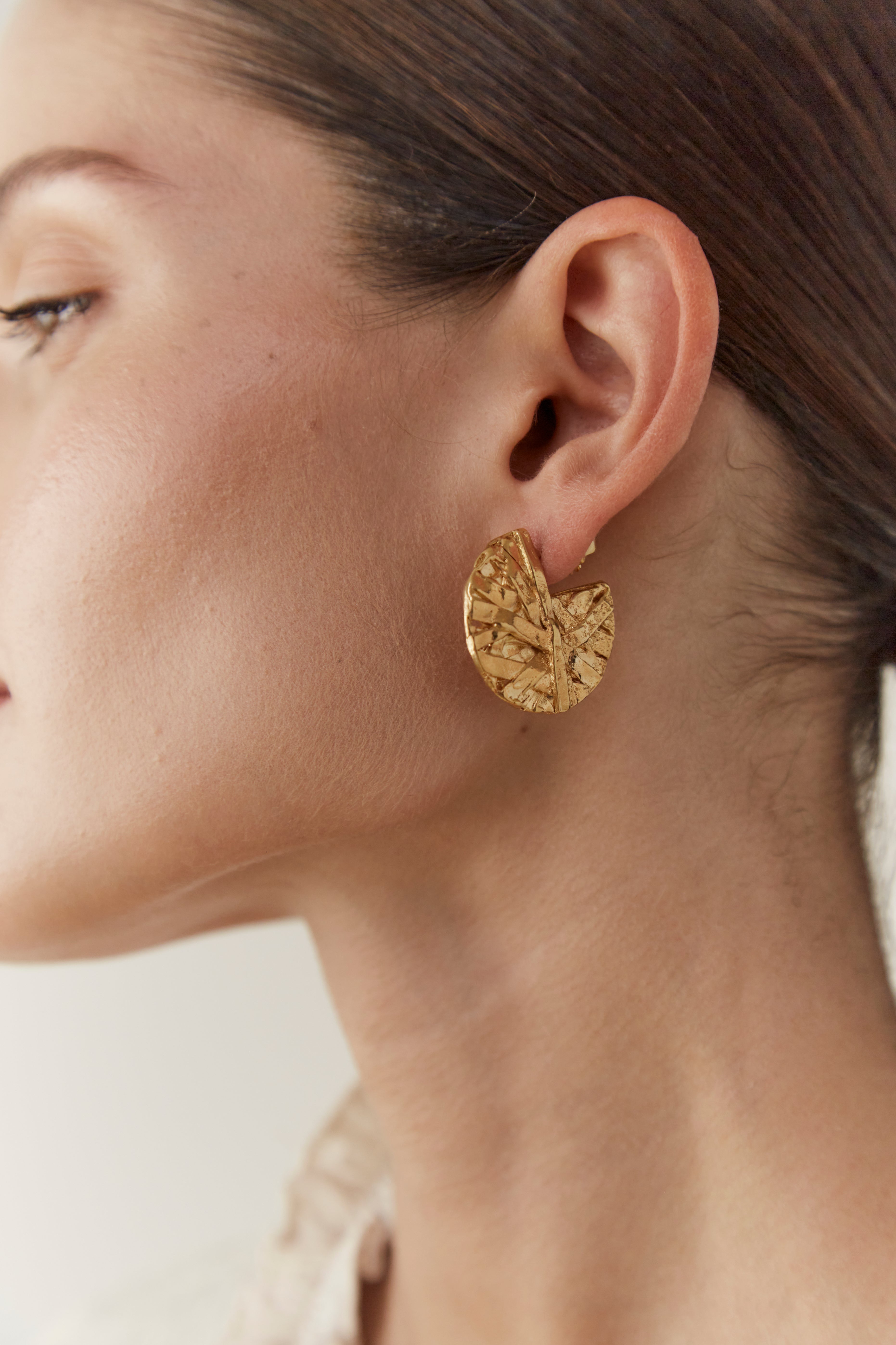 Add a touch of sophistication to your look with these chic handmade 18kt medium size gold plated pewter metal textured hoops. Effortlessly versatile, these hoops complement any outfit, adding a hint of glamour and refinement to your everyday style, ensuring you shine with timeless elegance and grace.