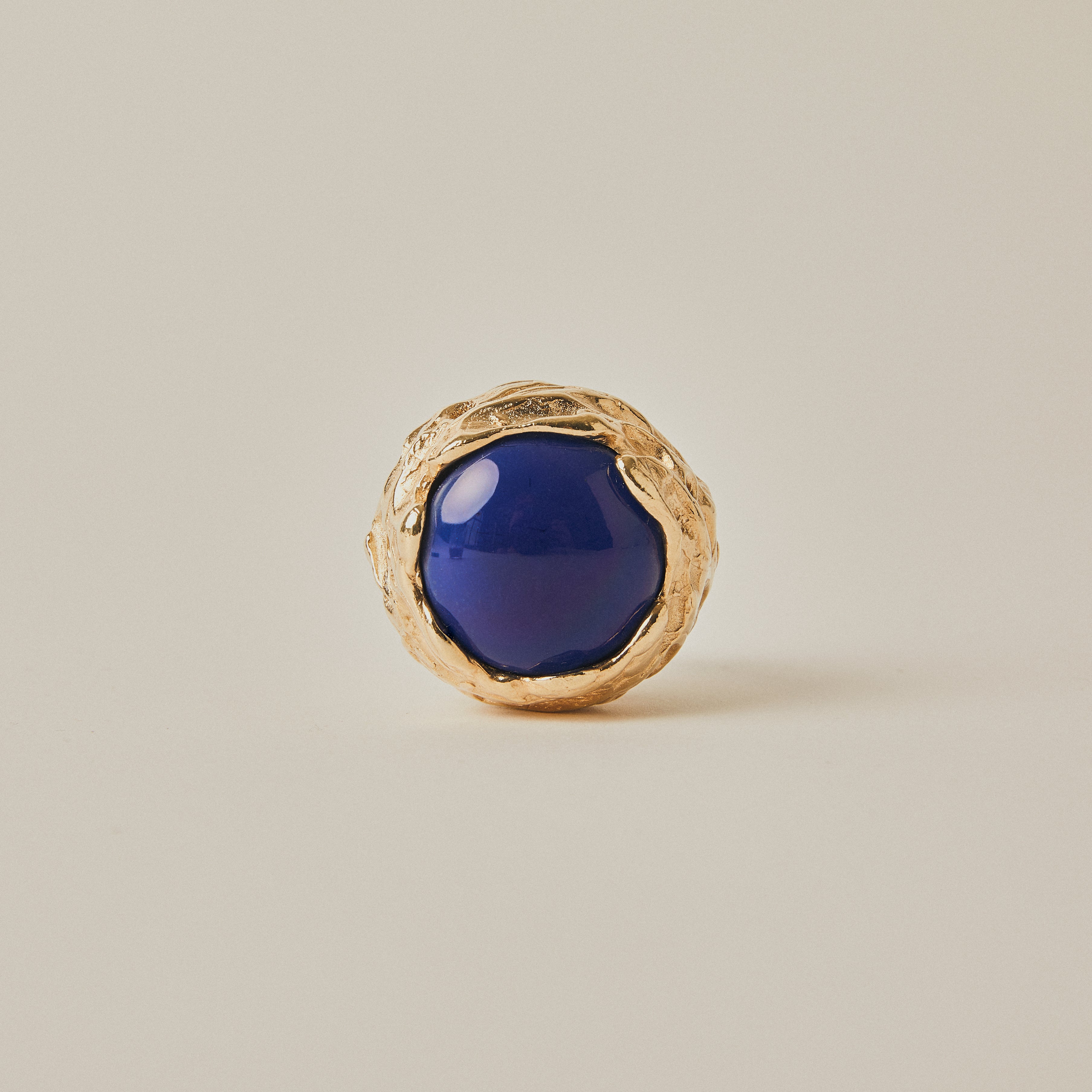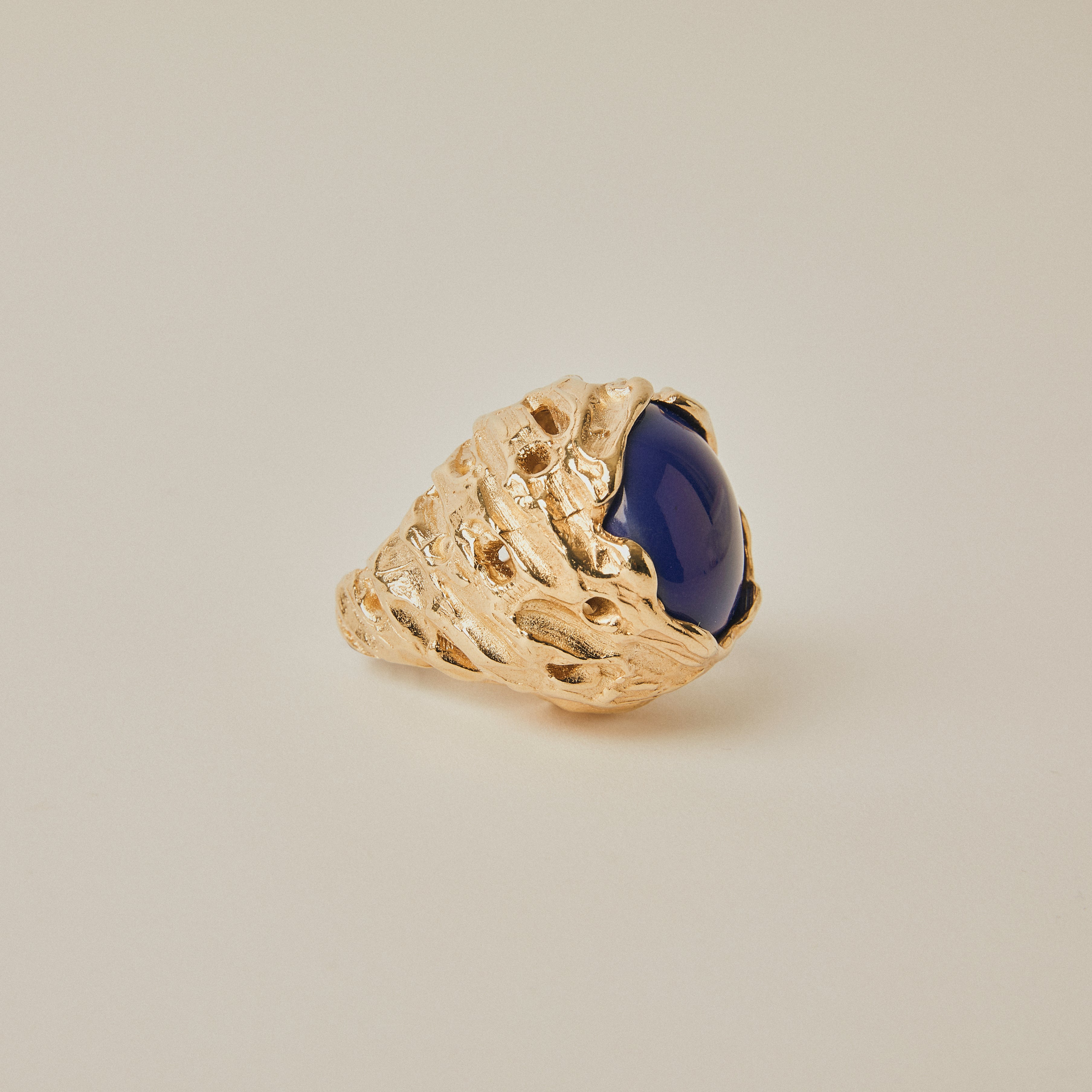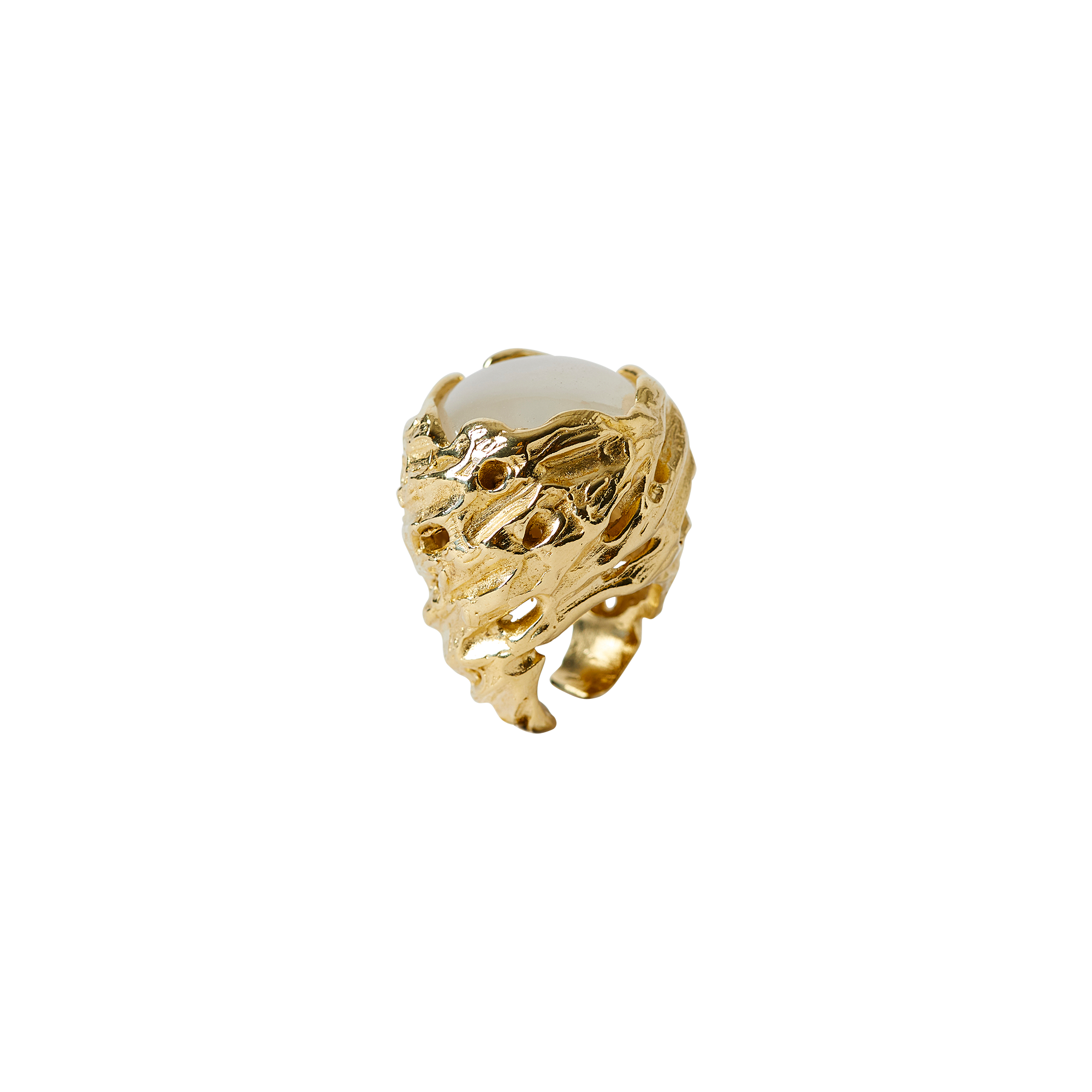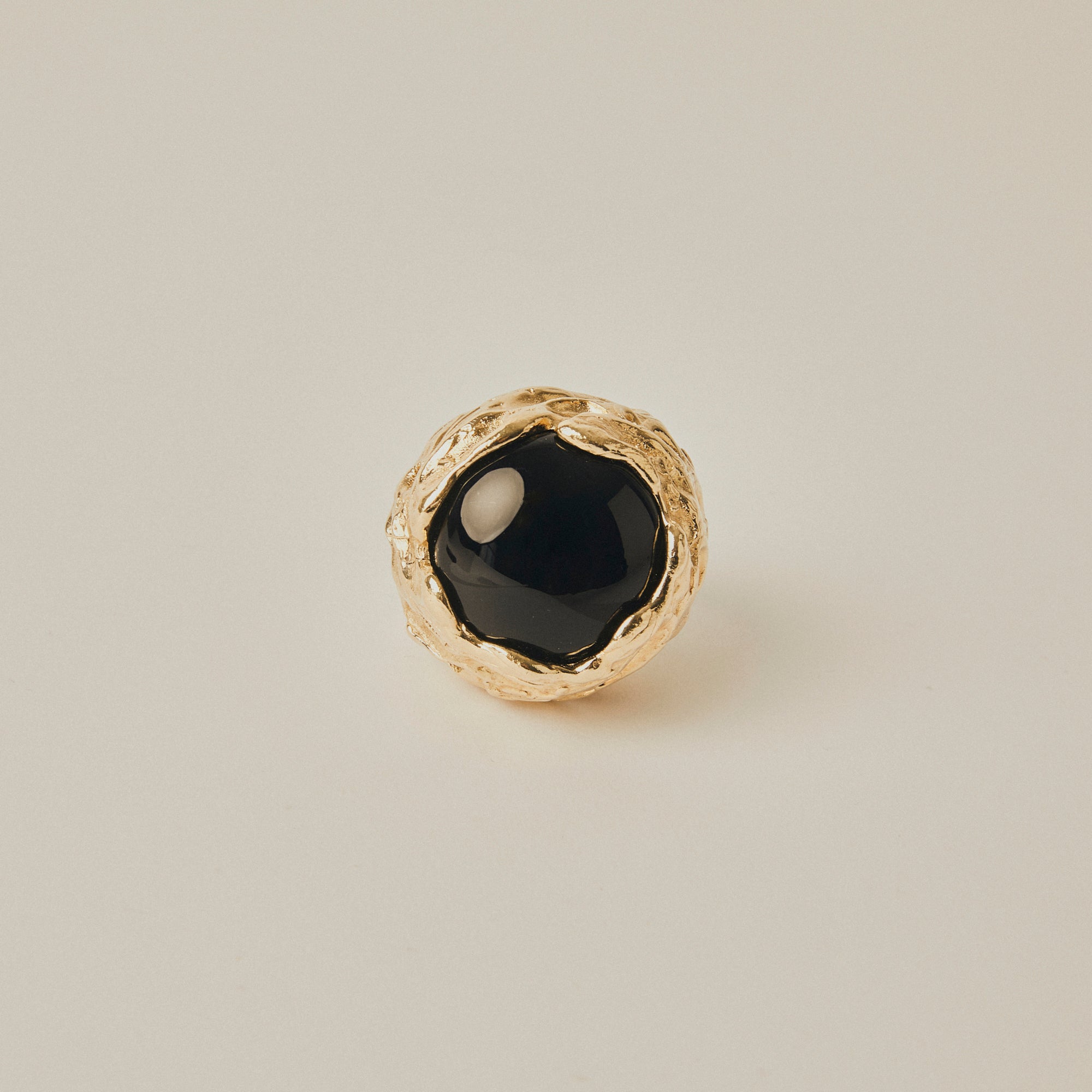 Make a bold impression with this striking XXL statement ring, featuring intricate textures carved in 18kt gold plated pewter metal and accented with a handmade color crystal. Let this ring be your signature accessory, symbolizing your bold and fearless approach to life, while adding a touch of drama and intrigue to your look, ensuring you leave a lasting impression wherever you go.