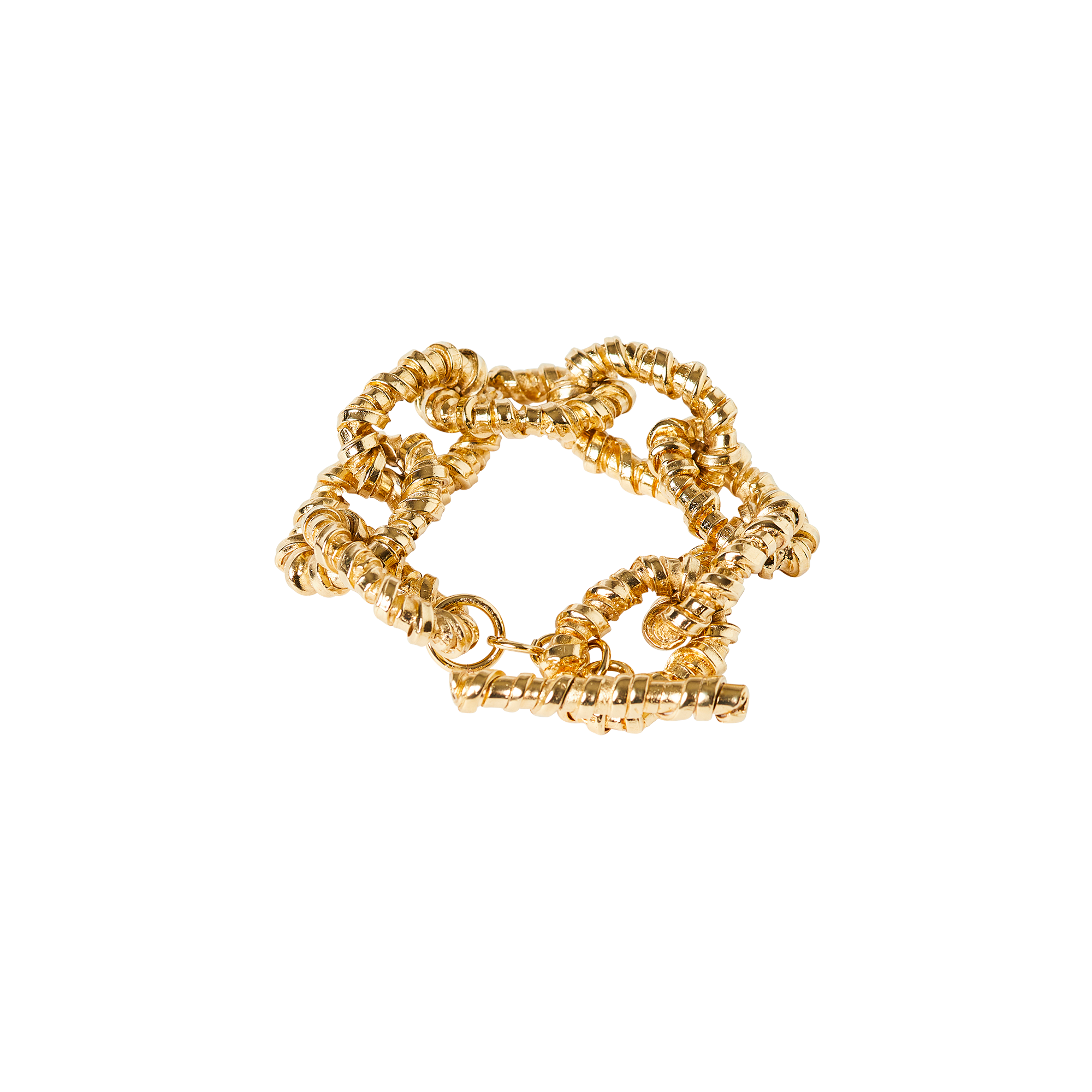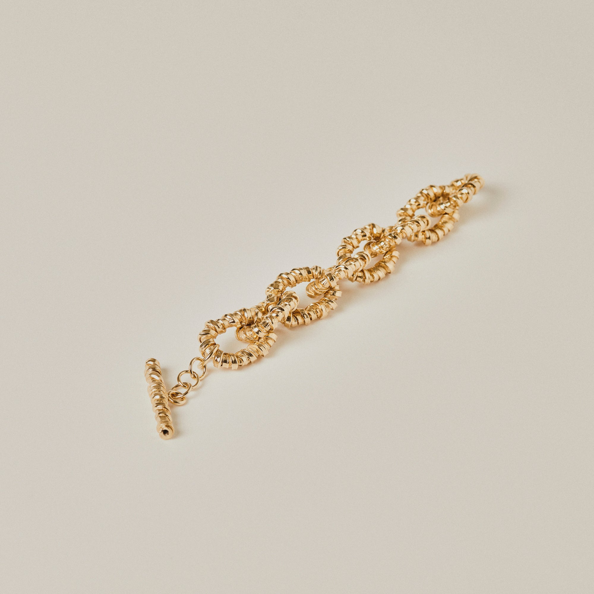 Upgrade your style with this stunning bracelet crafted from gold plated pewter metal with chain texture. Let this bracelet be a reflection of your refined taste and impeccable style, adding a touch of luxury and glamour to any outfit, whether it's a formal event or a casual day out with friends.