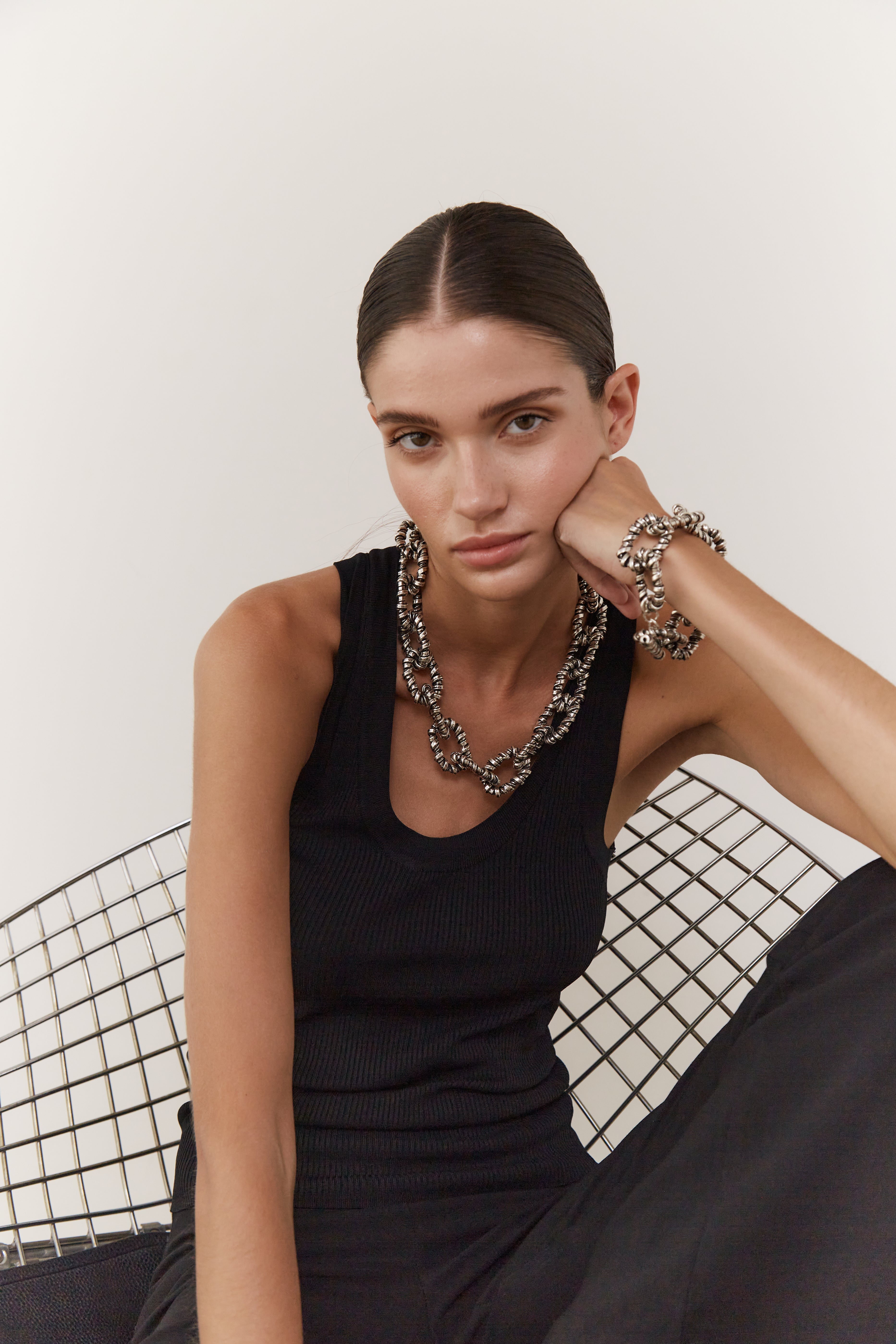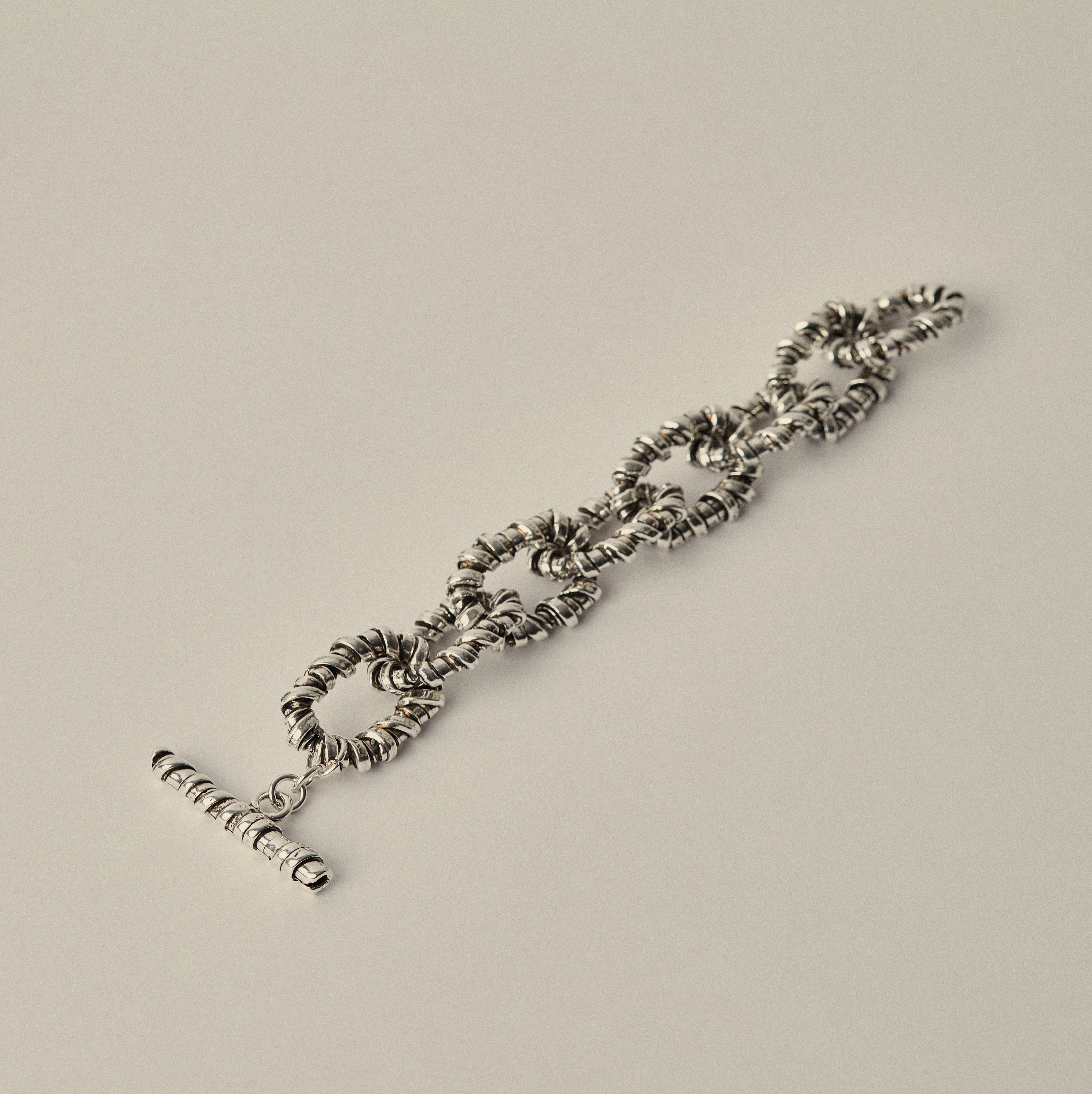 Upgrade your style with this stunning bracelet crafted from silver pewter metal with chain texture. Let this bracelet be a reflection of your refined taste and impeccable style, adding a touch of luxury and glamour to any outfit, whether it's a formal event or a casual day out with friends.