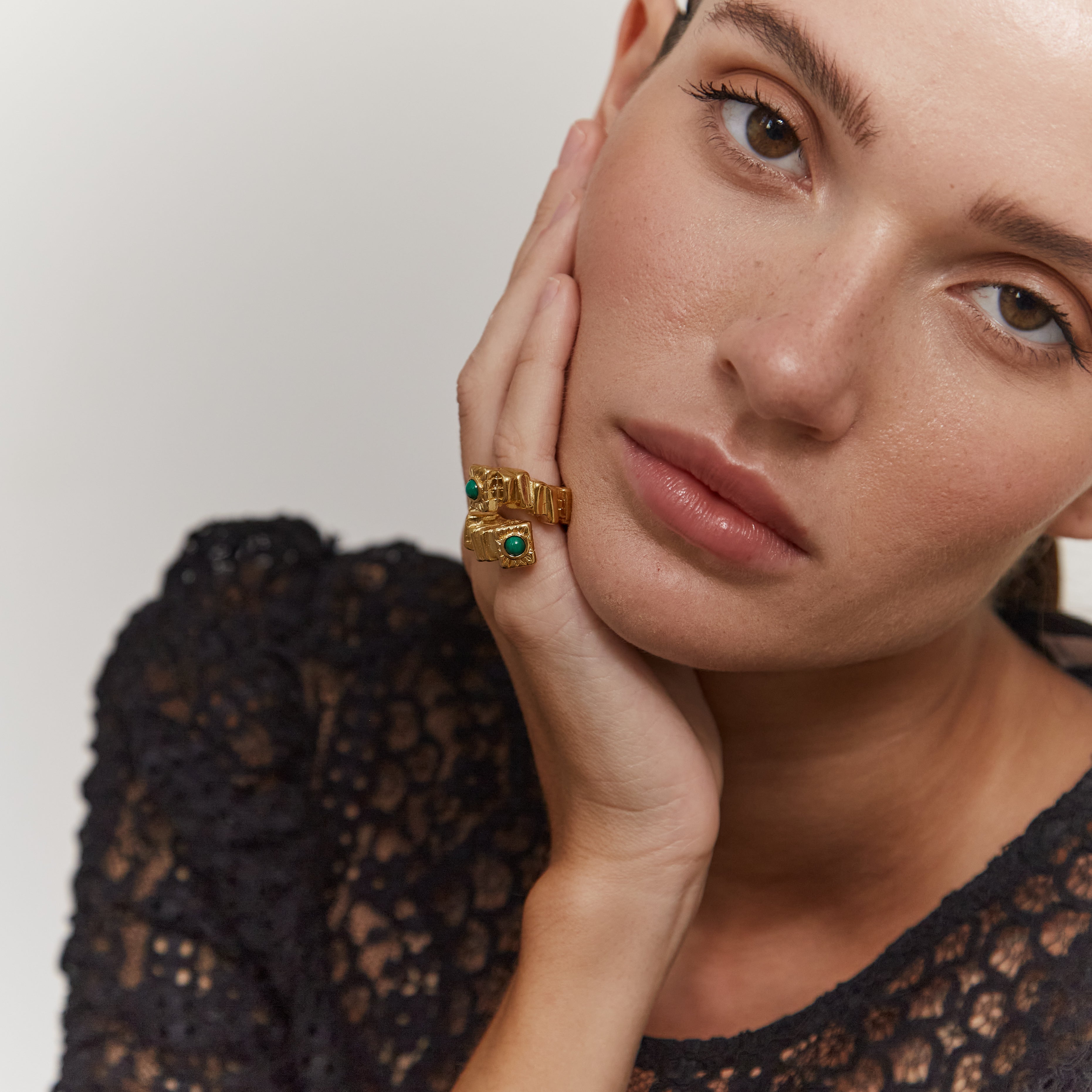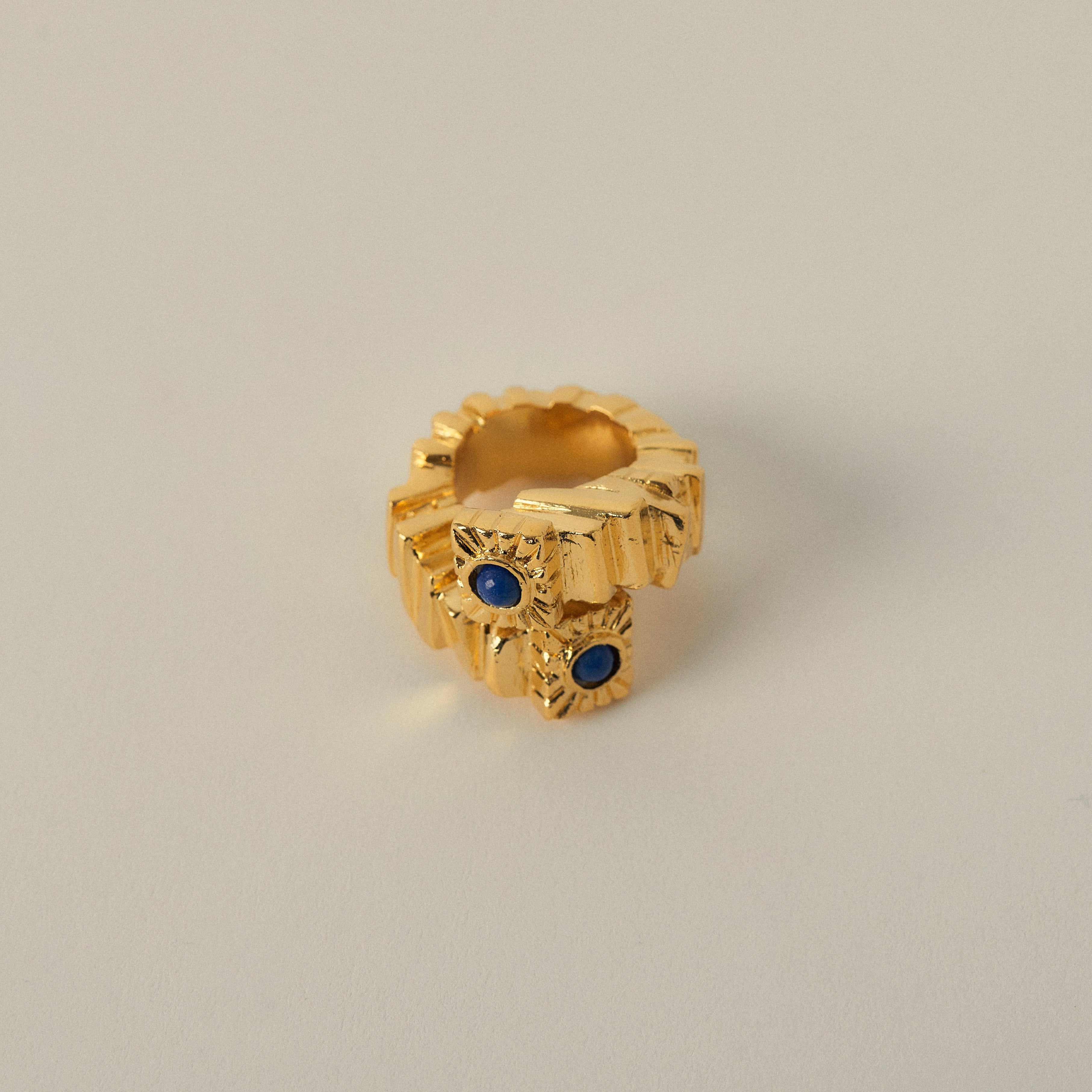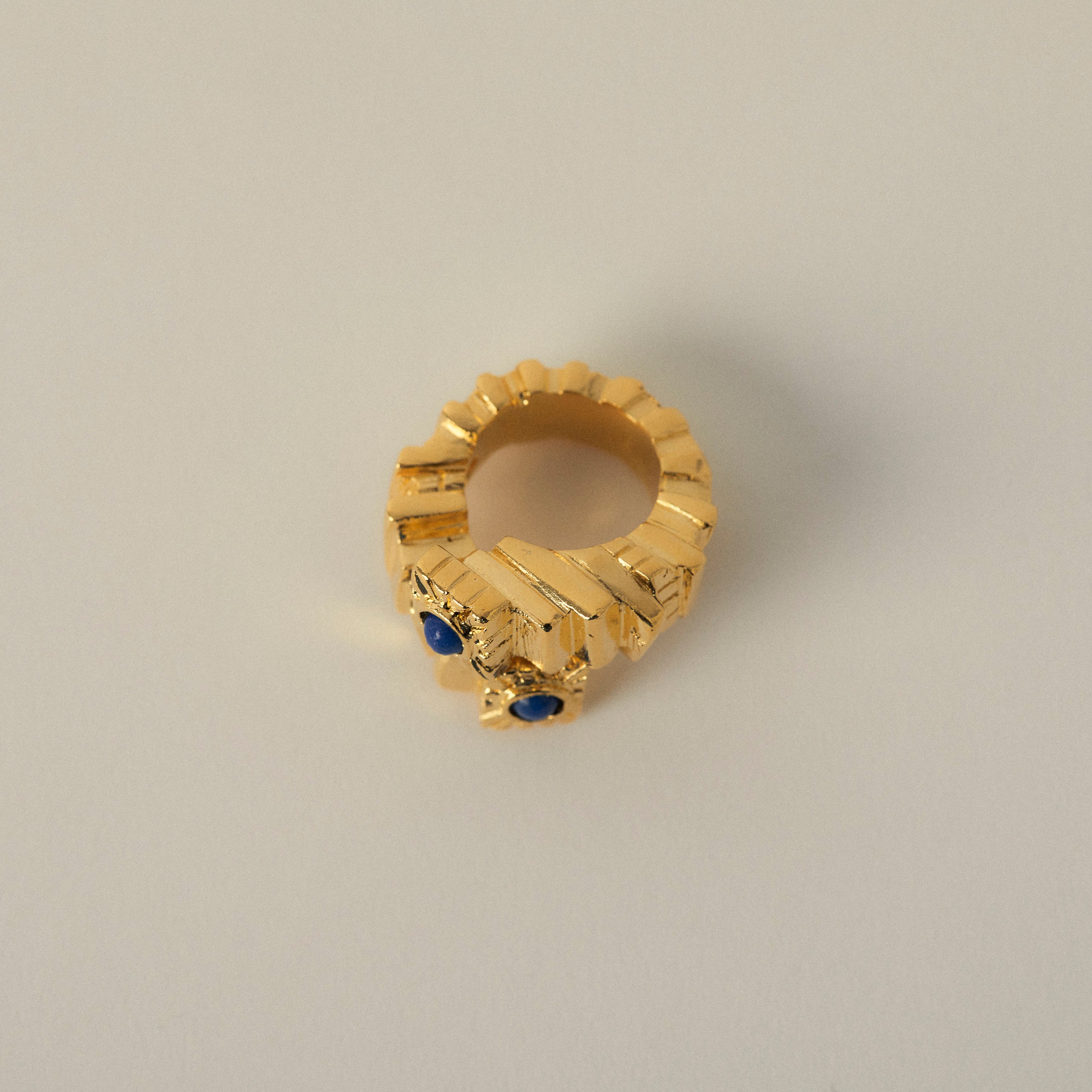 This exquisite handmade 18kt gold plated pewter metal ring embrace the beauty of craftsmanship and attention to detail with this stunning ring, designed to command attention and spark conversation wherever you go, making it the perfect accessory for both special occasions and everyday wear.