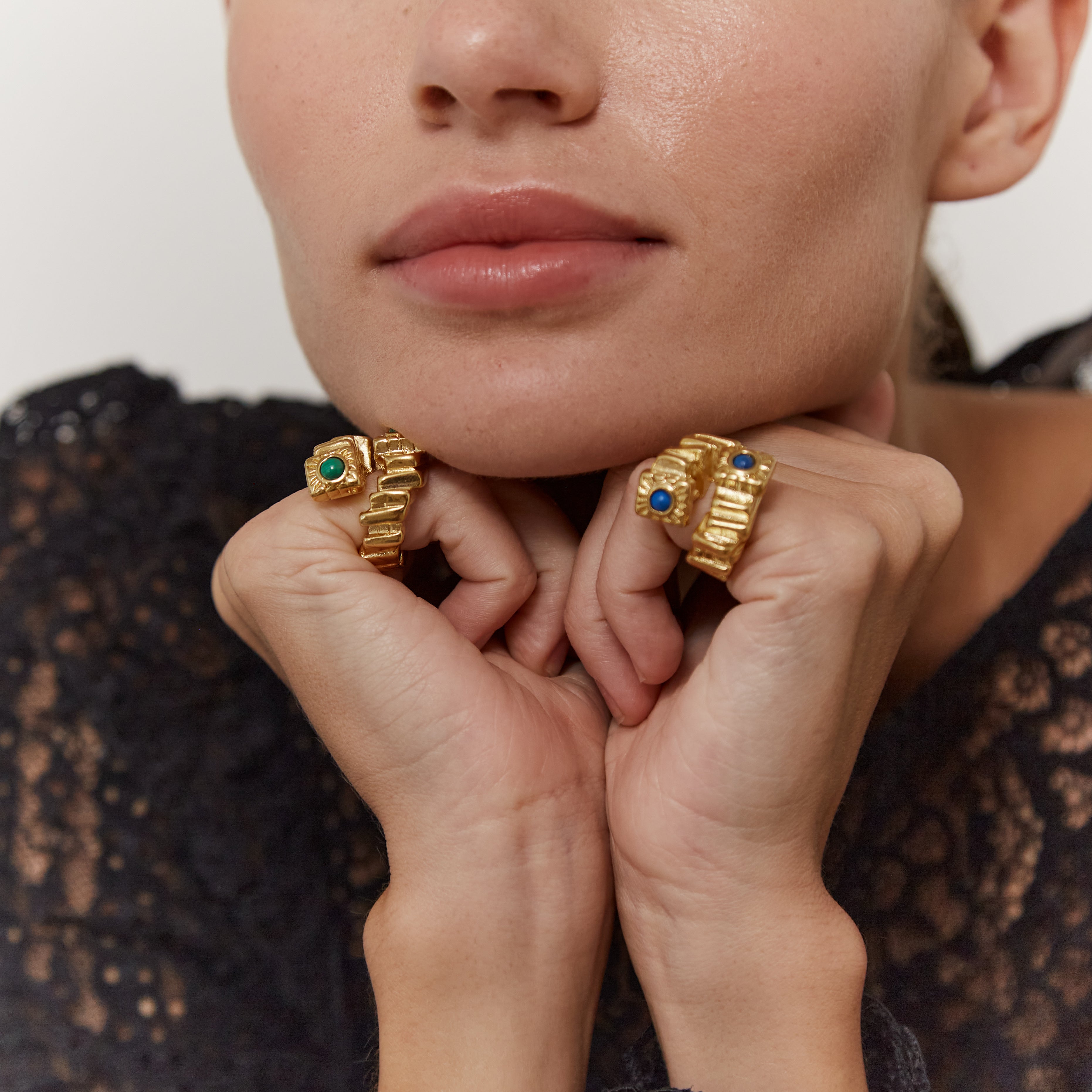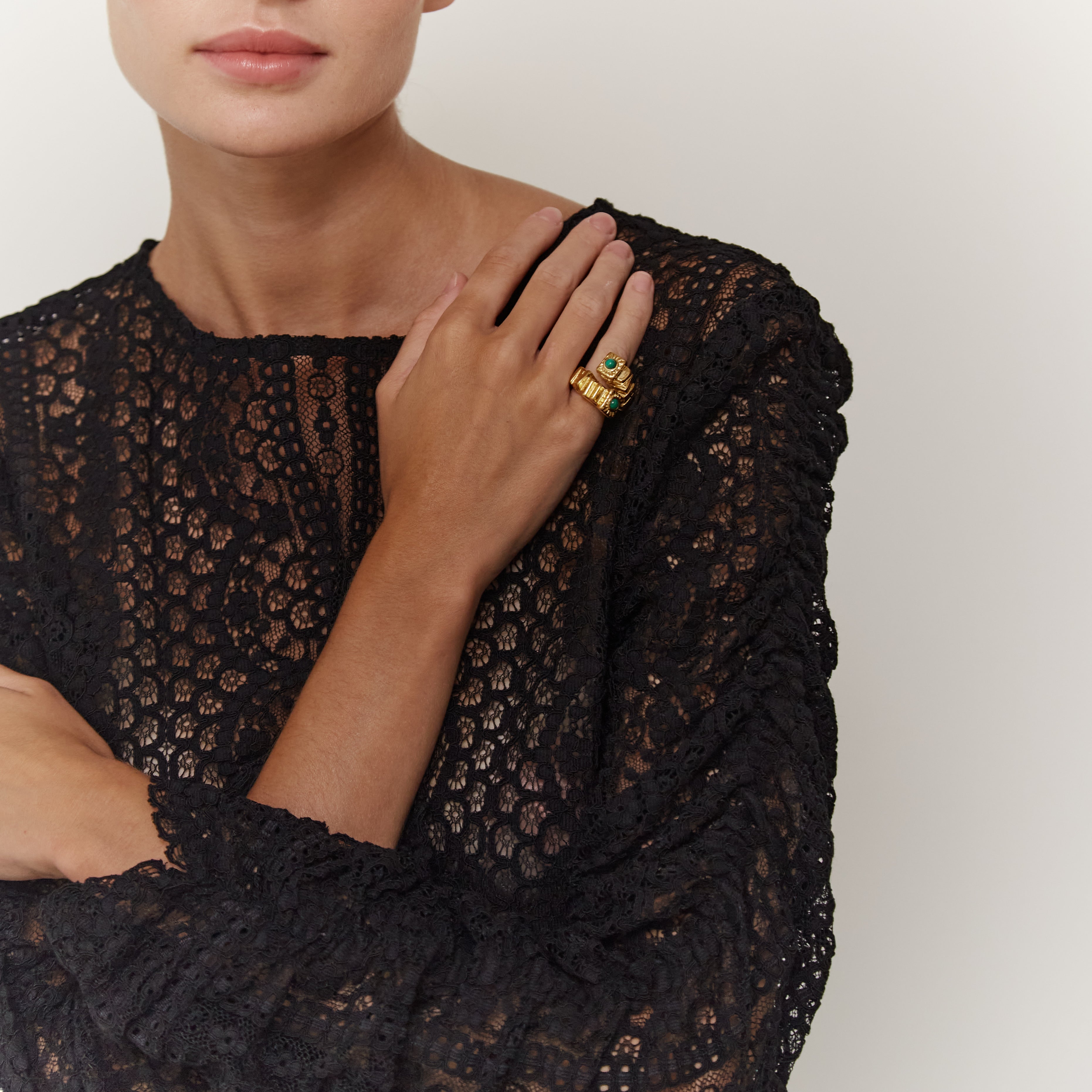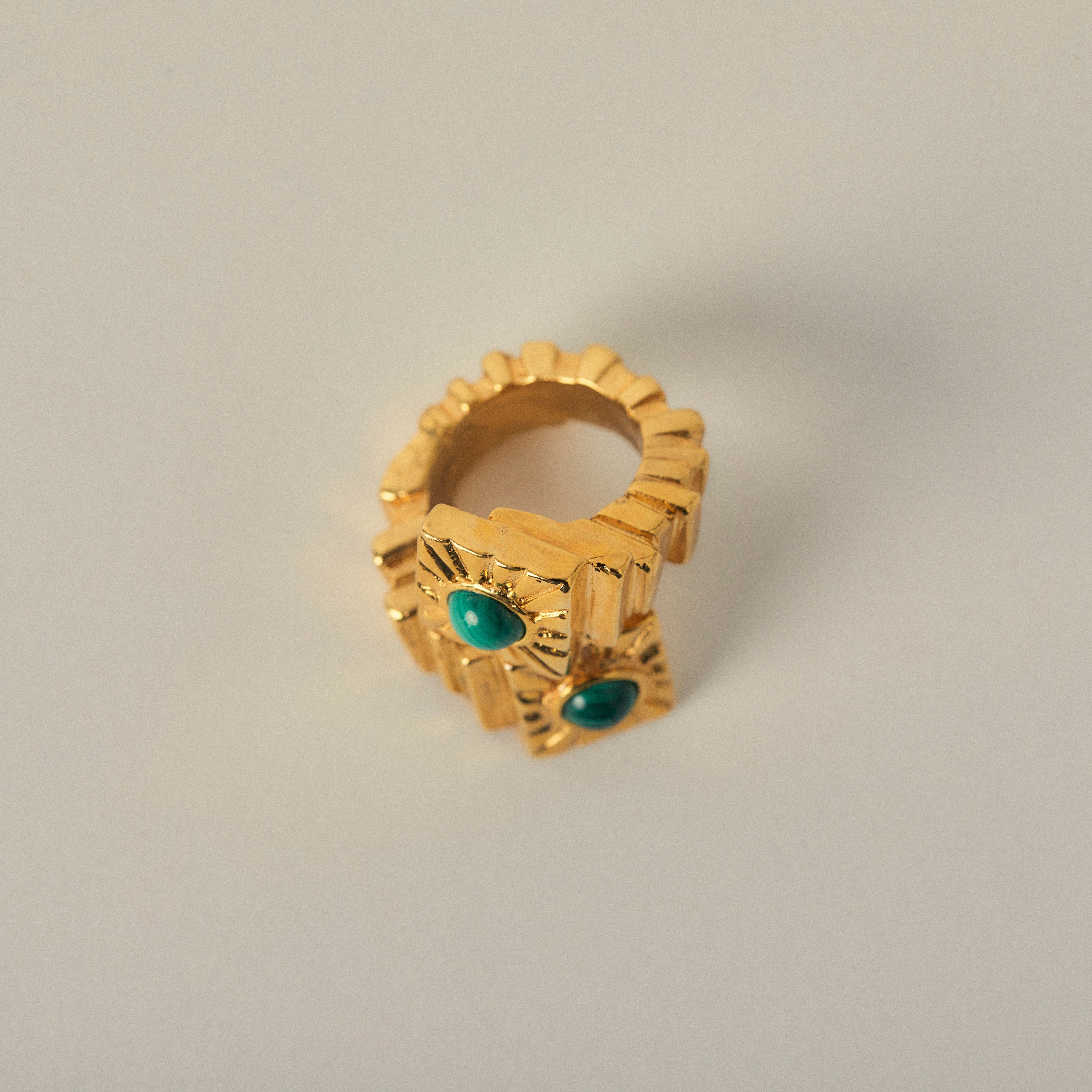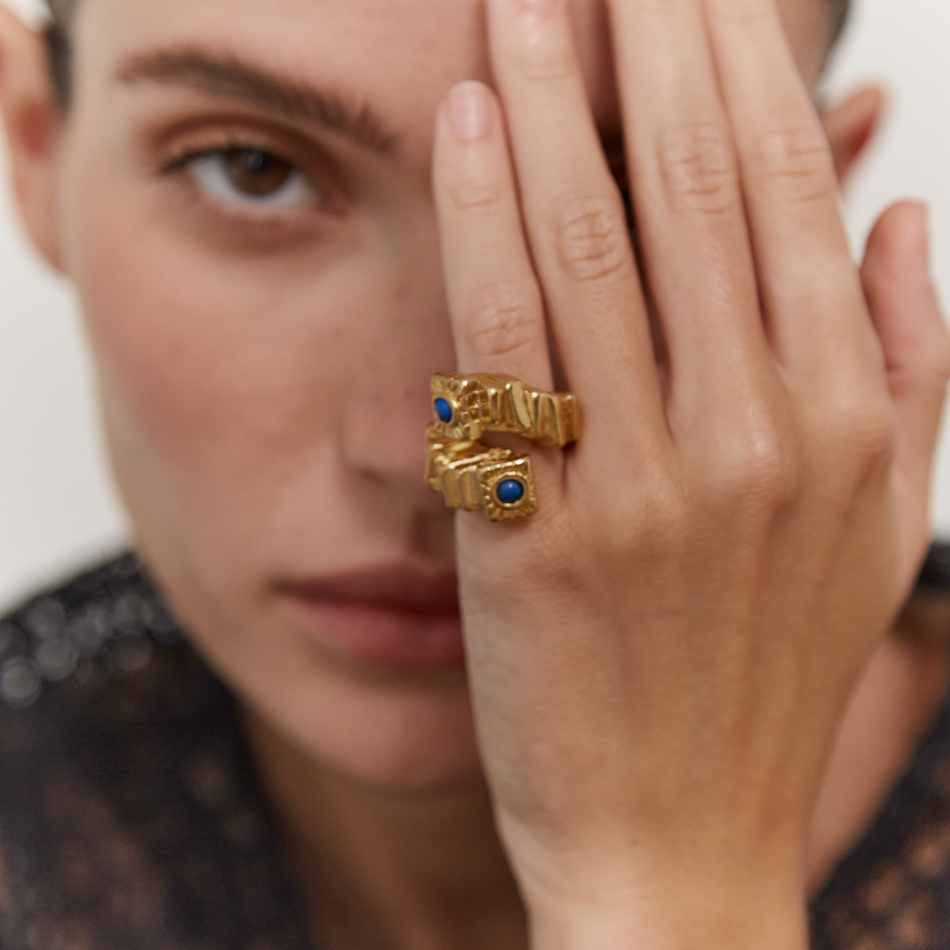 This exquisite handmade 18kt gold plated pewter metal ring embrace the beauty of craftsmanship and attention to detail with this stunning ring, designed to command attention and spark conversation wherever you go, making it the perfect accessory for both special occasions and everyday wear.
