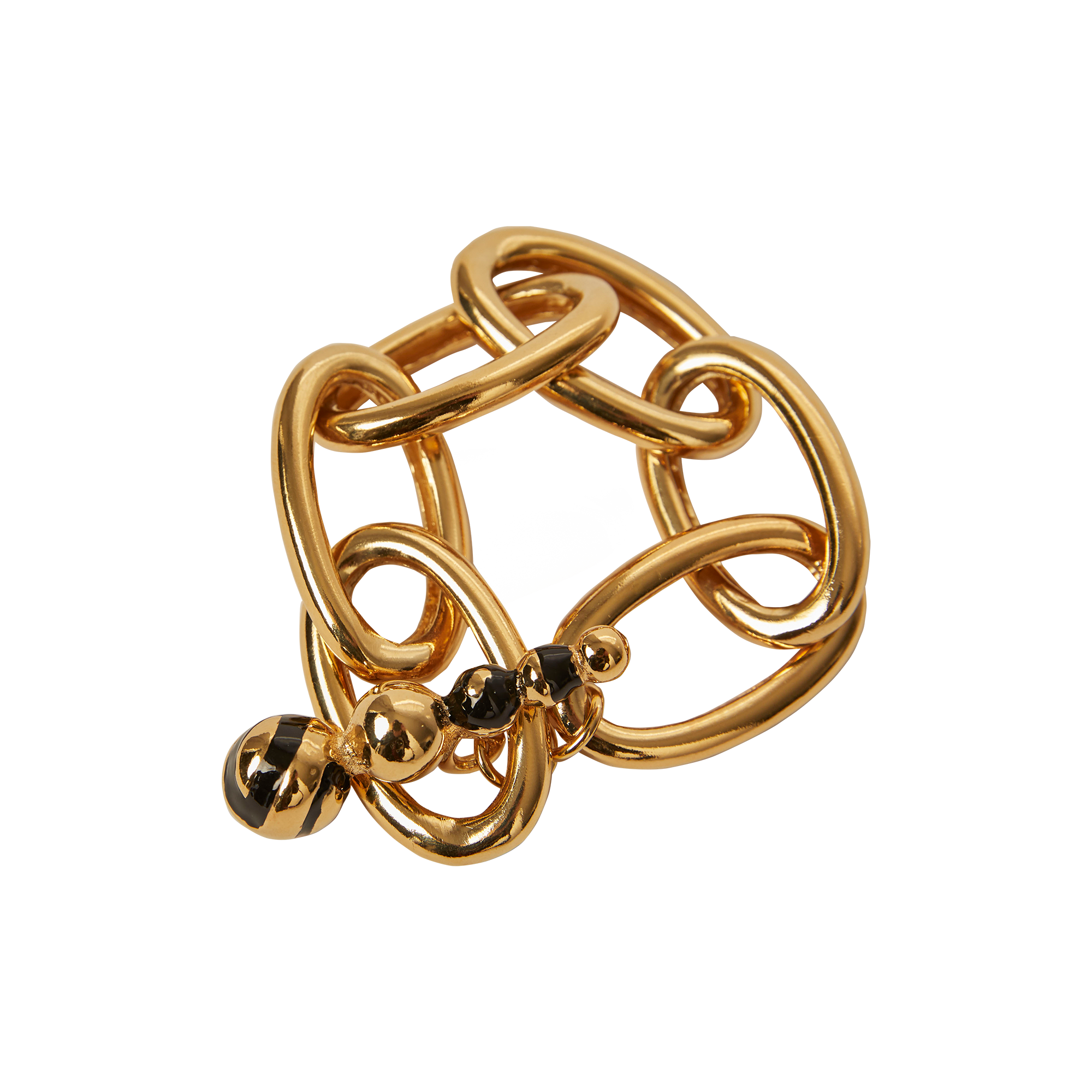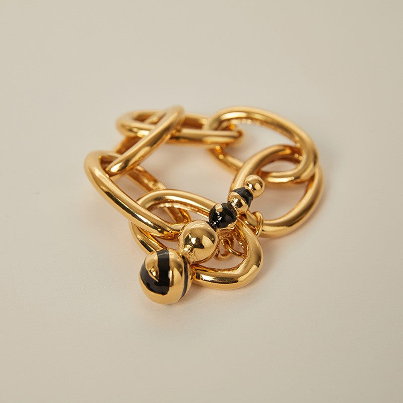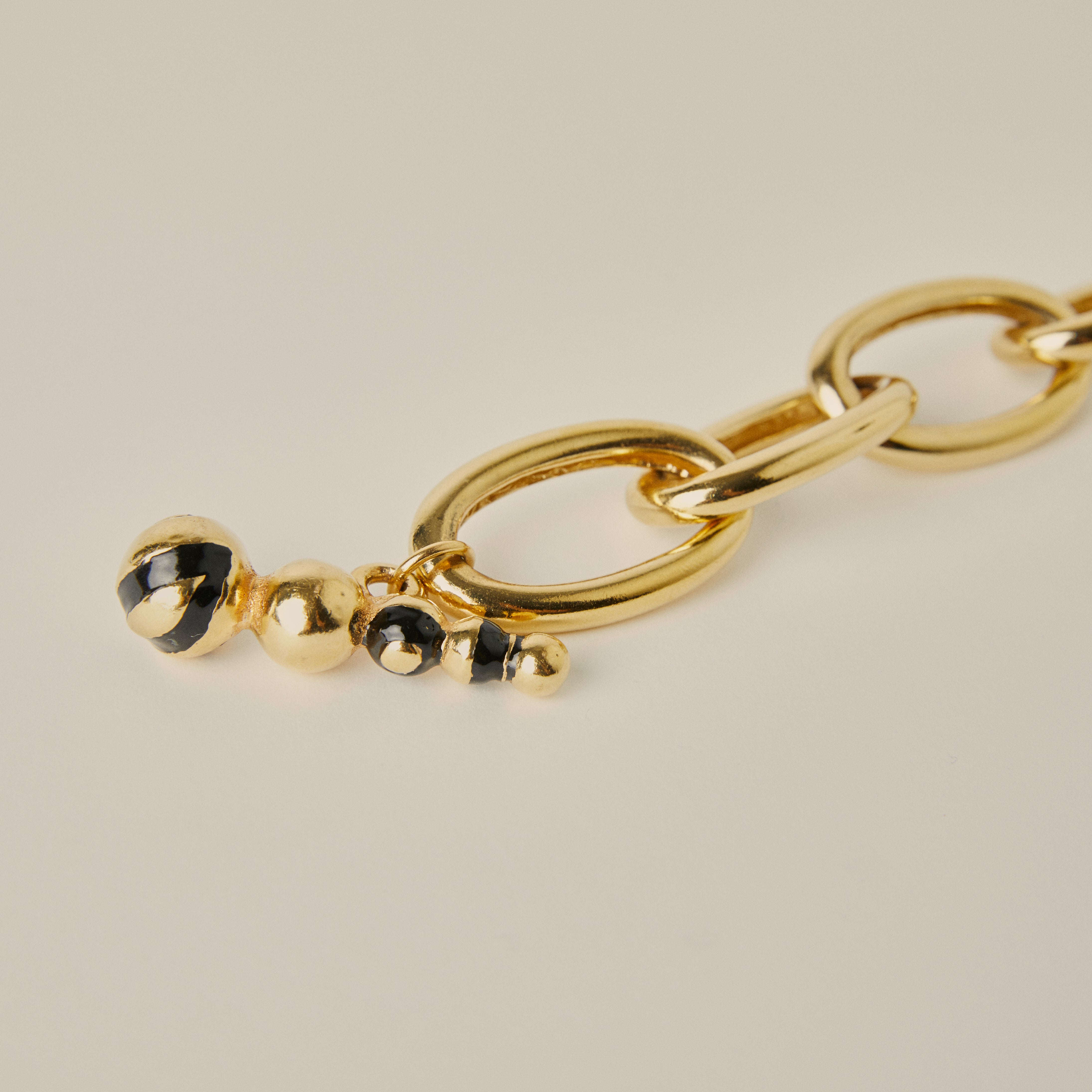 Add sophistication to your wrist with this exquisite chain bracelet, handmade in 18kt gold plated pewter metal with a black enamel clasp. From brunch dates to cocktail parties, let this bracelet be your go-to accessory, radiating timeless charm and refined elegance wherever you go.