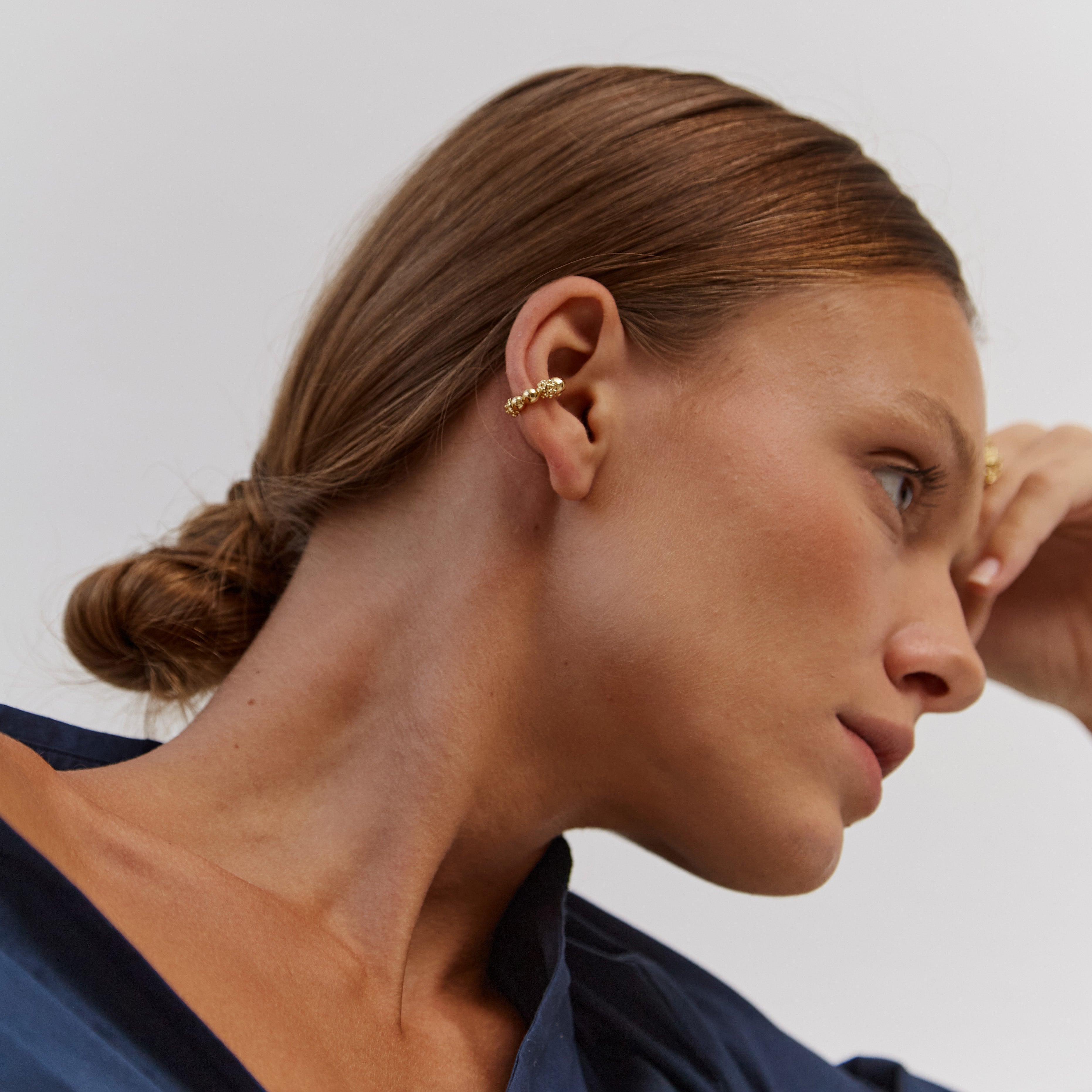 Infuse glamour into your style with these sleek metal hoops, handmade in 18kt gold plated pewter metal. From casual brunches to romantic dinners, these hoops add a touch of effortless glamour to any occasion, enhancing your natural beauty and radiance.