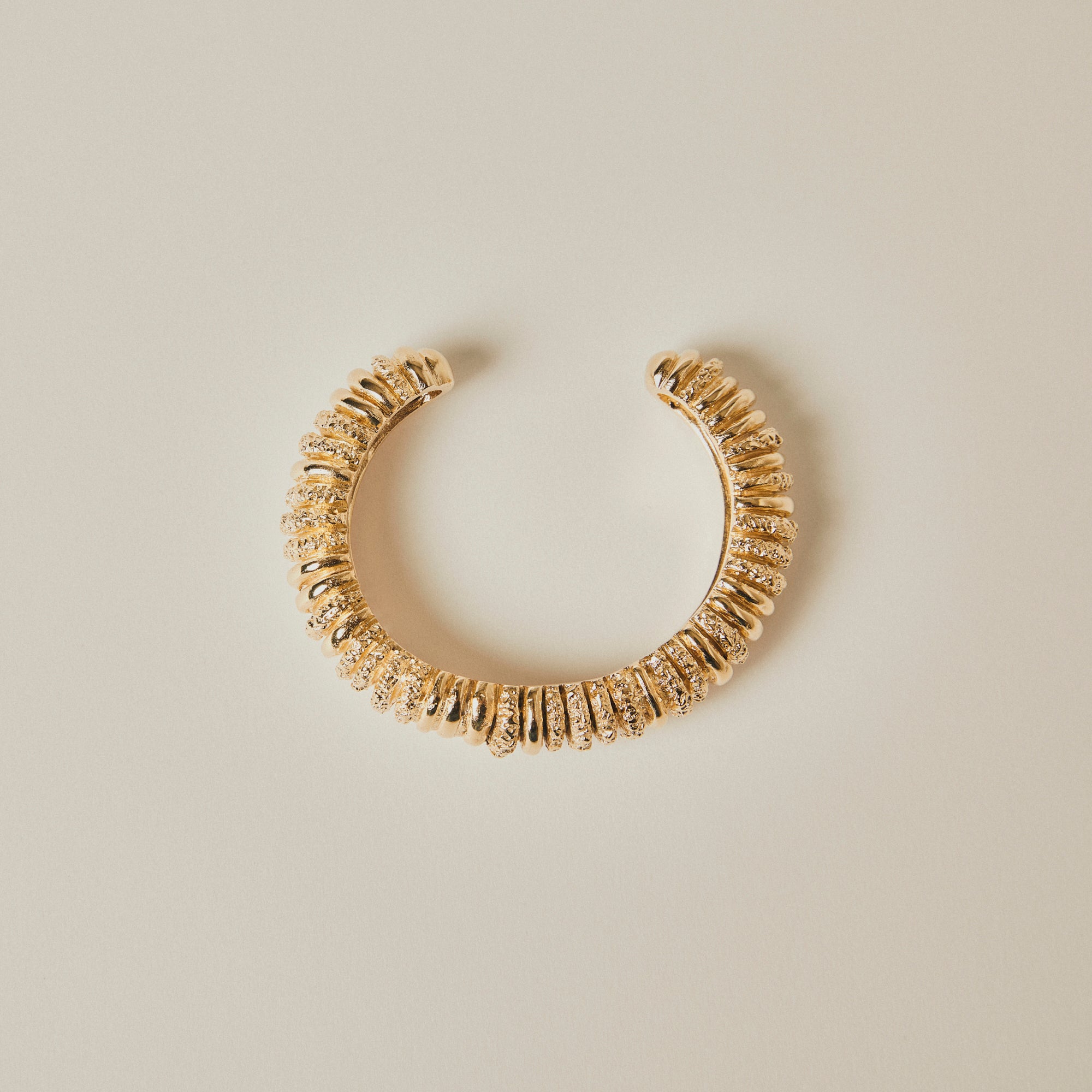 This not flexible bracelet, meticulously crafted in 18kt gold plated pewter metal. Bold and unapologetic commands attention and exudes strength, serving as a reminder to embrace your style and stand out from the crowd with confidence.