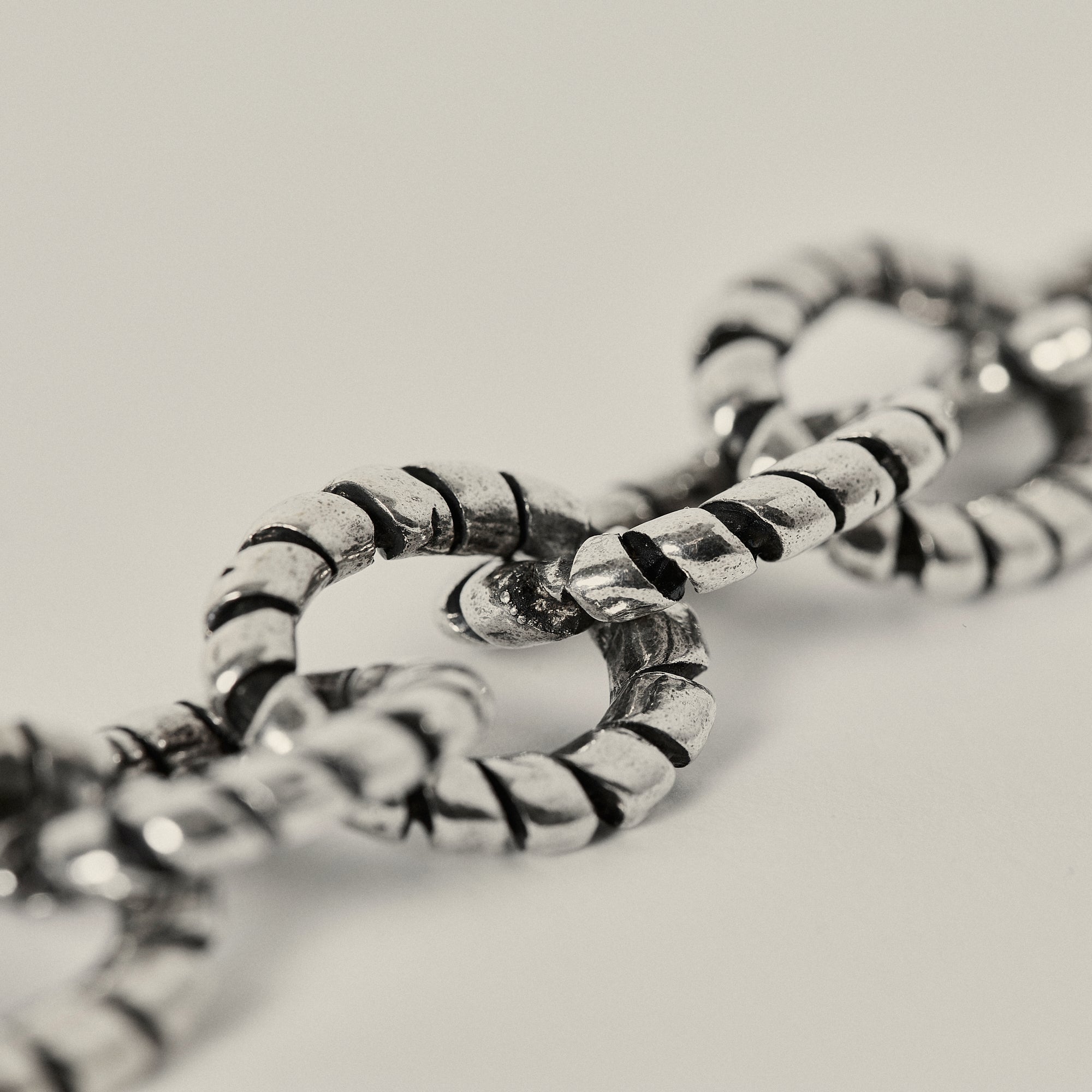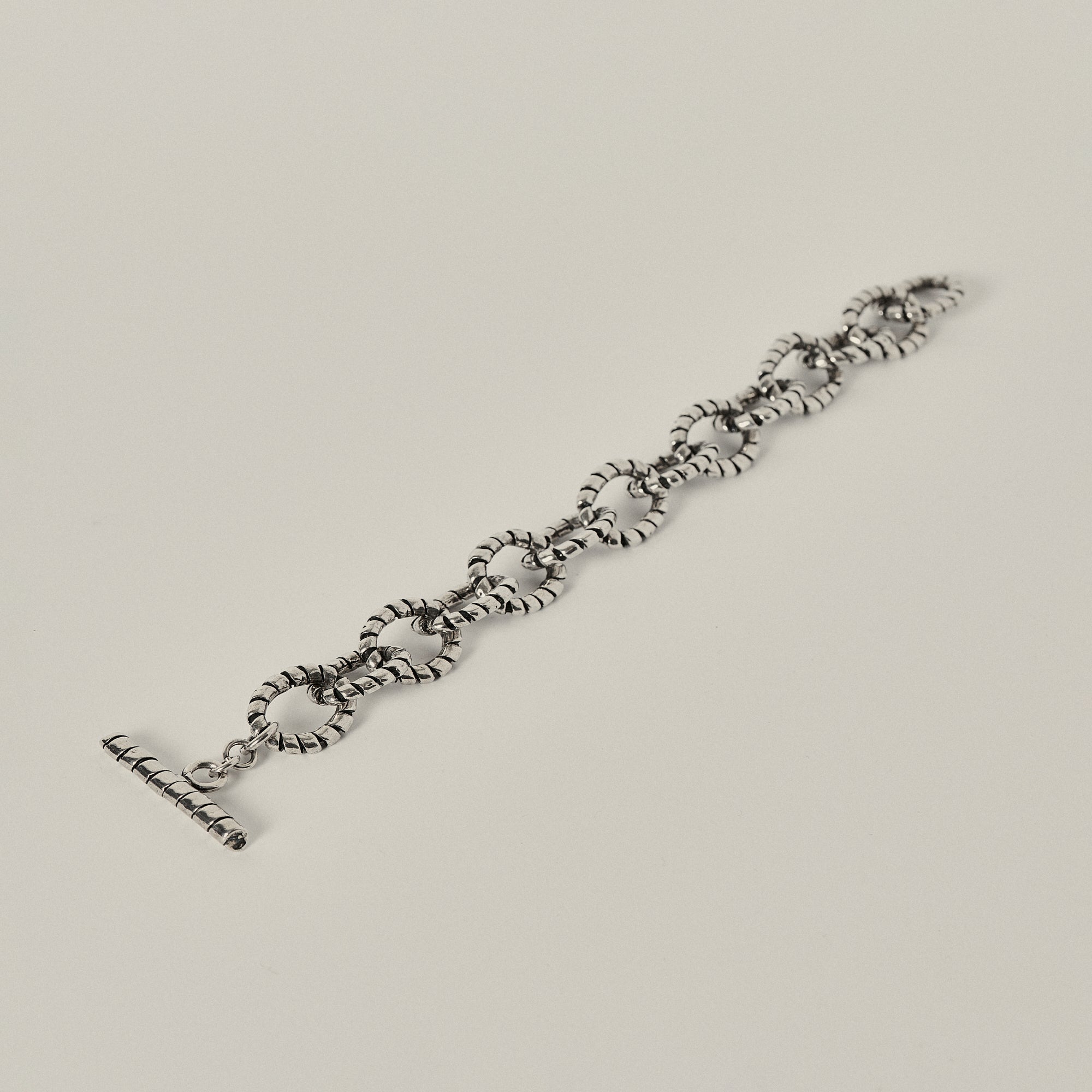 Add to your wrist with this handmade 18kt silver pewter metal chain texture bracelet. Effortlessly transition from day to night with this versatile piece, whether you're attending a boardroom meeting or dancing the night away at your favorite rooftop bar, it's the perfect accessory to elevate any look.