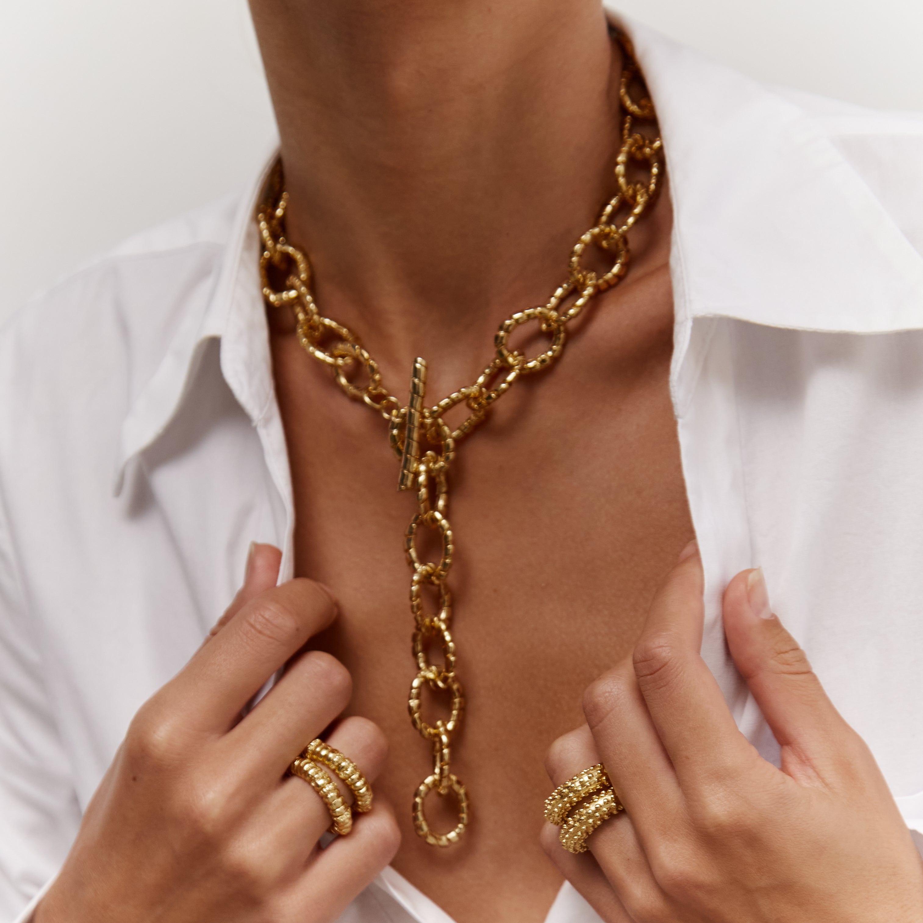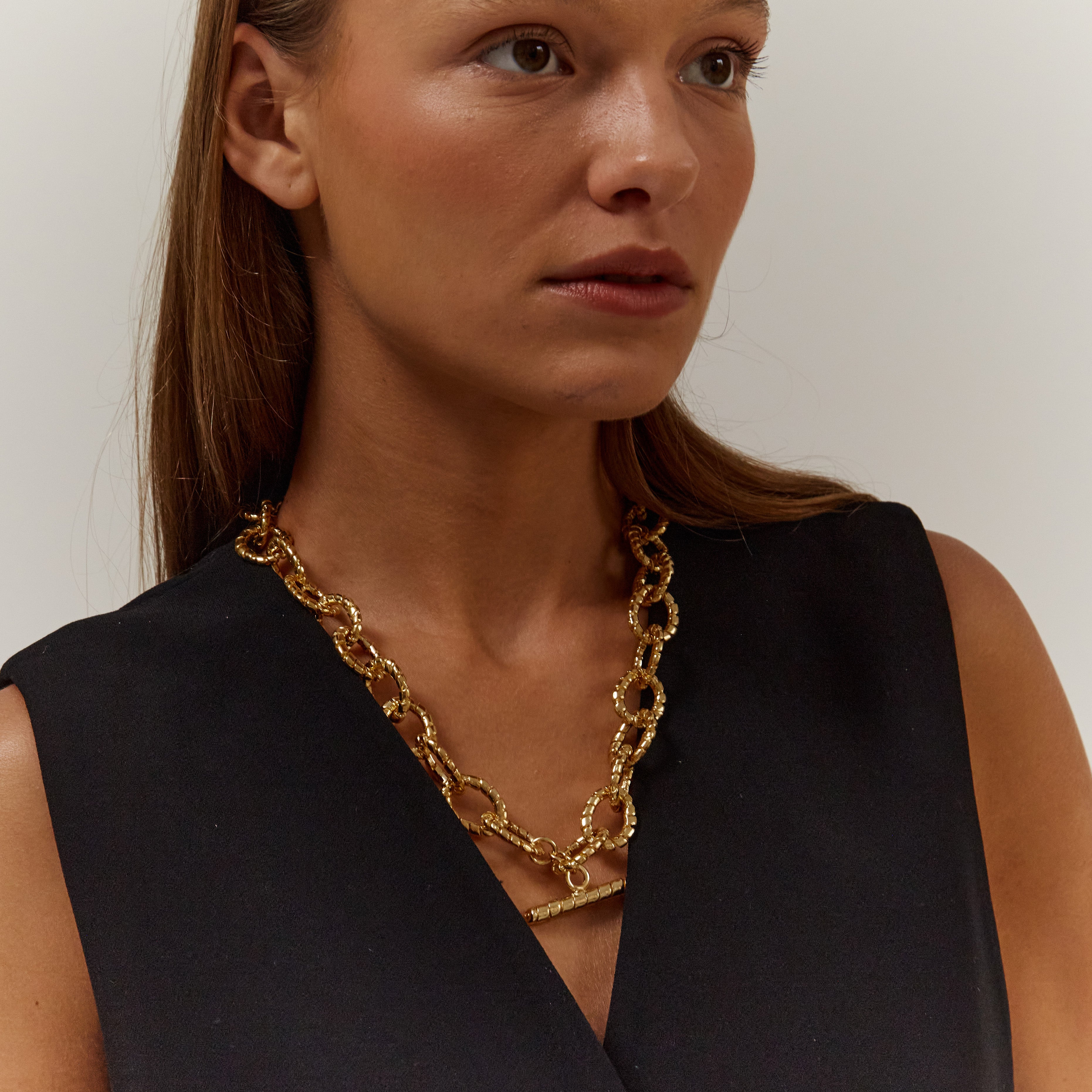 Add a touch of texture to your neckline with this handmade 18kt gold plated pewter metal chain necklace. As versatile as it is stylish, this piece is the perfect accessory for any occasion, whether it's a casual outing with friends or a formal event.