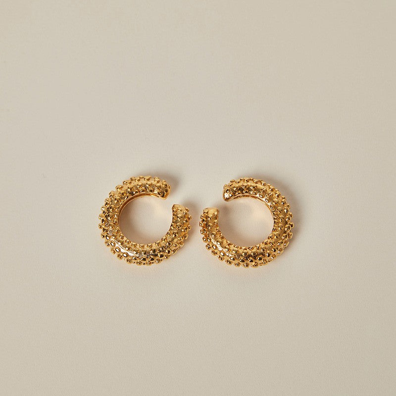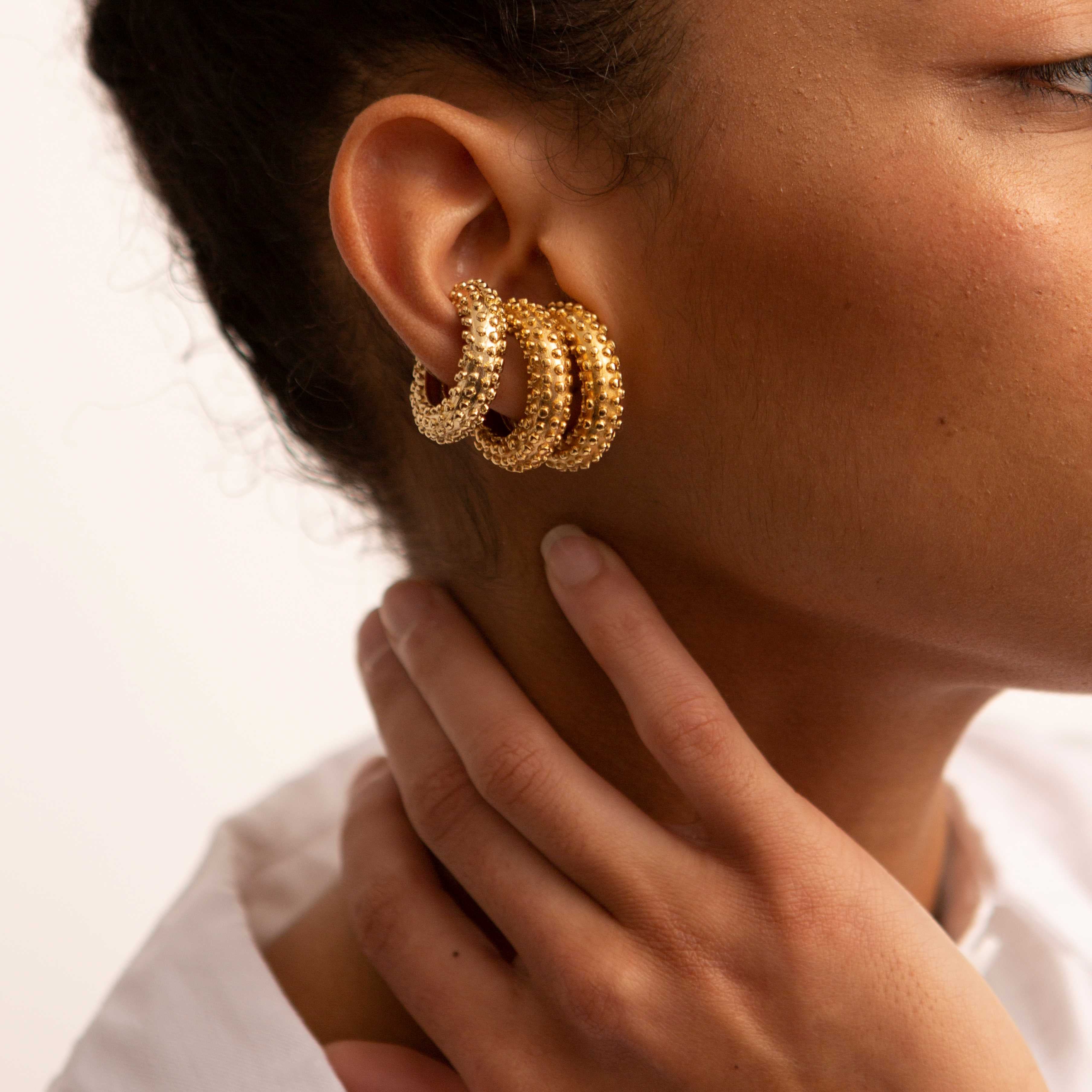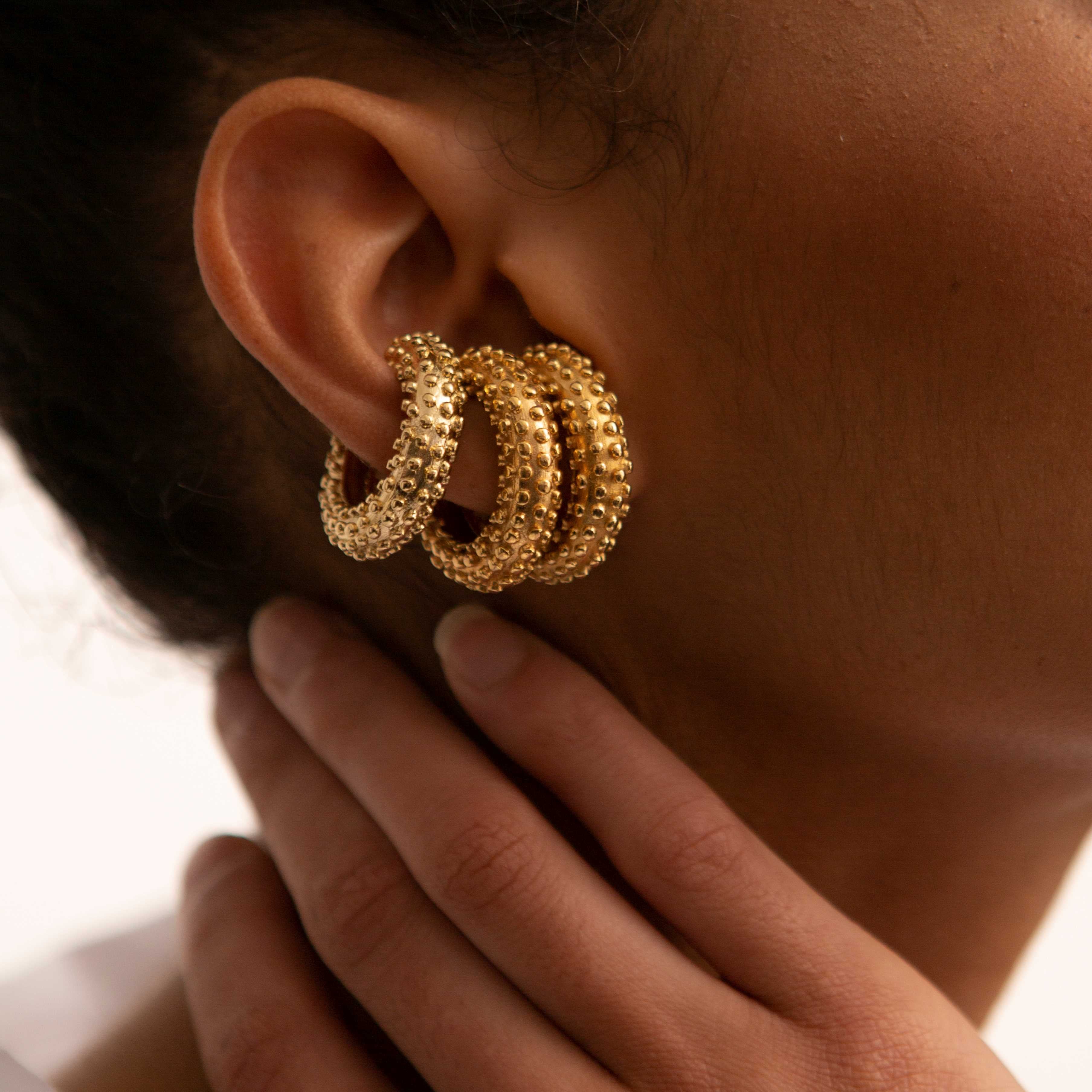 Whether you're attending a glamorous event or simply running errands around town, upgrade your style with these textured earrings, handmade in 18kt gold plated pewter metal.