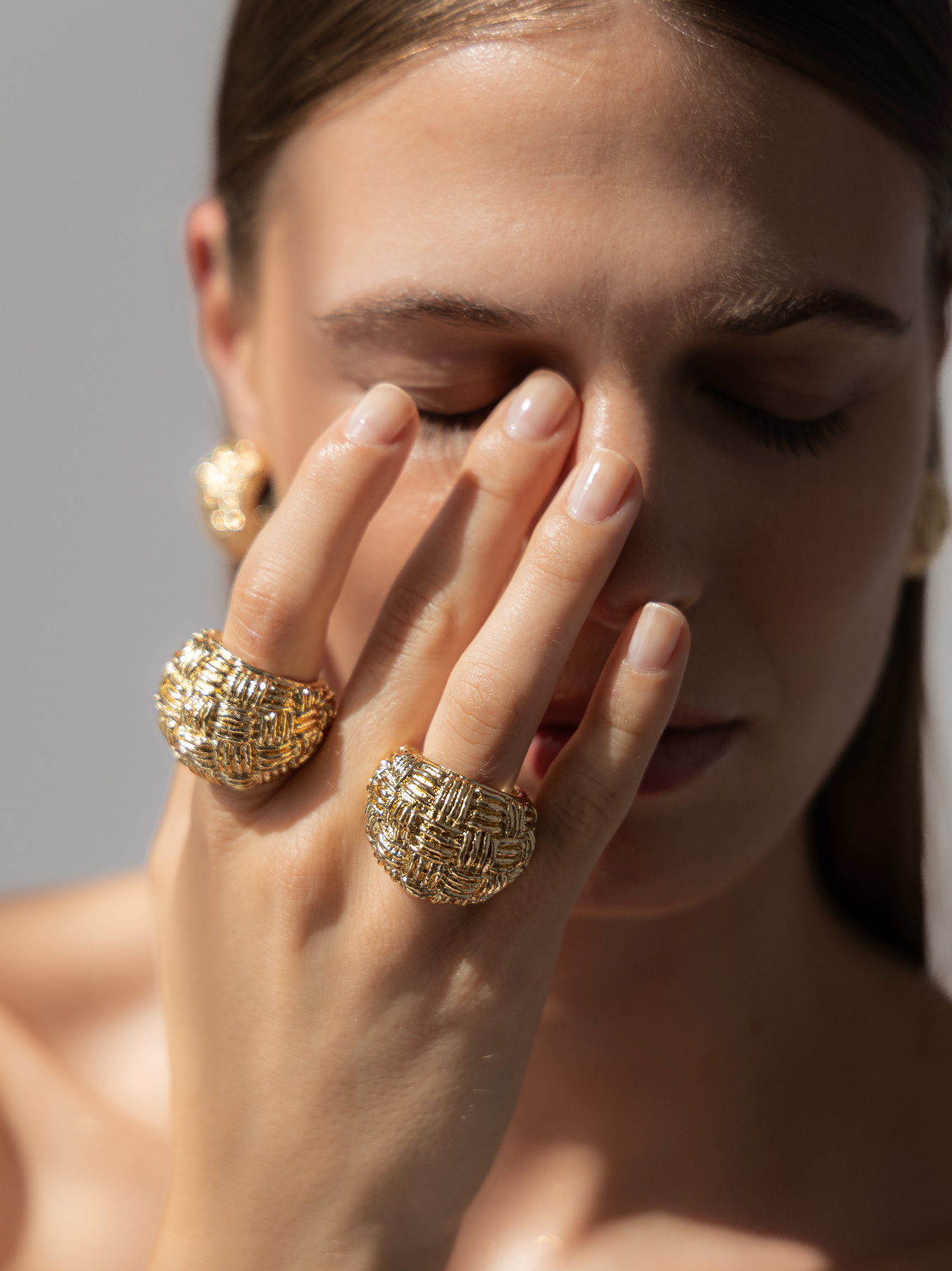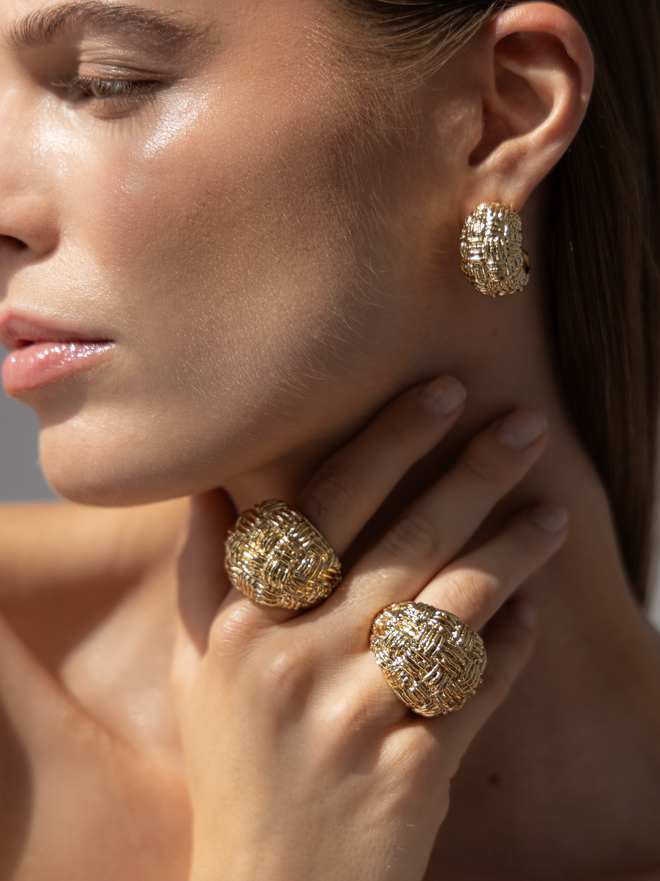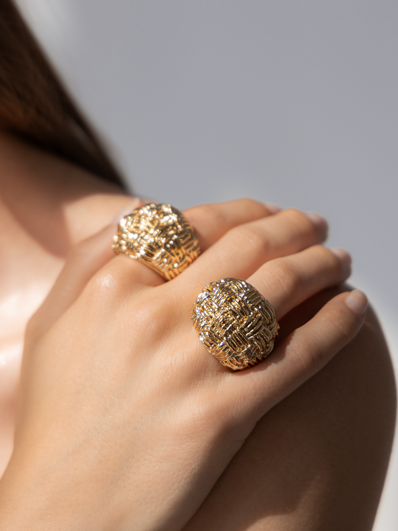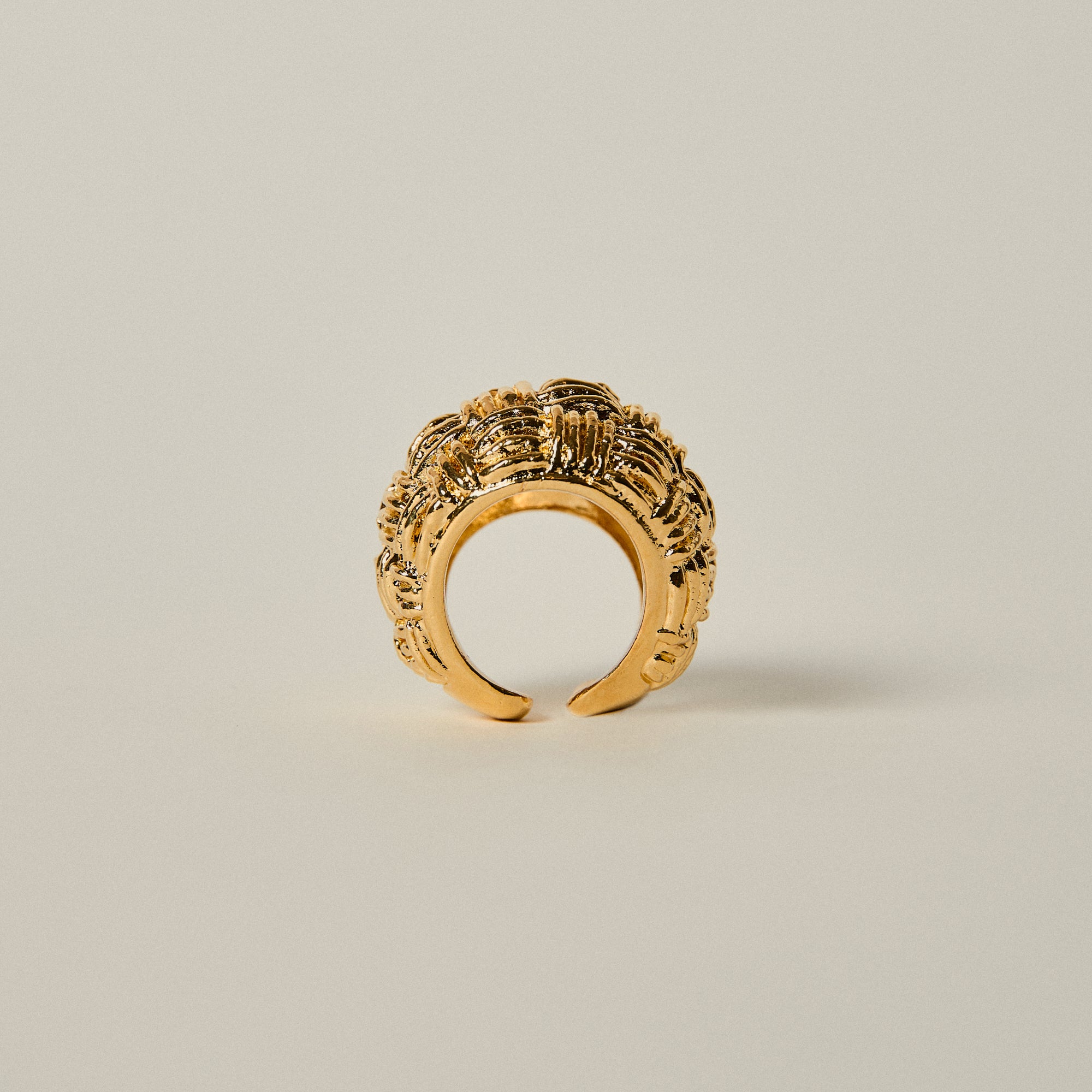 This sculptural dome ring stands out through its intricate woven texture, creating a rich interplay of light and shadow across its surface. Bold yet refined, its rounded volume gives it a strong contemporary presence.