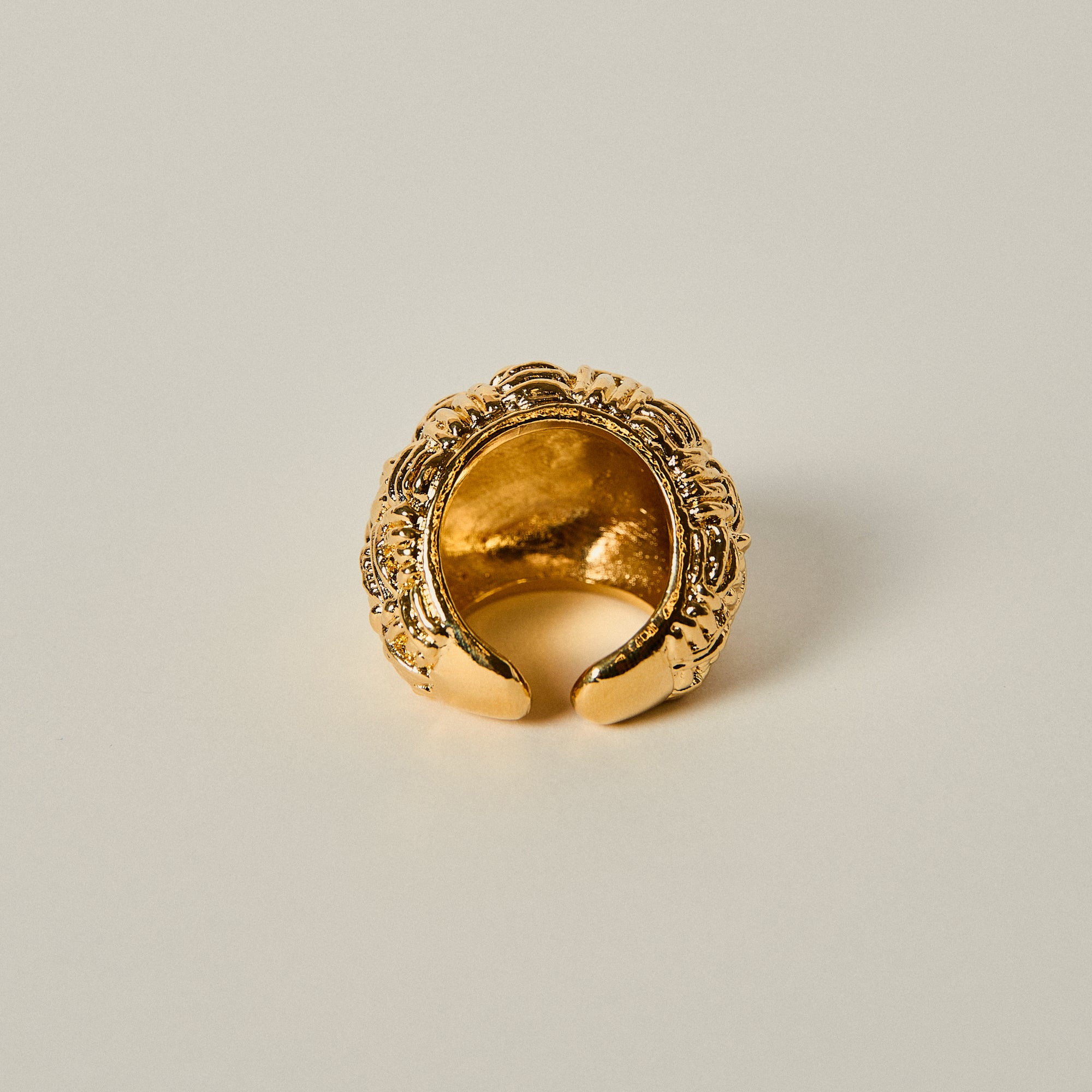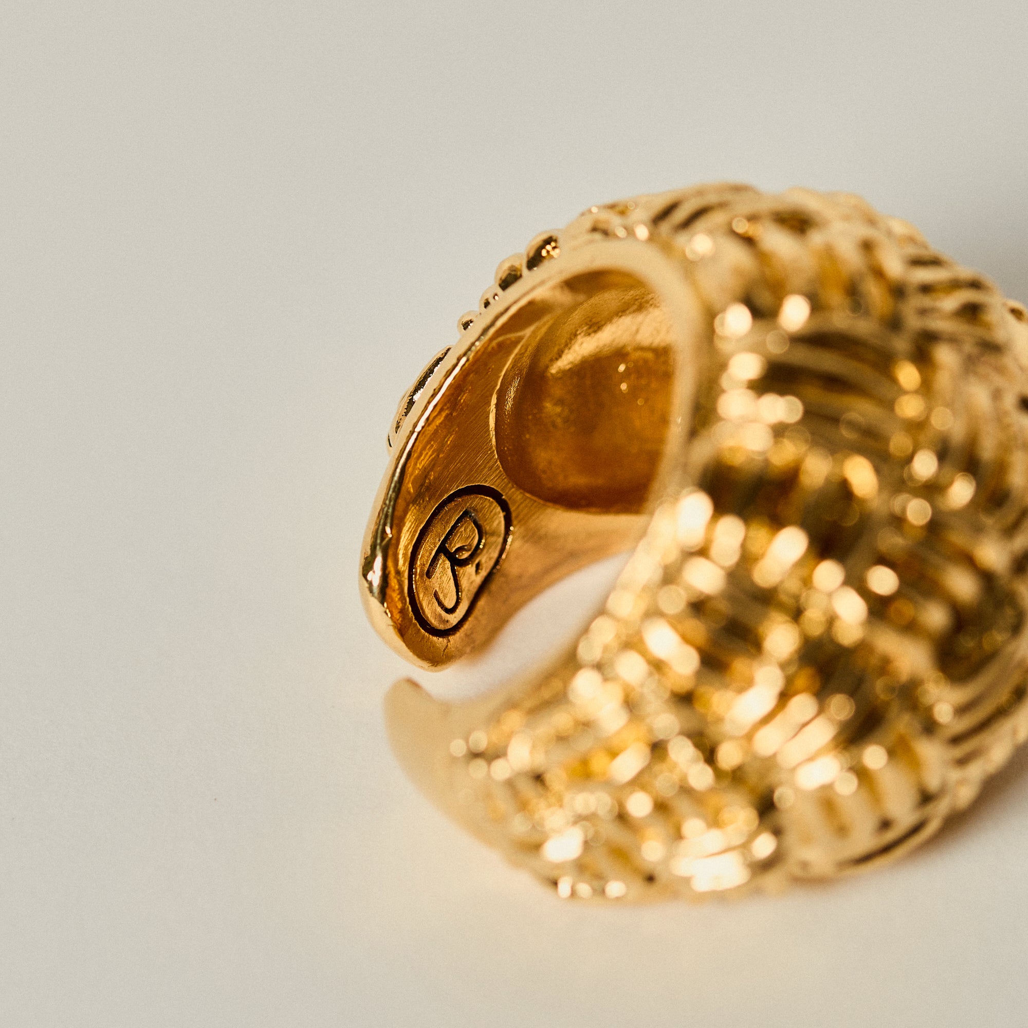 Handcrafted in pewter metal and finished with 18kt gold plating, the Ilsa Ring reflects the brand’s signature sculptural aesthetic and artisanal character. Designed to be worn as a statement piece, it brings depth and sophistication to any look.
