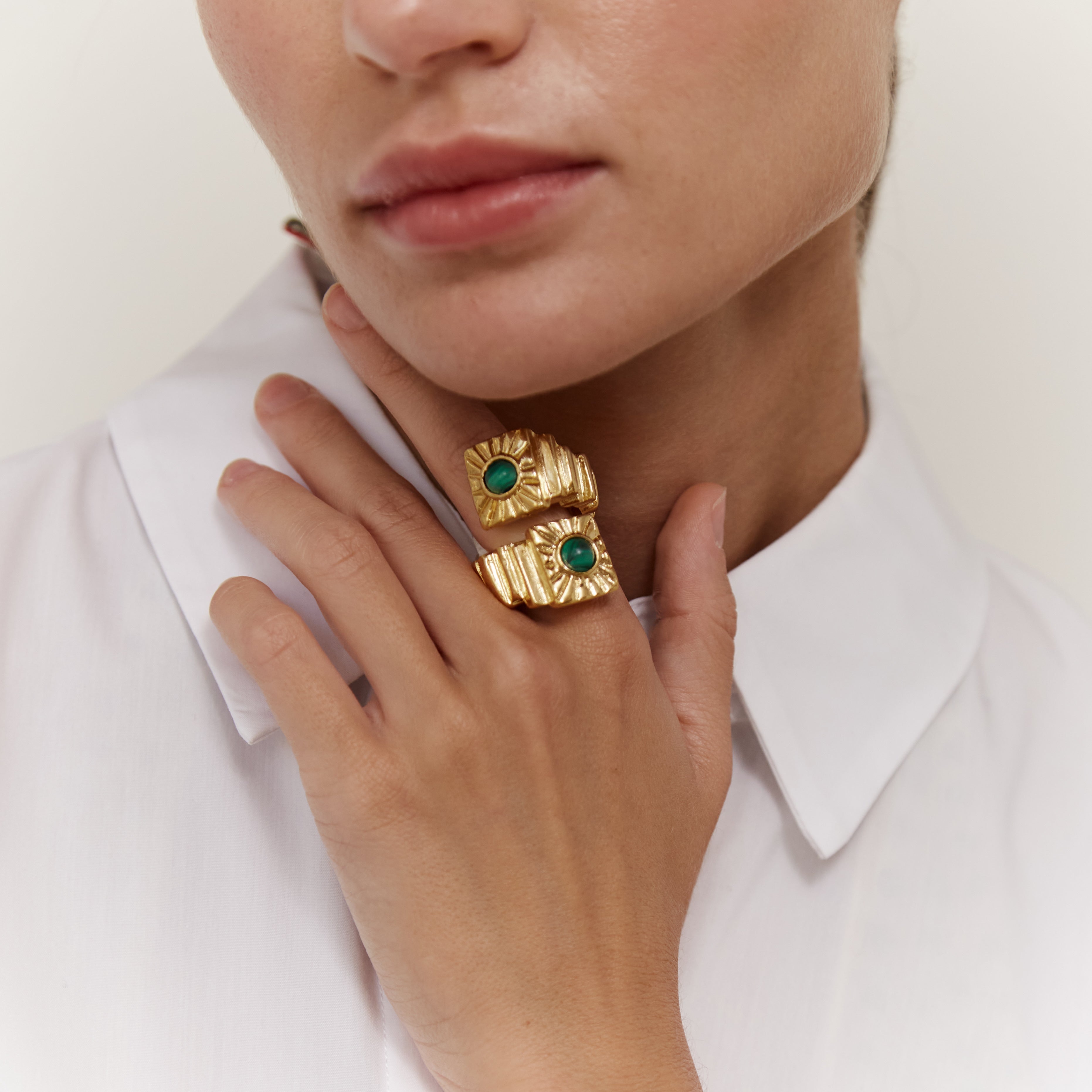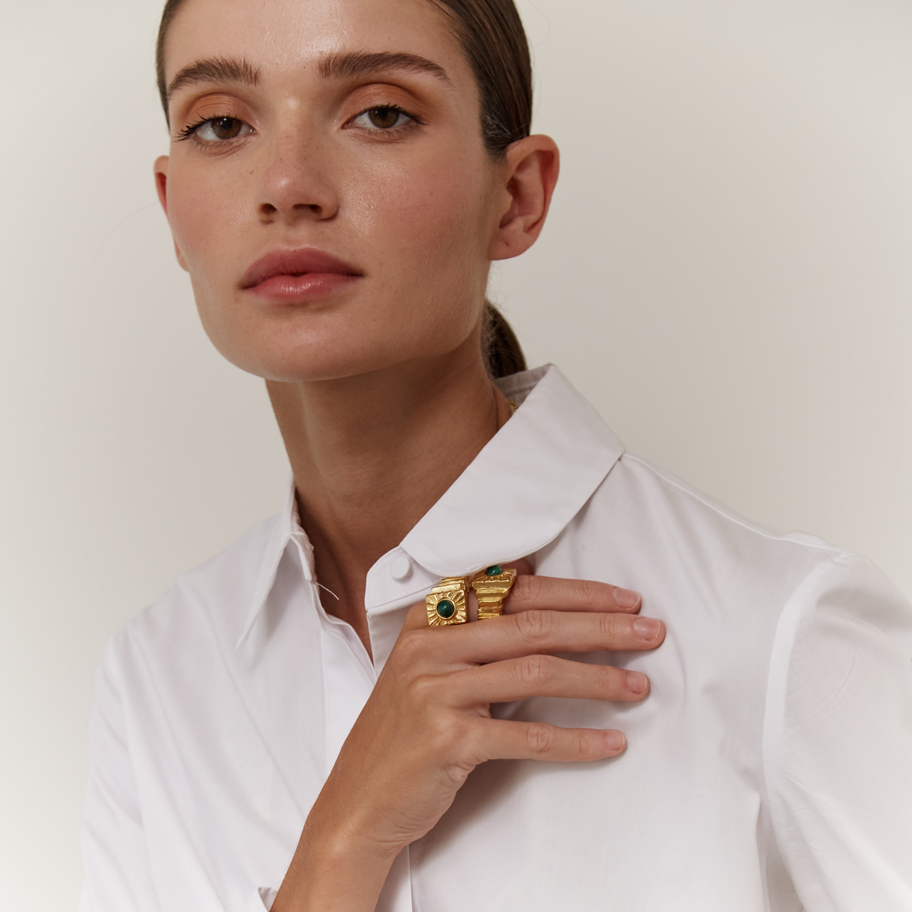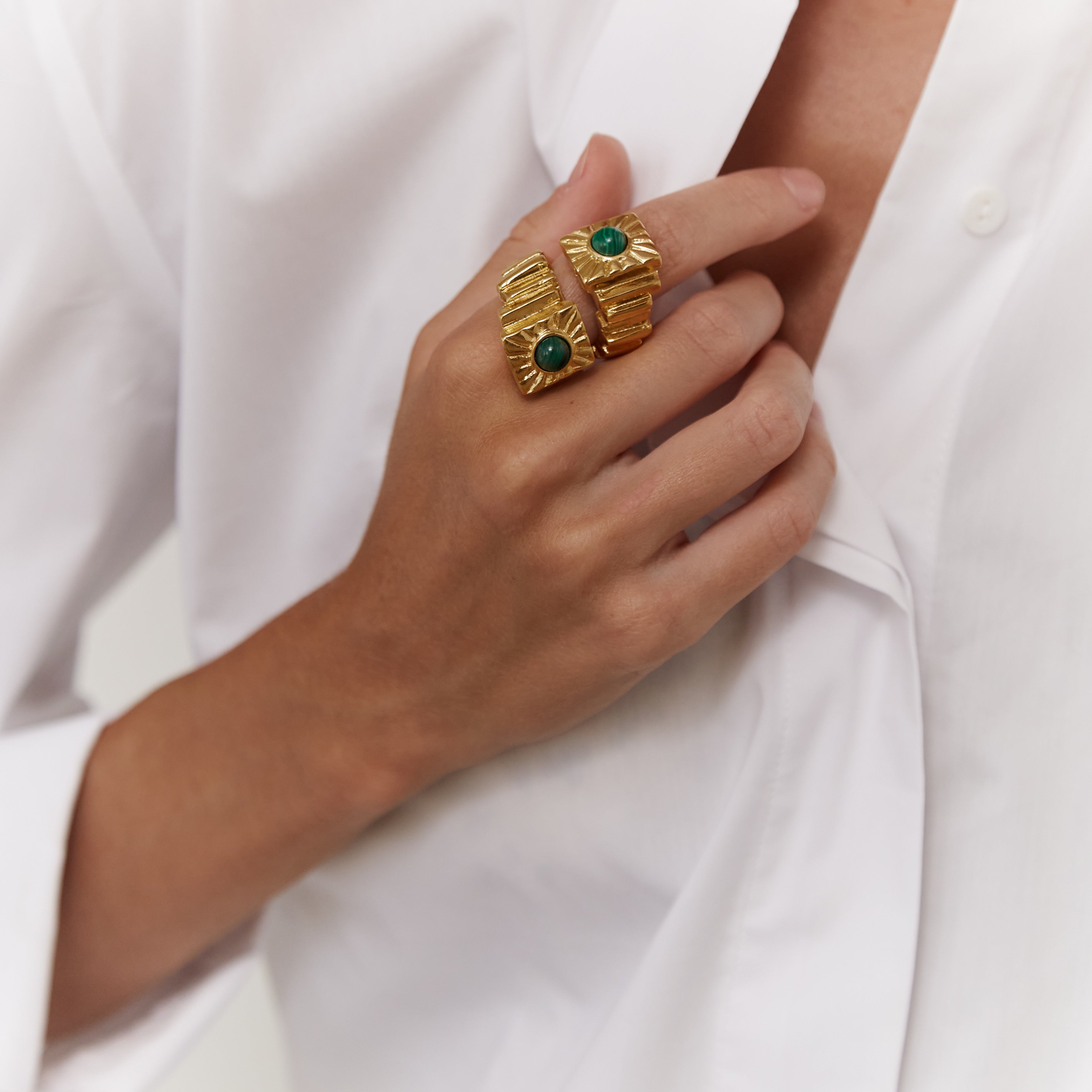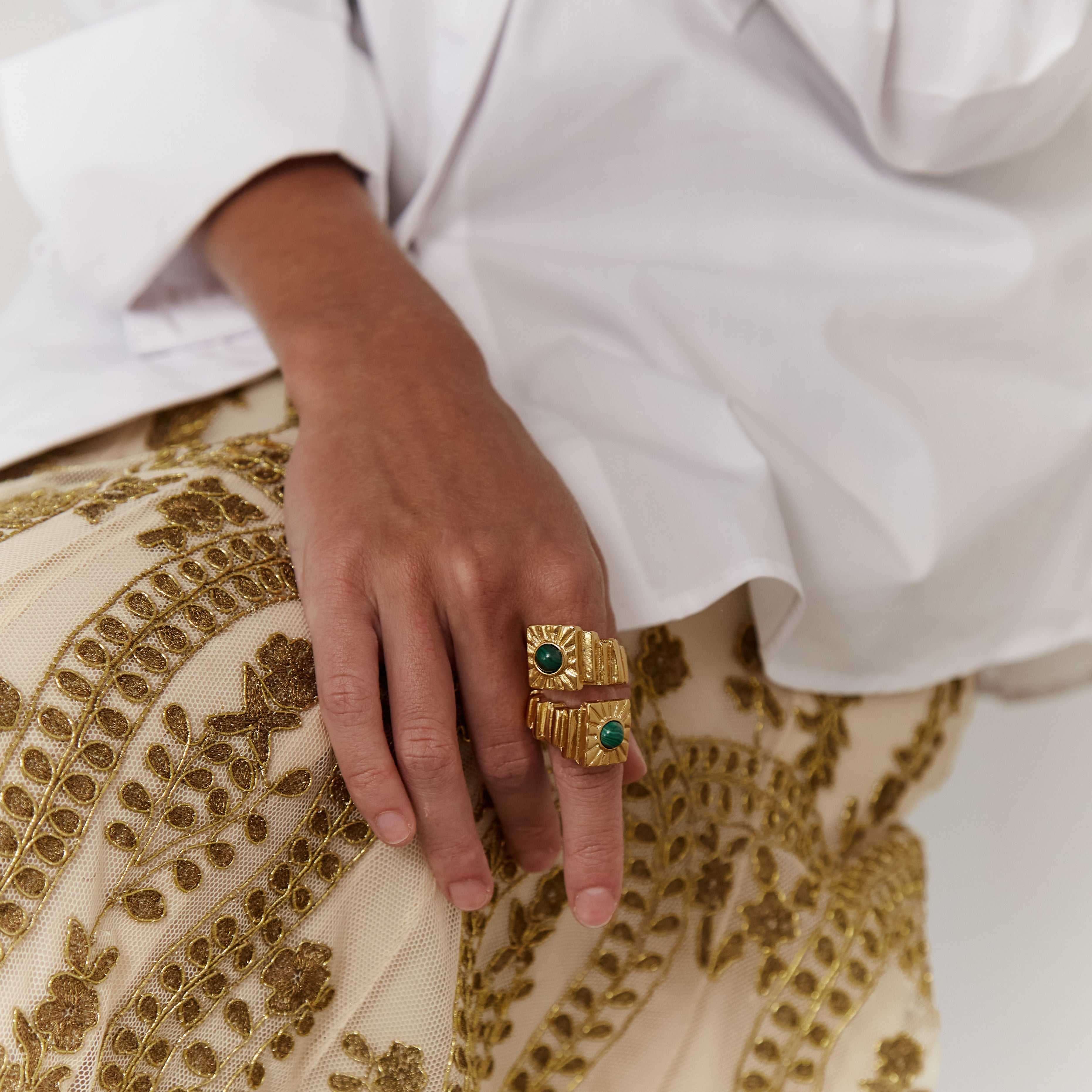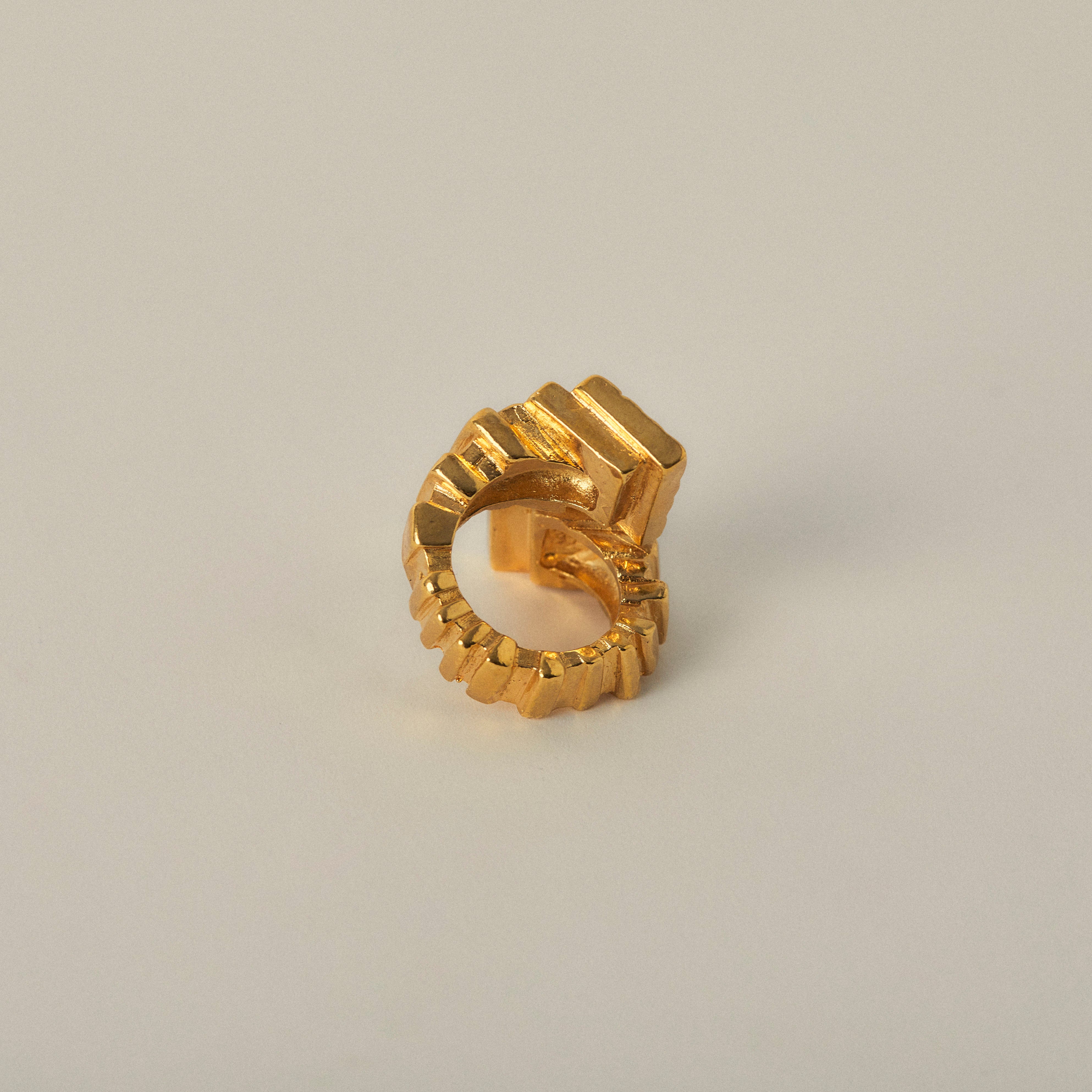 Upraise your style with this chic handmade 18kt gold plated pewter metal ring. From daytime meetings to evening cocktails, this ring adds a touch of understated glamour to any occasion, allowing you to express your personal style with effortless sophistication.