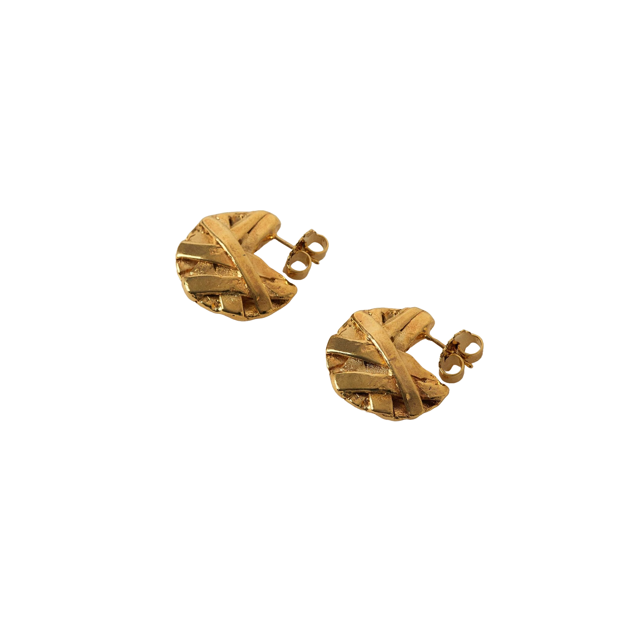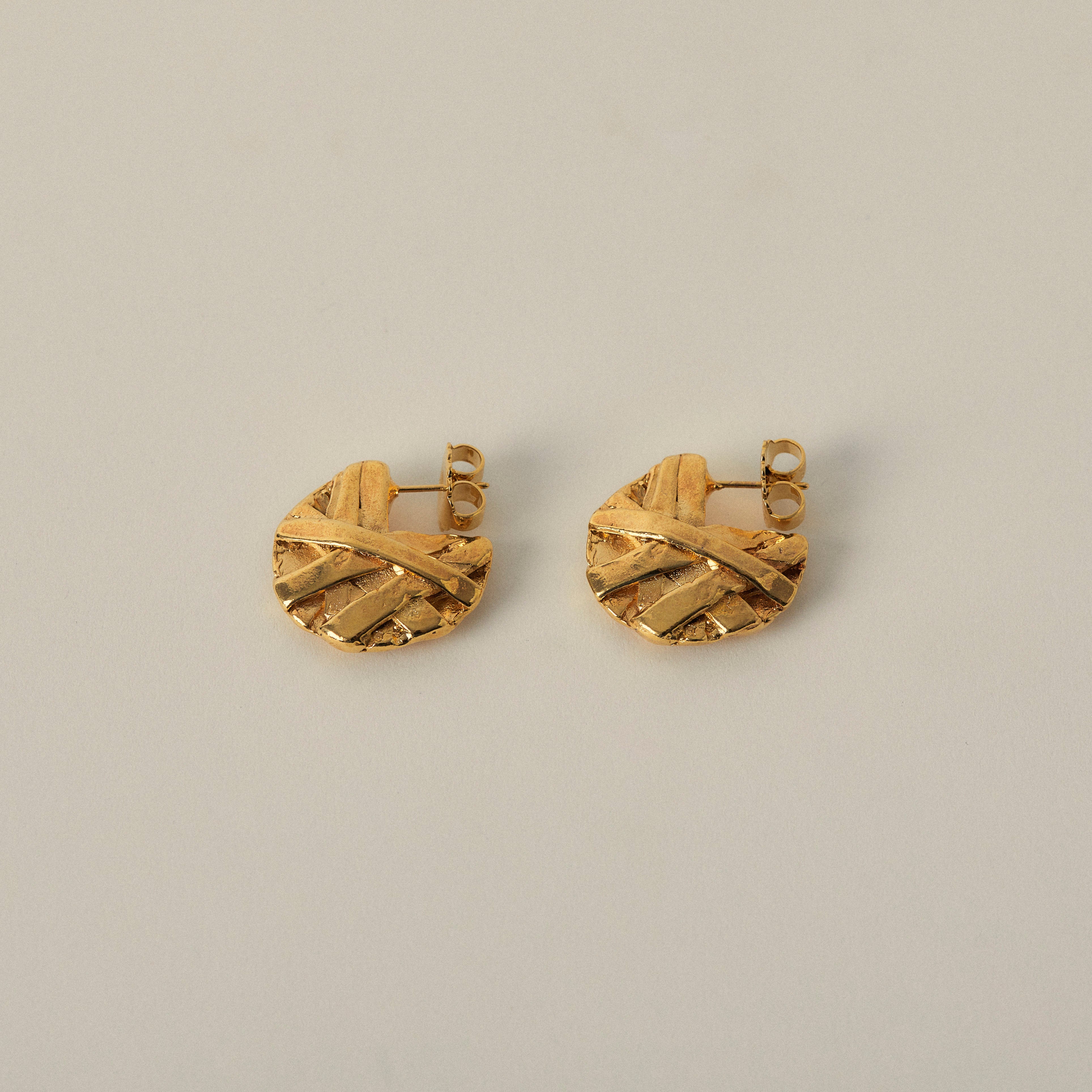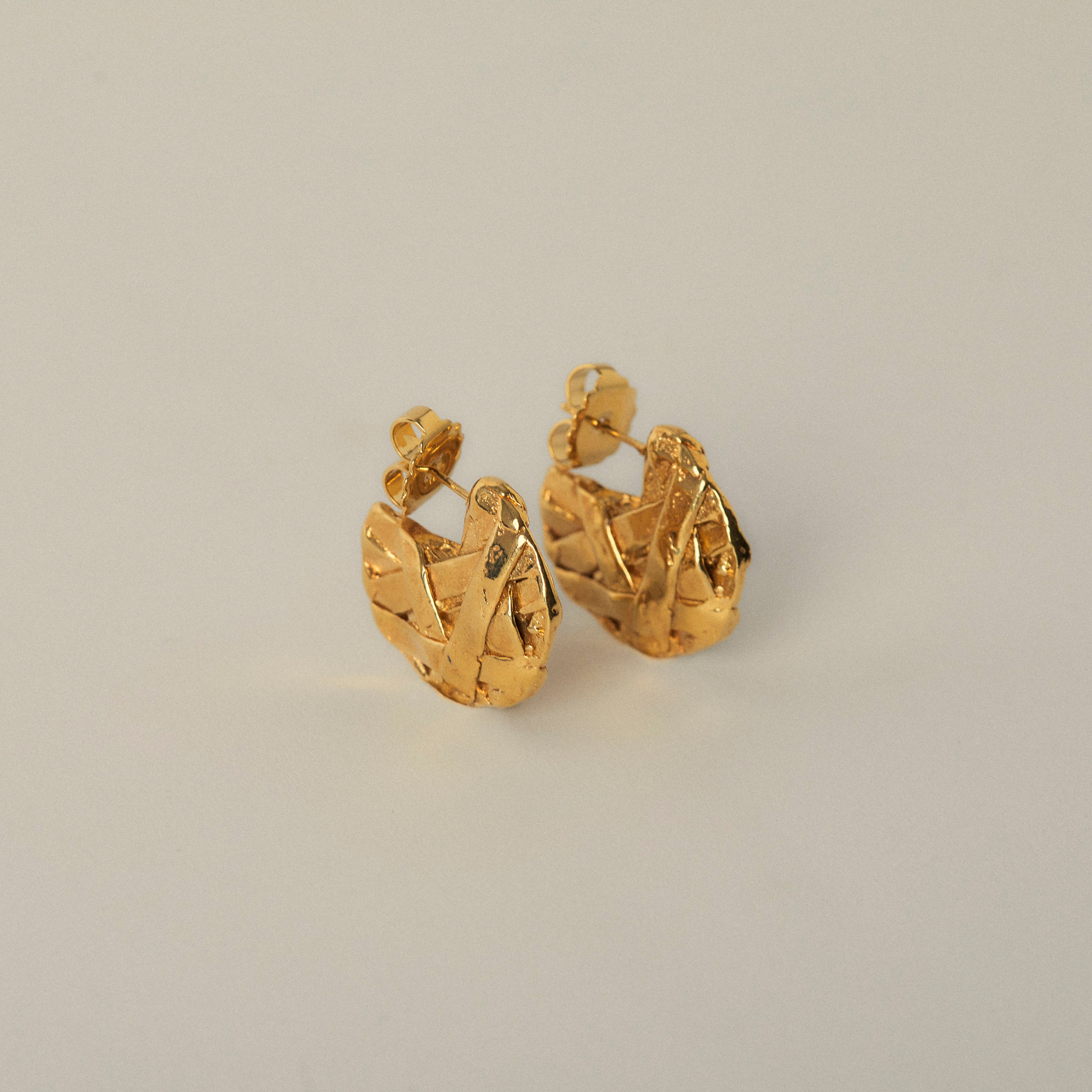 Elevate your ensemble with these exquisite handmade 18kt gold plated pewter metal textured hoops. From boardroom meetings to evening soirées, these hoops effortlessly transition from day to night, adding a touch of understated luxury and elegance to any outfit, ensuring you stand out with confidence and poise.