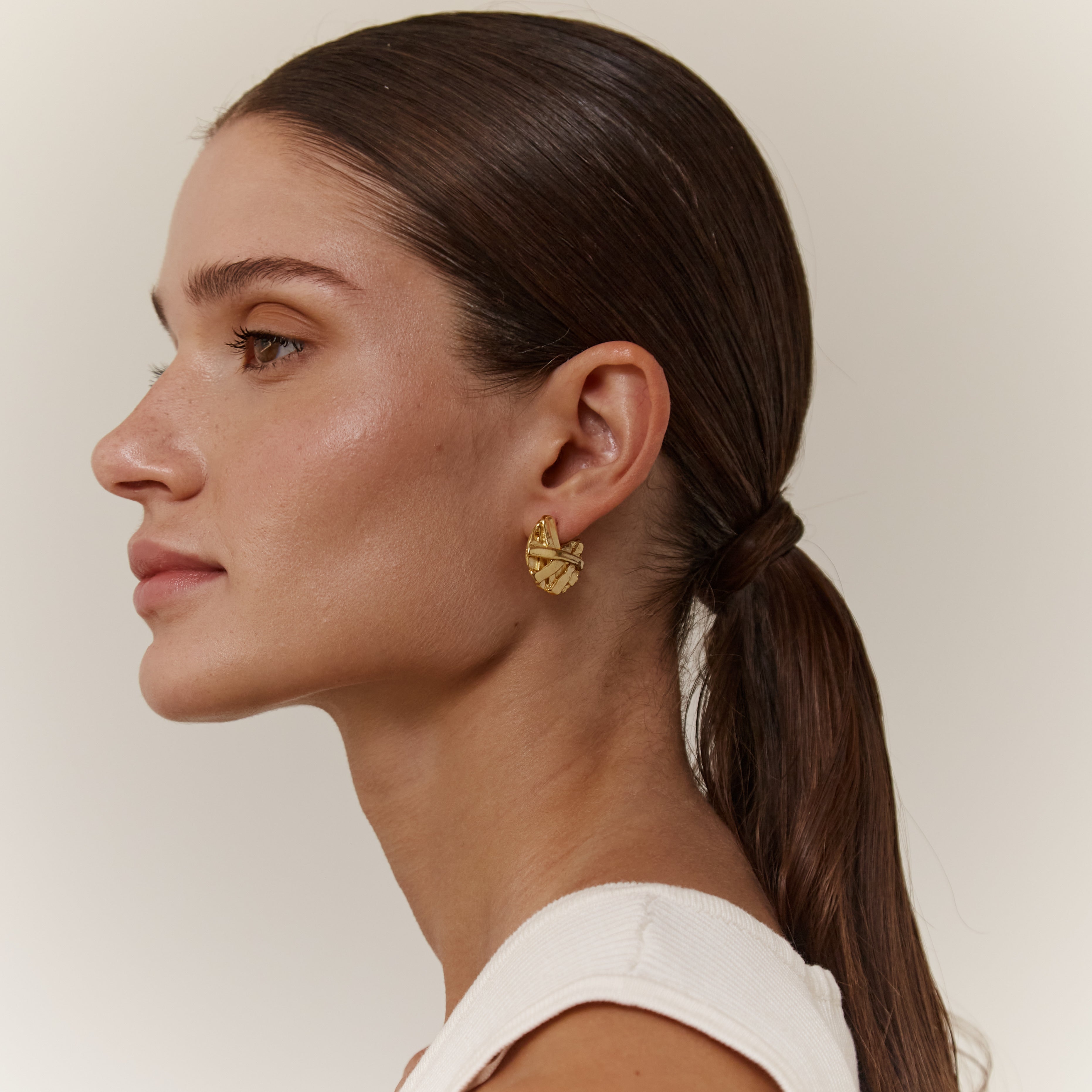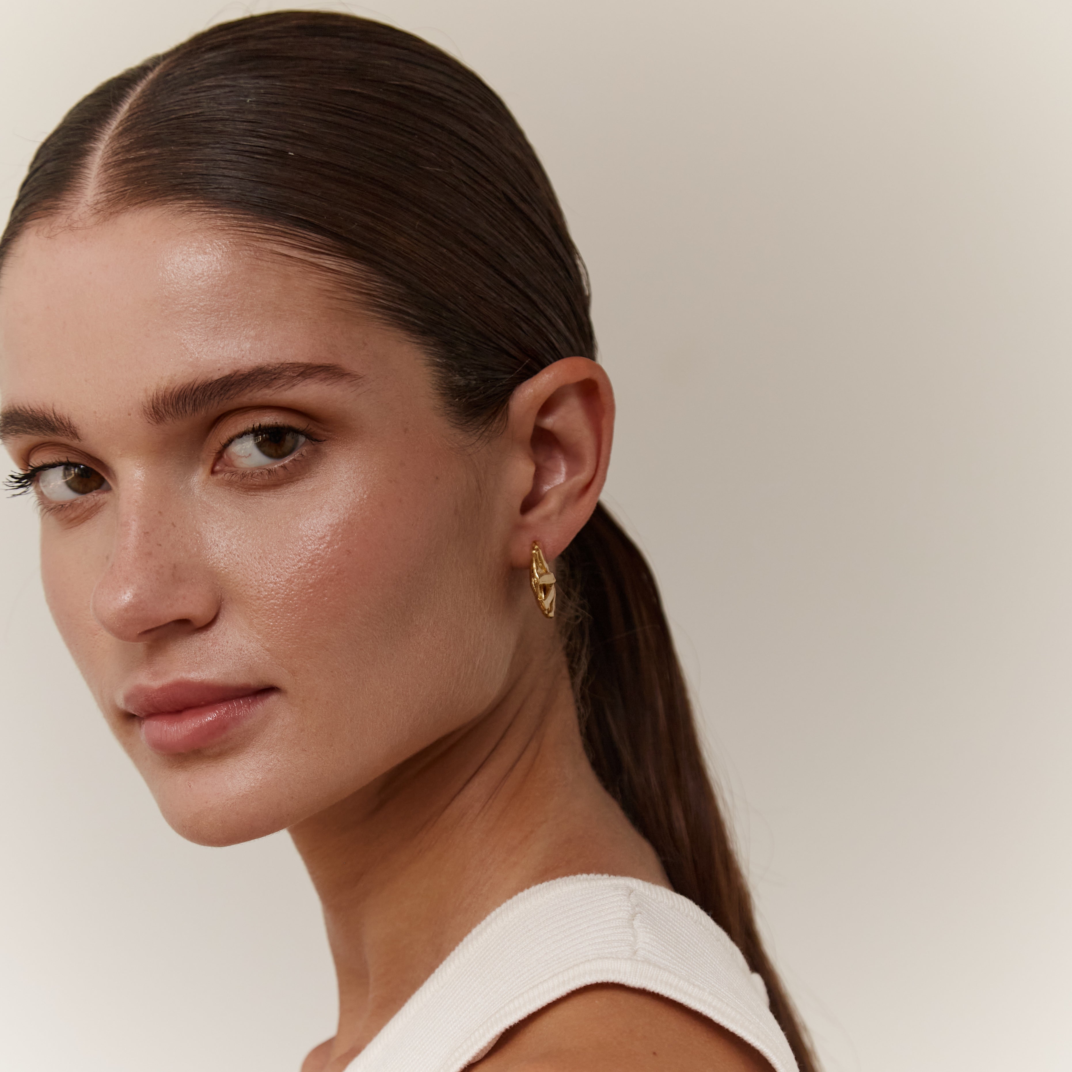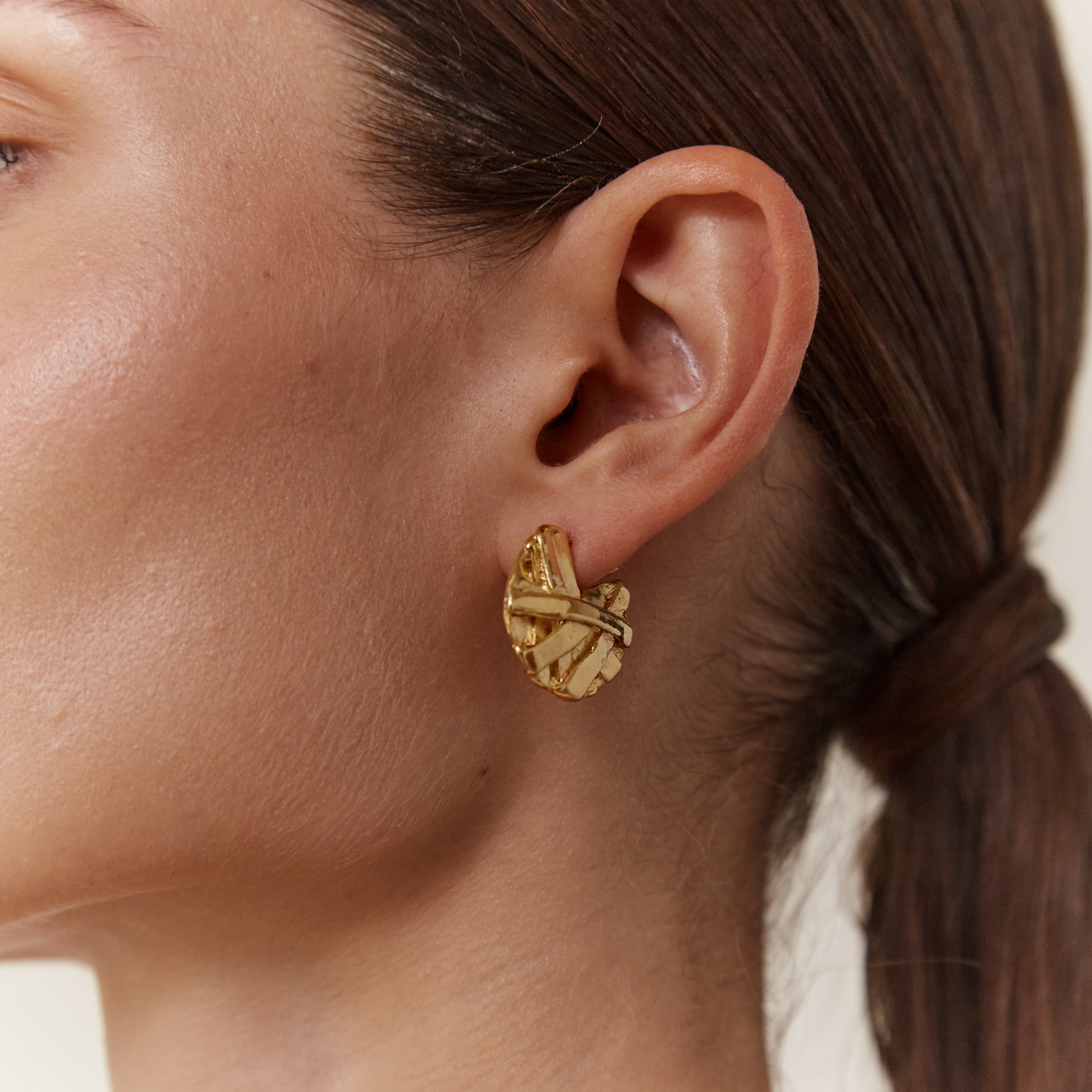 Elevate your ensemble with these exquisite handmade 18kt gold plated pewter metal textured hoops. From boardroom meetings to evening soirées, these hoops effortlessly transition from day to night, adding a touch of understated luxury and elegance to any outfit, ensuring you stand out with confidence and poise.