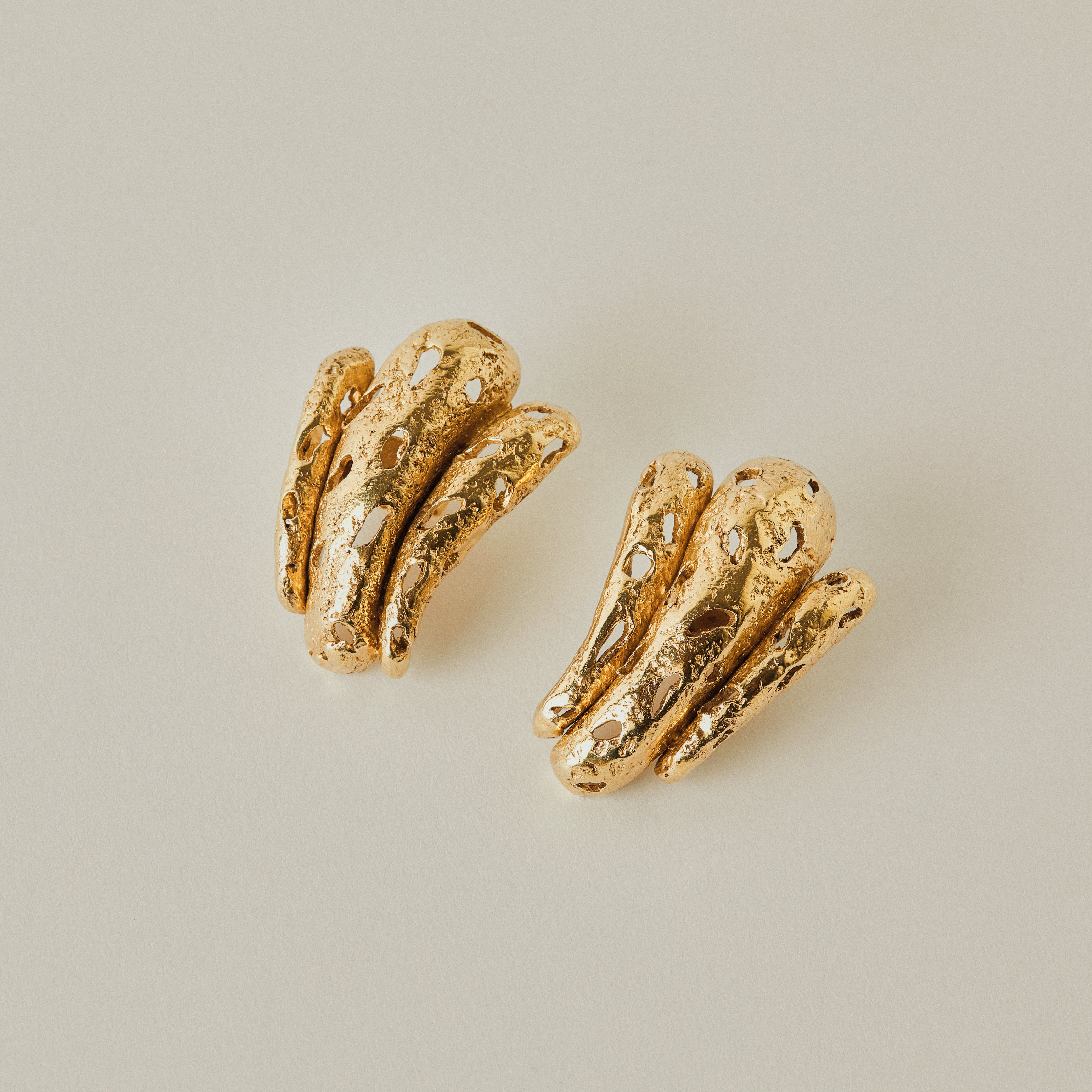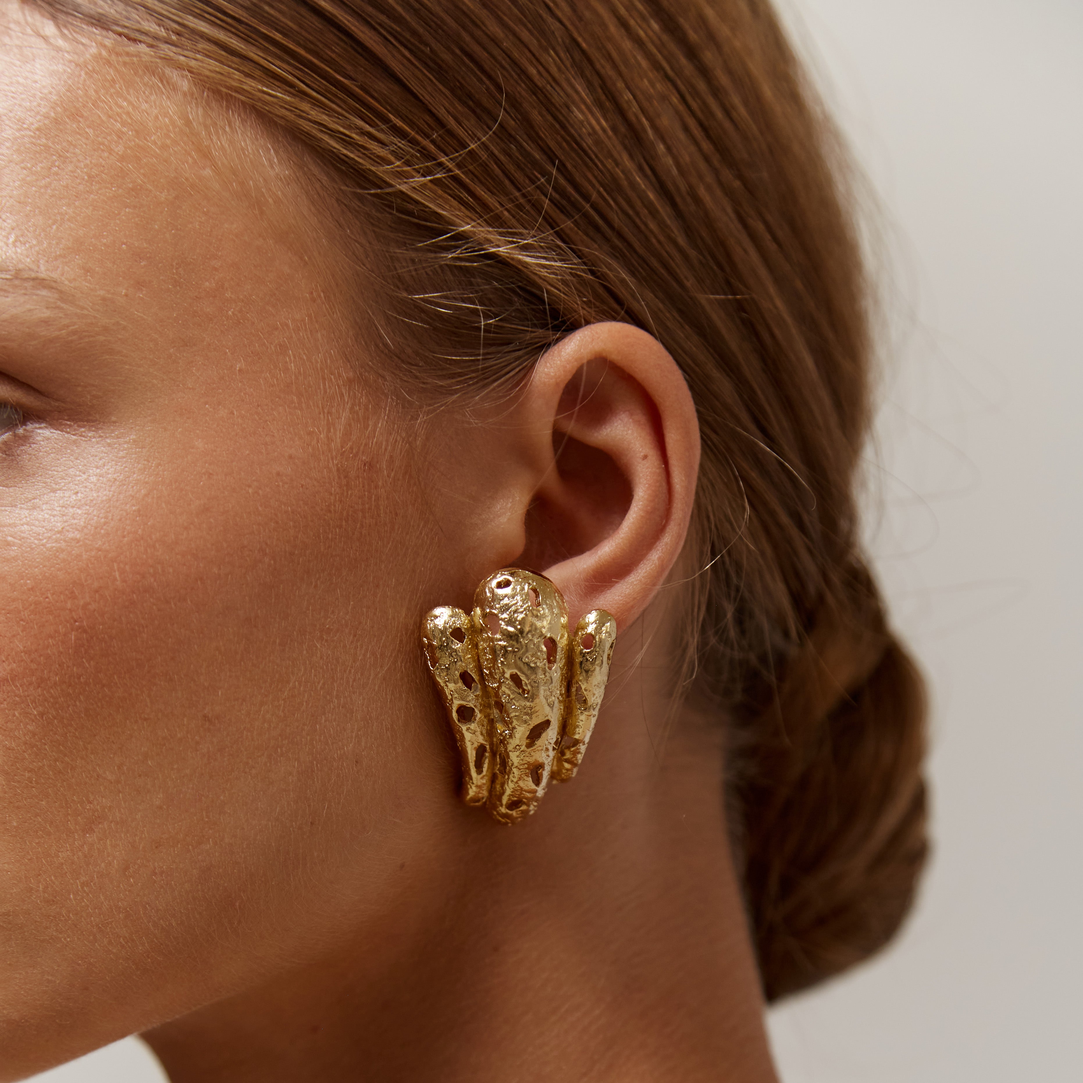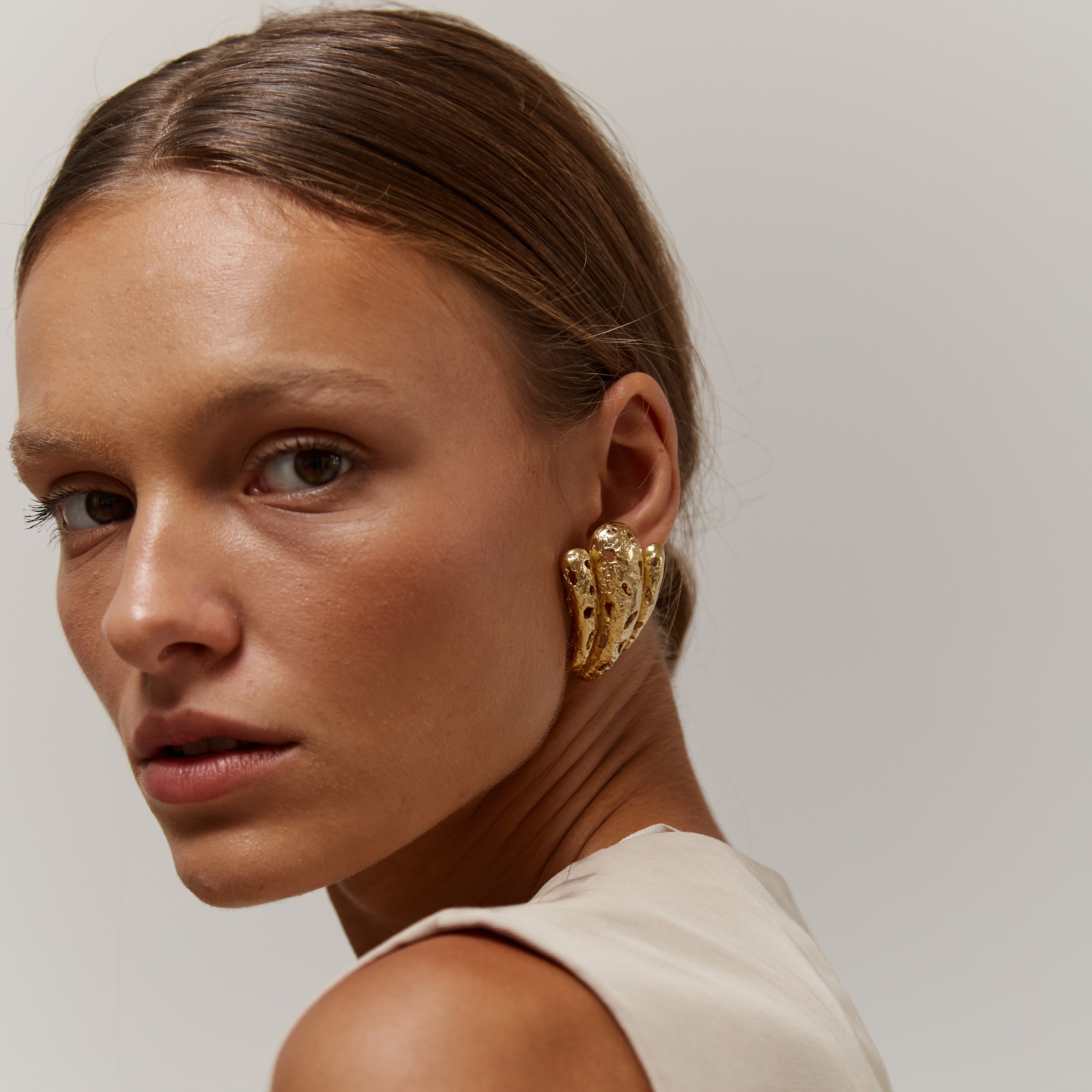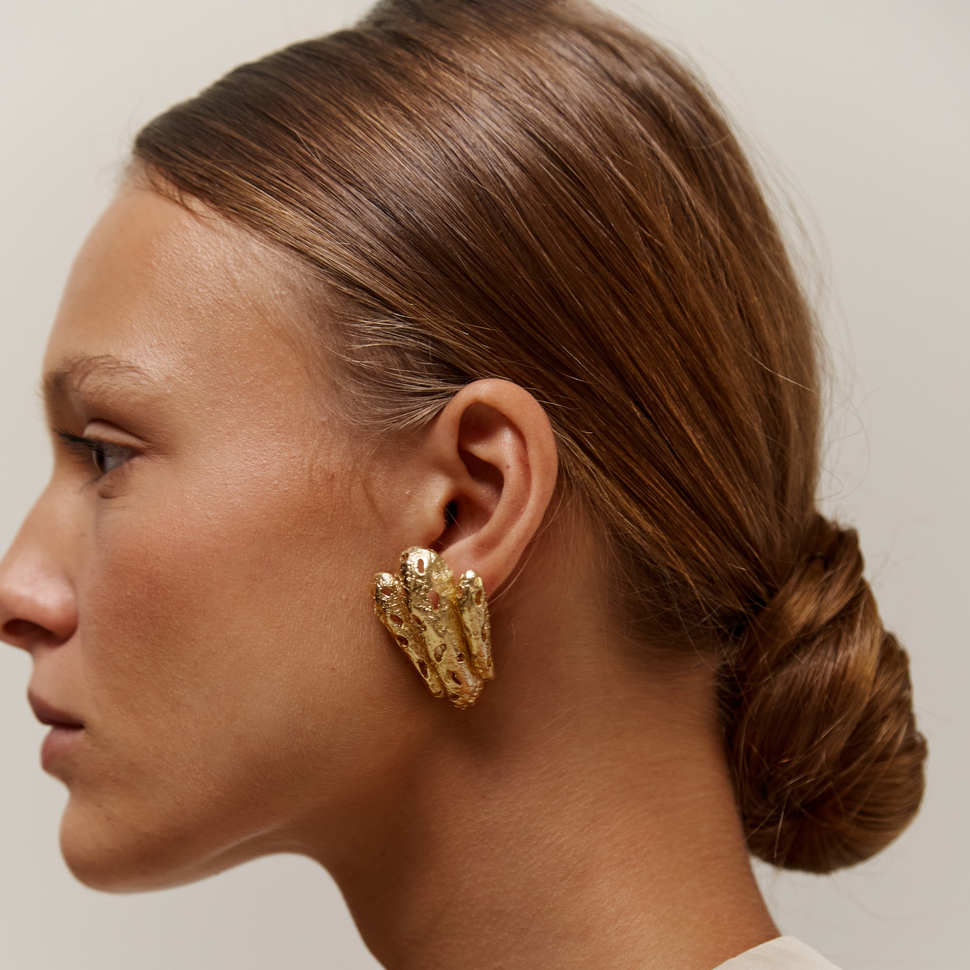 Increase your ensemble with these texture handmade earrings, crafted in 18kt gold plated pewter metal. Elevate your look with these exquisite earrings, designed to add a touch of luxury and elegance to any outfit, from formal occasions to everyday wear, inspiring confidence and style.