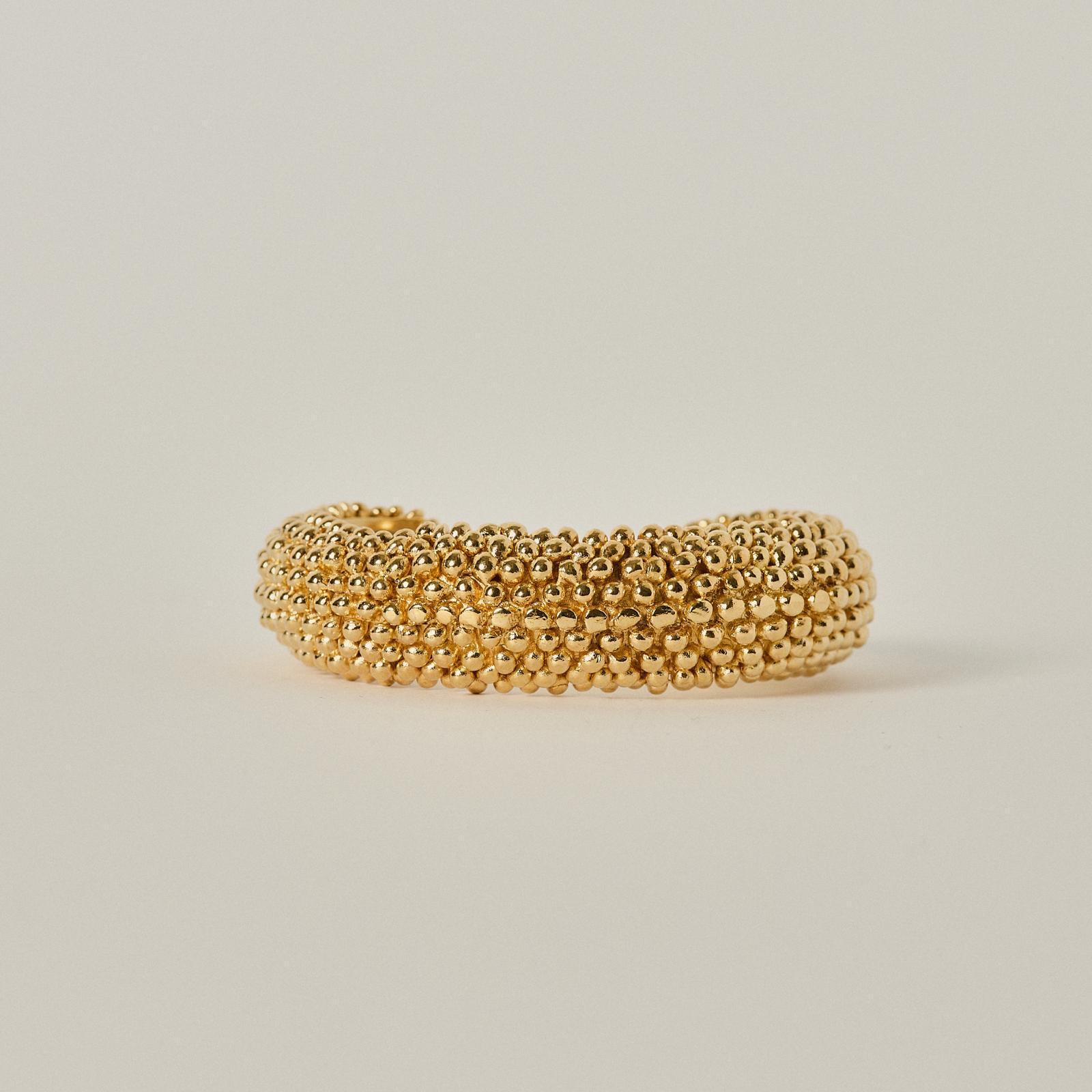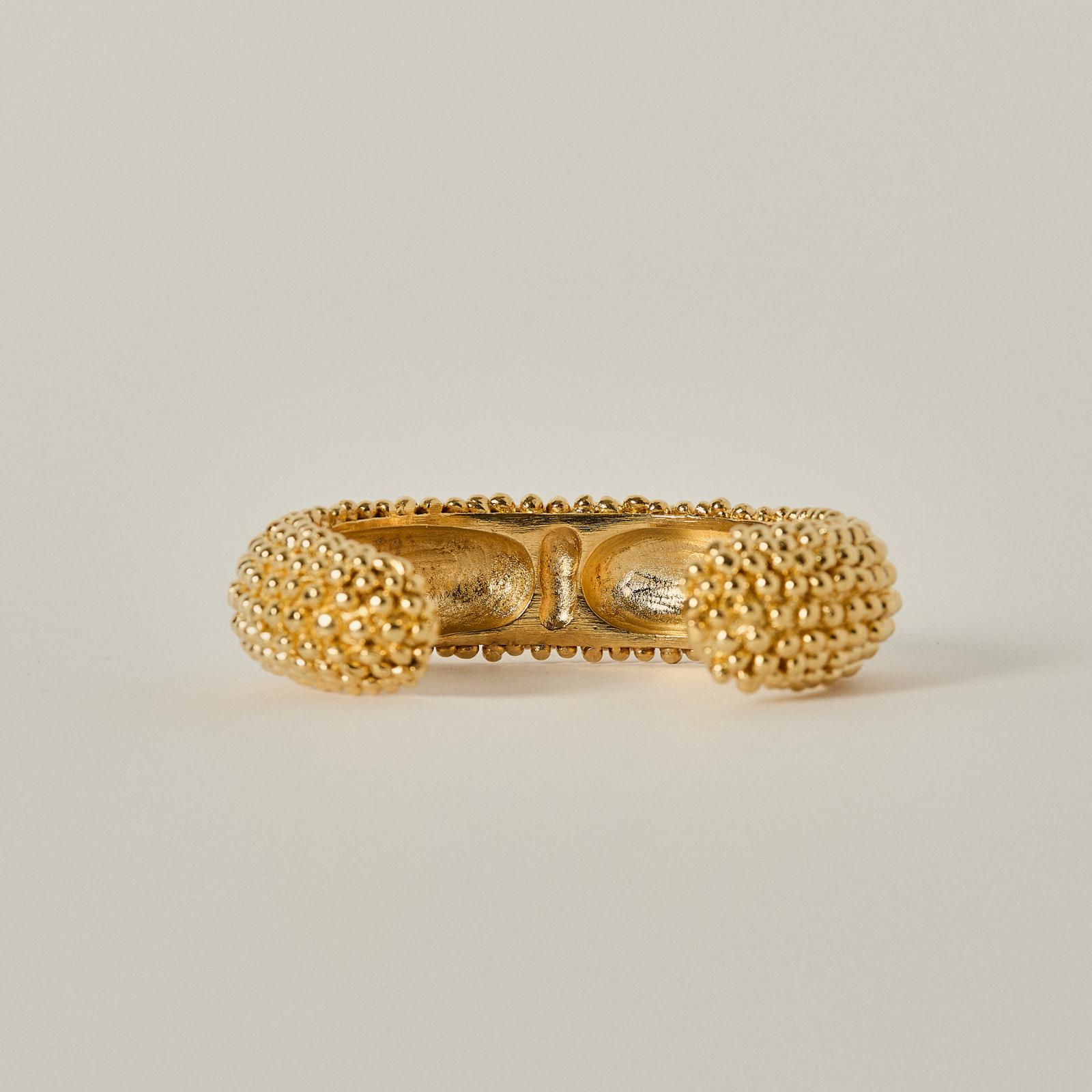 This exuberant bracelet, meticulously handcrafted in 18kt gold plated pewter metal. Infused with energy and vitality, this bracelet embodies the spirit of adventure and individuality, inspiring you to embrace life's possibilities with courage and enthusiasm, while exuding confidence and charm wherever you go.
