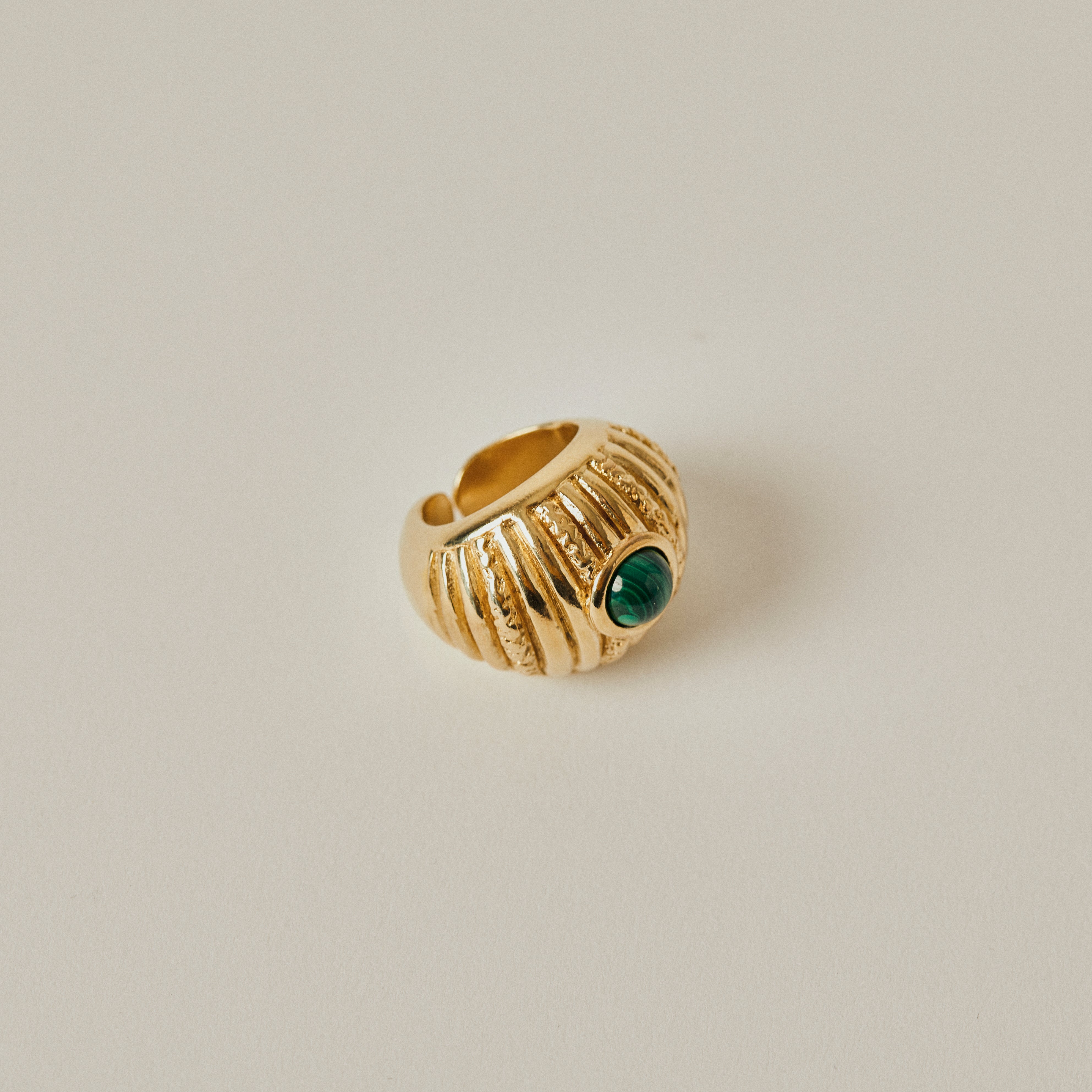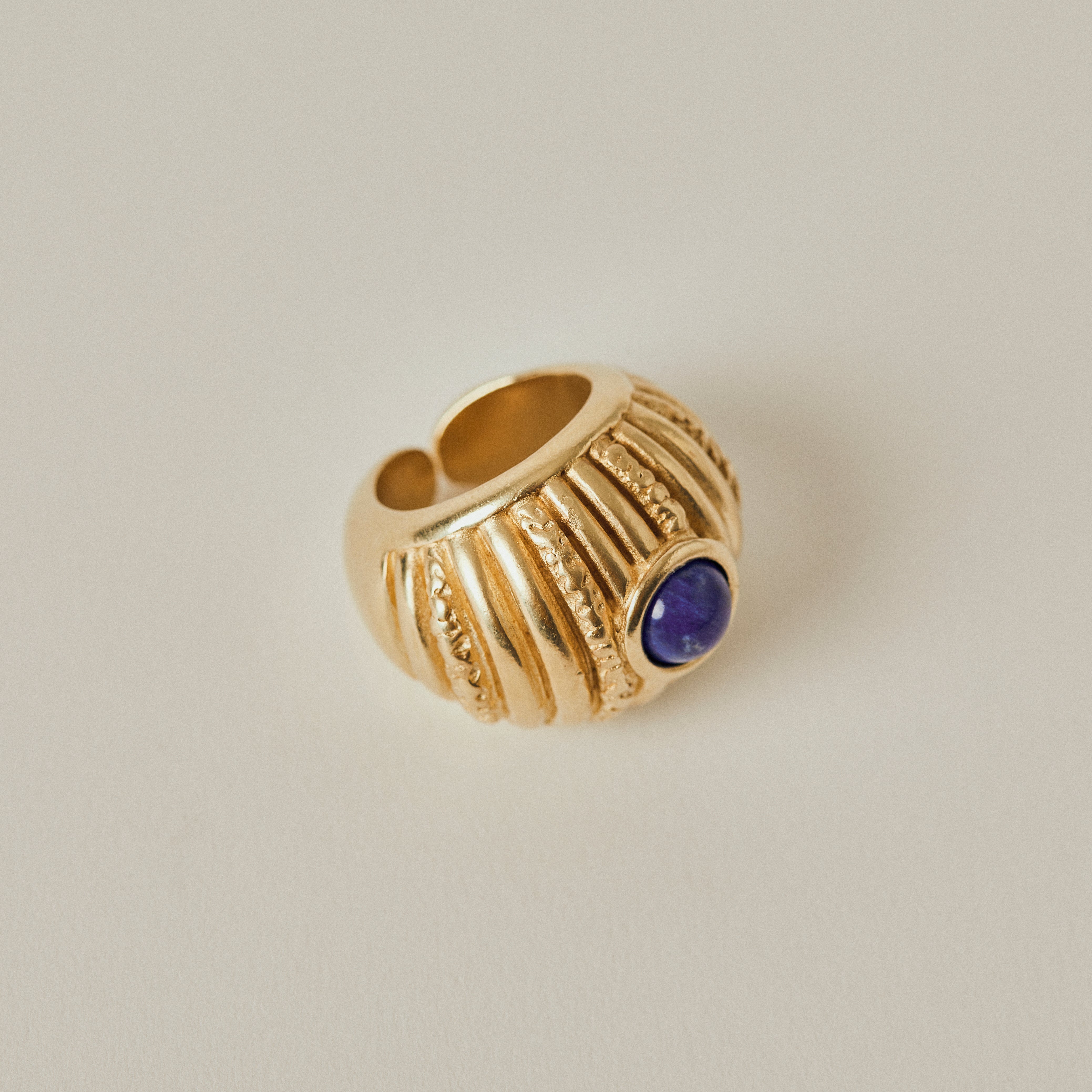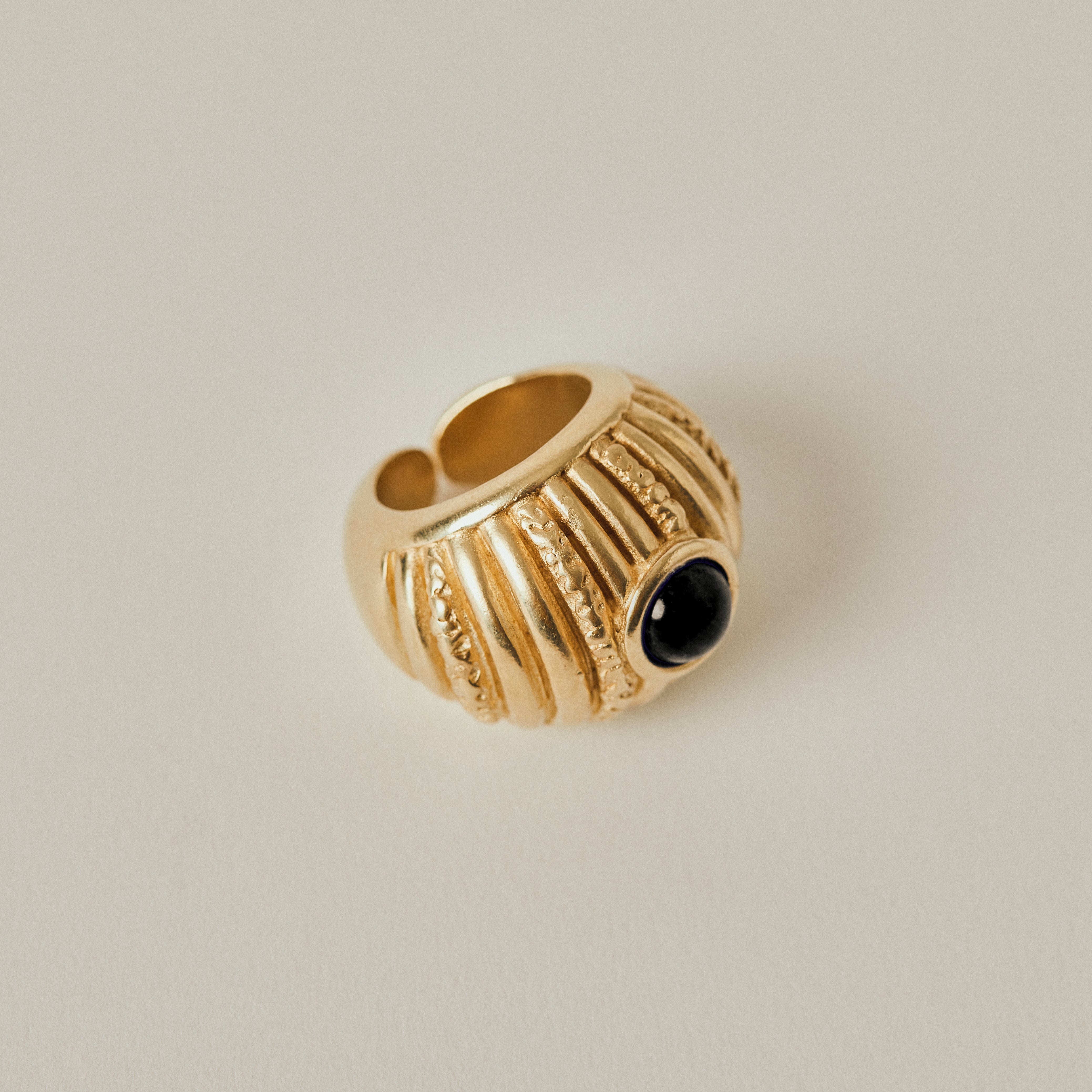 Elevate your look with this exquisite handmade ring adorned with semi-precious stones, crafted in 18kt gold plated pewter metal. Let this ring be a reflection of your unique personality and style, adding a touch of luxury and sophistication to any outfit, while showcasing your appreciation for fine craftsmanship and timeless beauty.