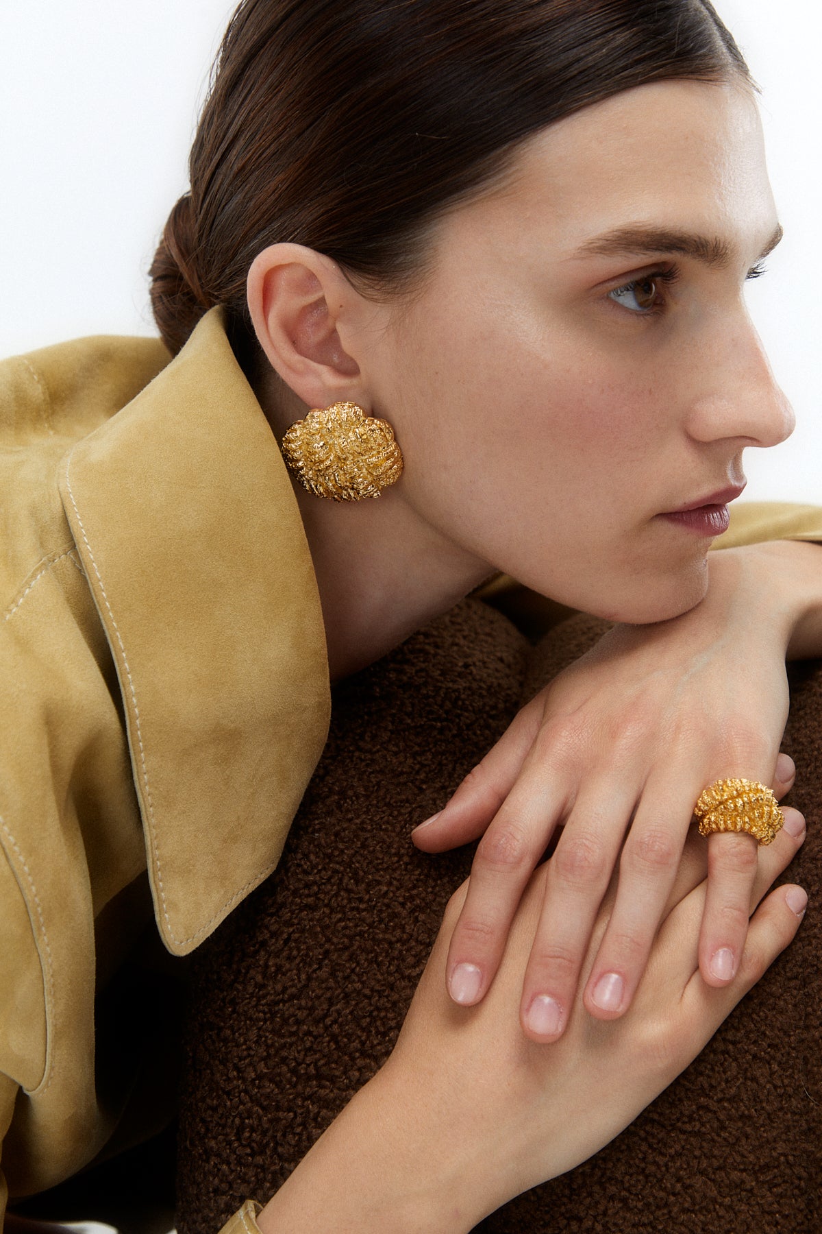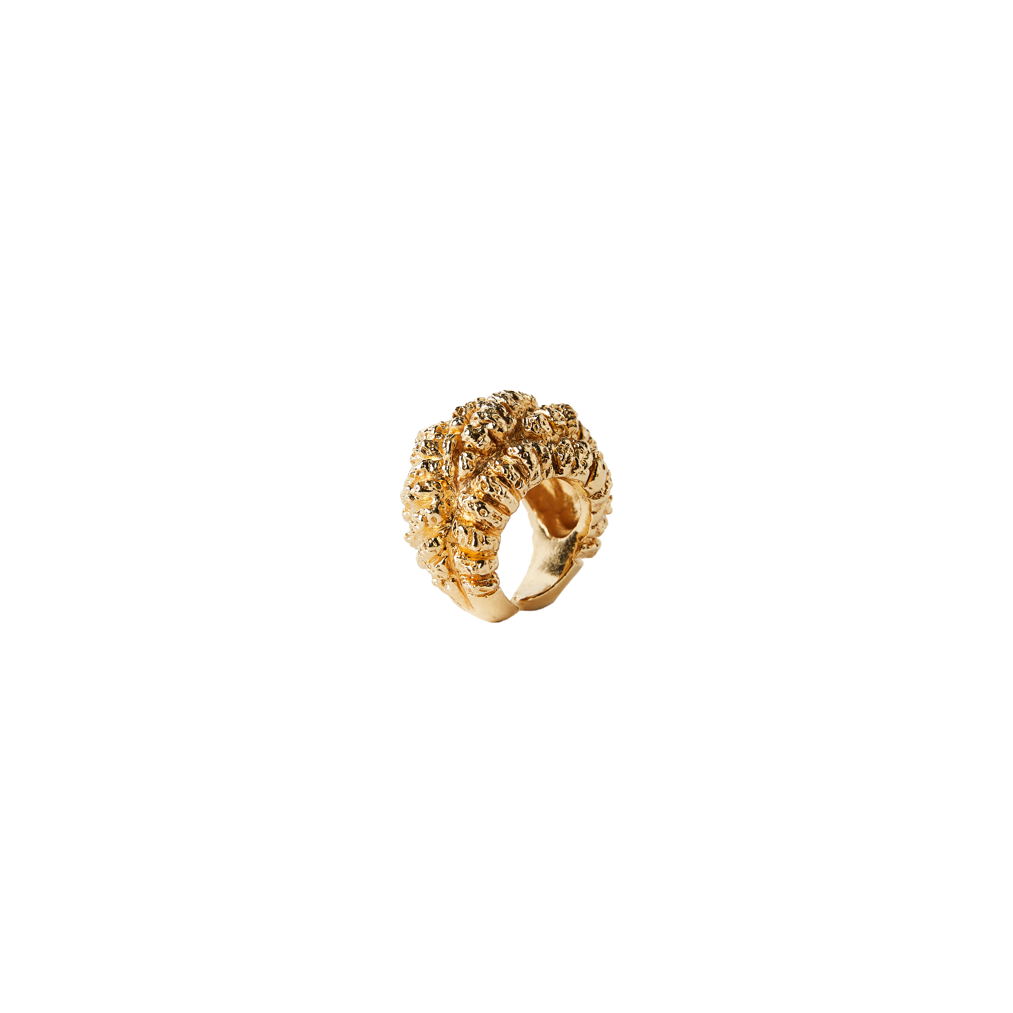 Upgrade your ensemble with this versatile handmade 18kt gold plated textured pewter metal knot ring. This piece offers endless styling possibilities, empowering you to express your unique sense of style with confidence and flair.