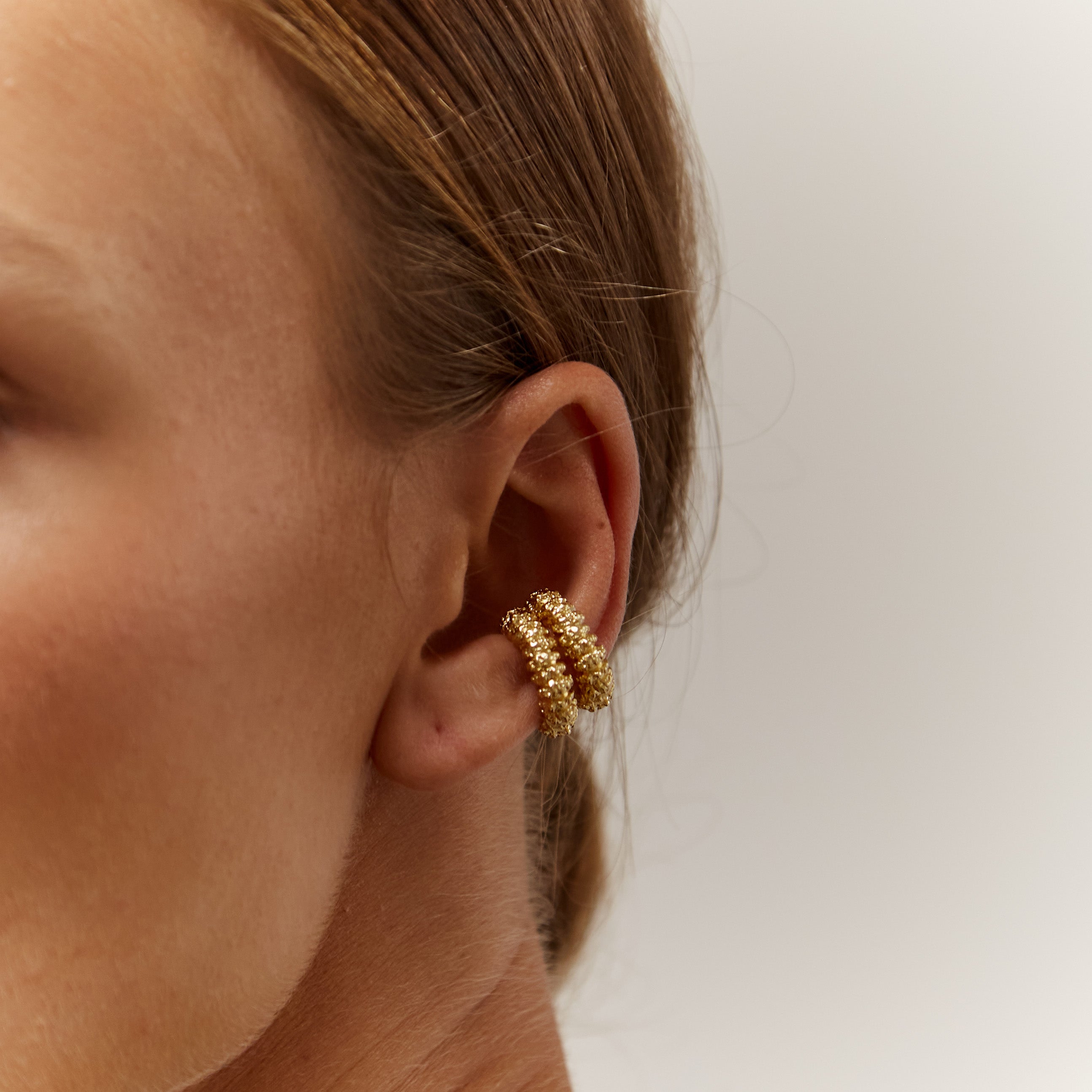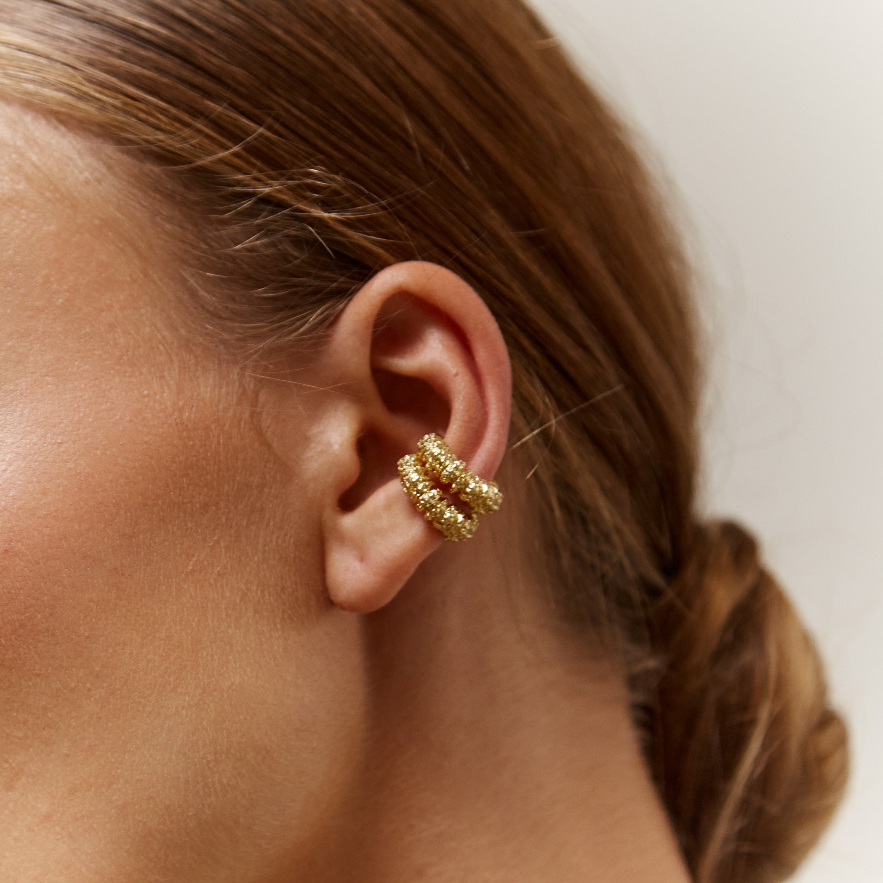 Add a touch of edge to your style with these textured handmade earcuff's, crafted in 18kt gold plated pewter metal. Let this ear cuff be your statement piece, adding a hint of rebellious flair and individuality to any look, whether it's a casual day out or a night on the town, ensuring you stand out with confidence and attitude.